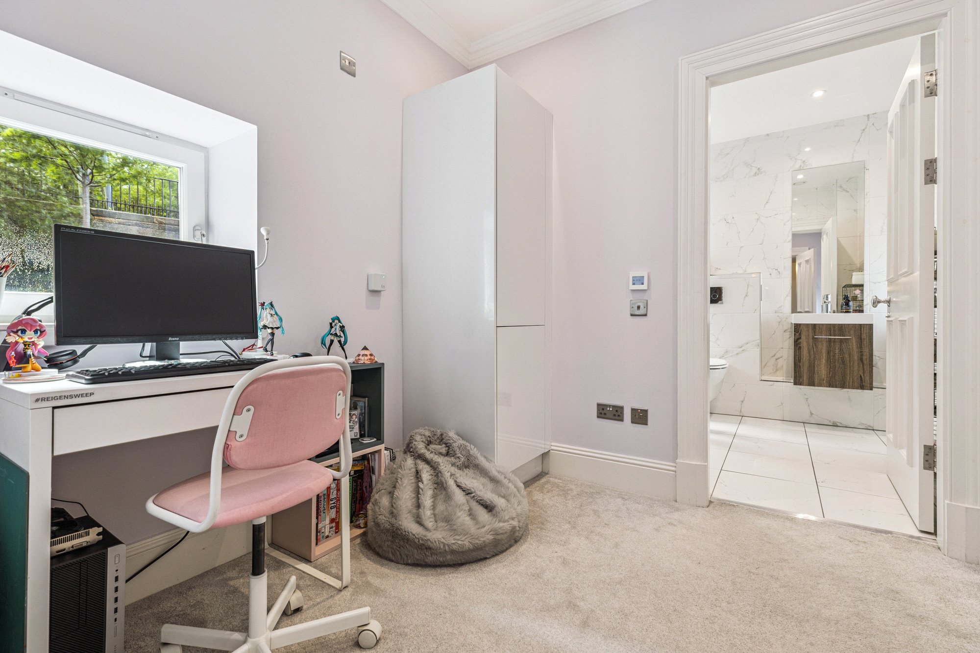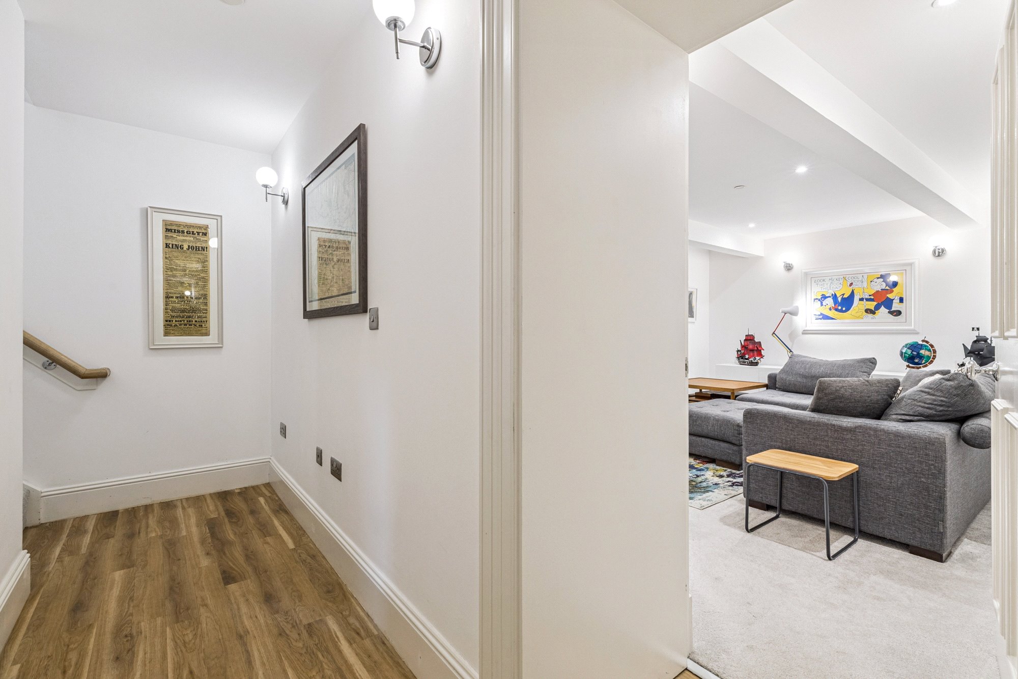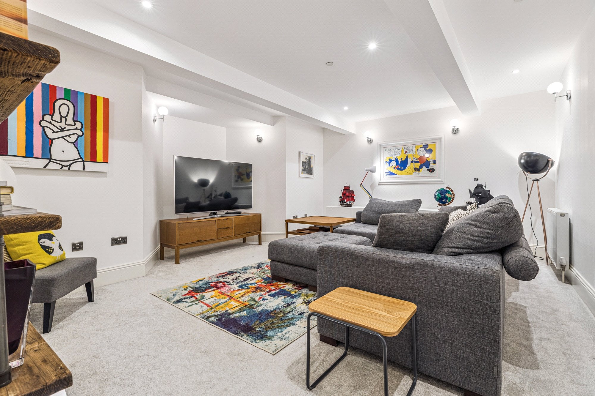 Additional living spaces include a cosy cinema room (with potential for use as a gym, study, or playroom) and a highly flexible guest bedroom (bedroom number 4) currently arranged as a second home office come bedroom, with bi-fold doors leading into the garden. A guest WC and large cupboard, that extends in below the stairs, rounds out the lower floor.