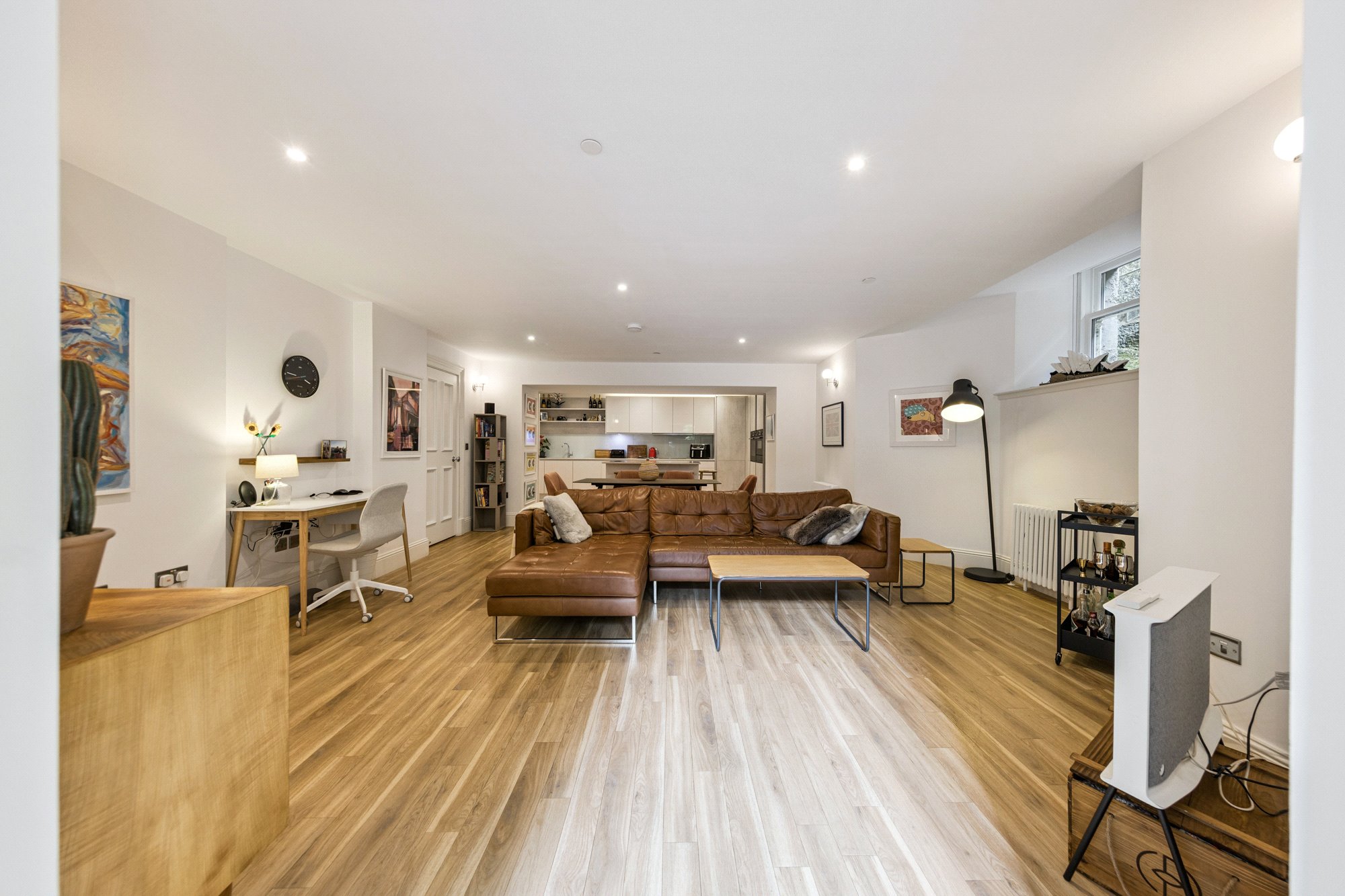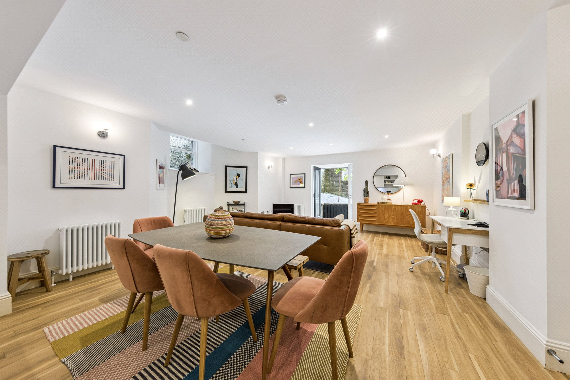 The private south-facing garden is a major highlight — low maintenance with artificial lawn, it provides a rare opportunity for sunny outdoor relaxation or entertaining in a secure, enclosed space. The home also includes ownership of a large, elevated planting area adjacent to the property which could be creatively developed into further outdoor space, subject to design input.