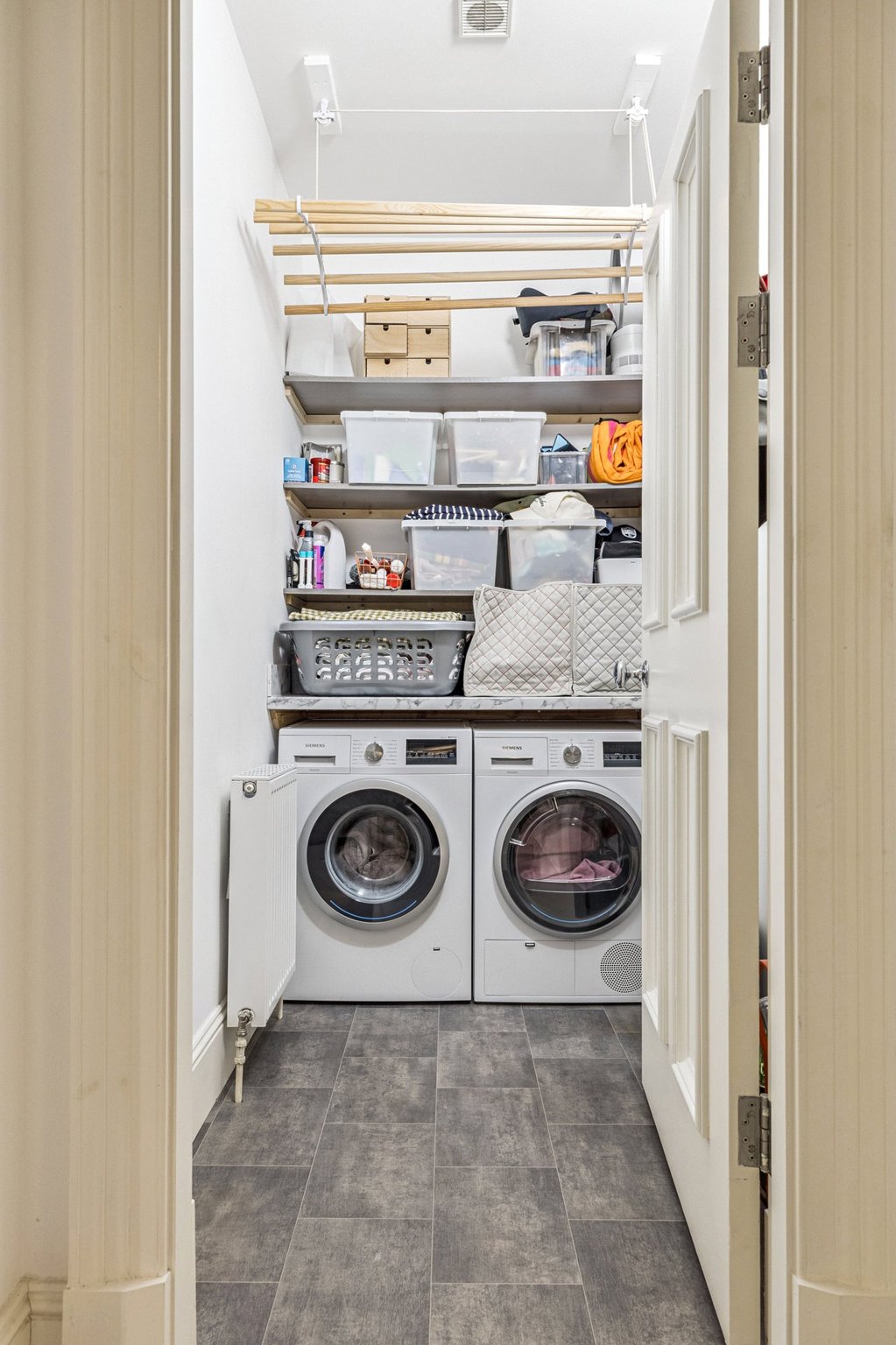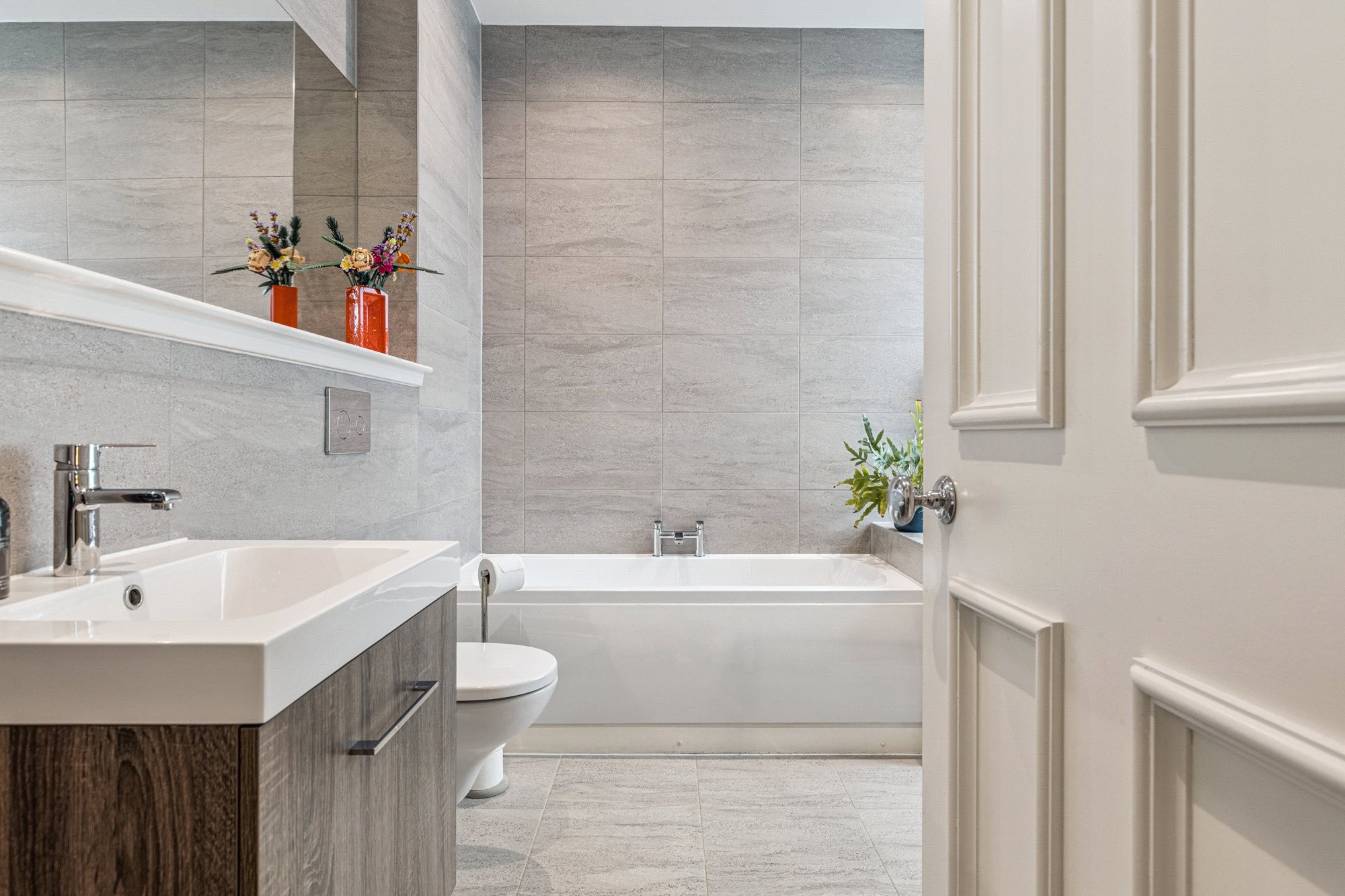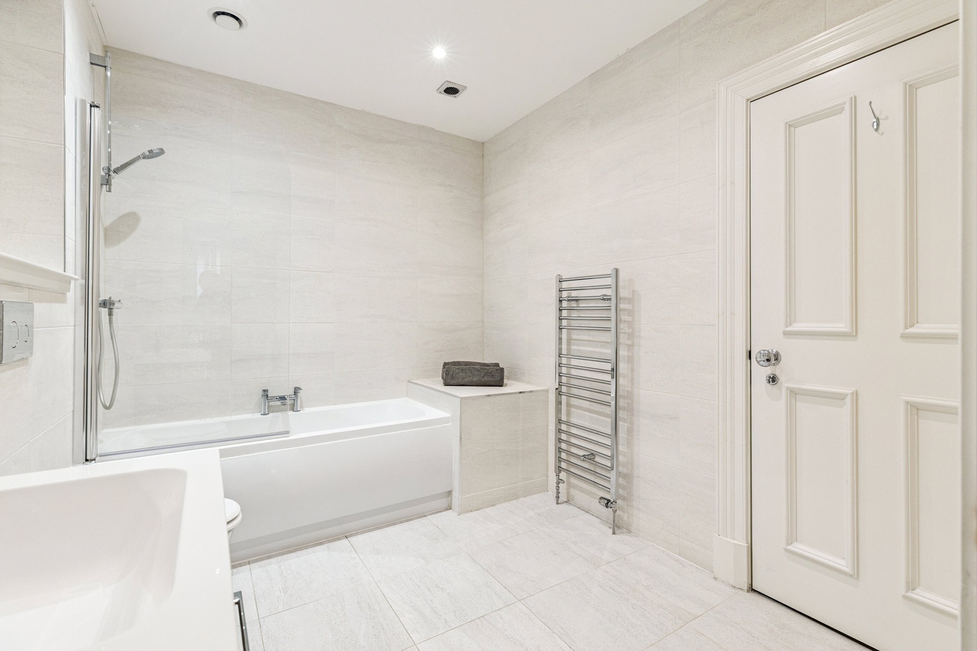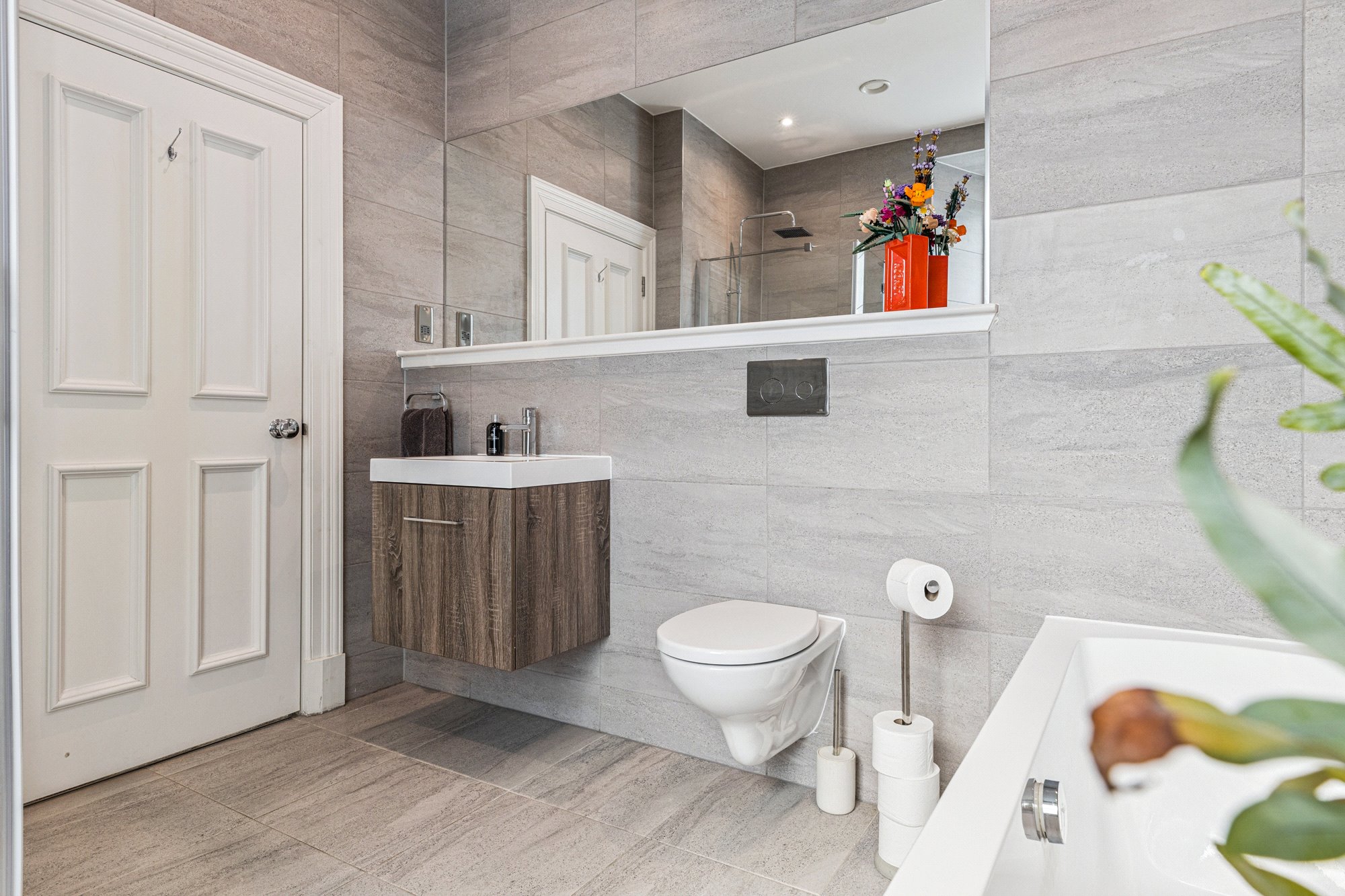 Inside, the home has been finished to an exceptional standard and as such the accommodation will appeal to everyone from growing West End families to professional couples in search of sufficient accommodation to successfully work from home if required. Entry is via a private, stone-stairway that opens into a charming lower courtyard with attractive flagstones and soft lighting — perfect for setting up a seating area under the flying staircase to the building above or decorative planting. A substantial main door entrance gives access to the vestibule which in turn leads into a long reception hallway which leads on to all upper accommodation. Continuing through, you'll find two generously sized king-size bedrooms, each with en-suite facilities (one of which is Jack & Jill to hallway) and a third double-sized bedroom designed with privacy in mind, complete with a separate study or dressing nook and its own shower room — ideal for guests, shift workers, or multigenerational living. A beauifully fitted utility room completes the upper level - well positioned for keeping towels, bedding and laundry near the bedrooms.