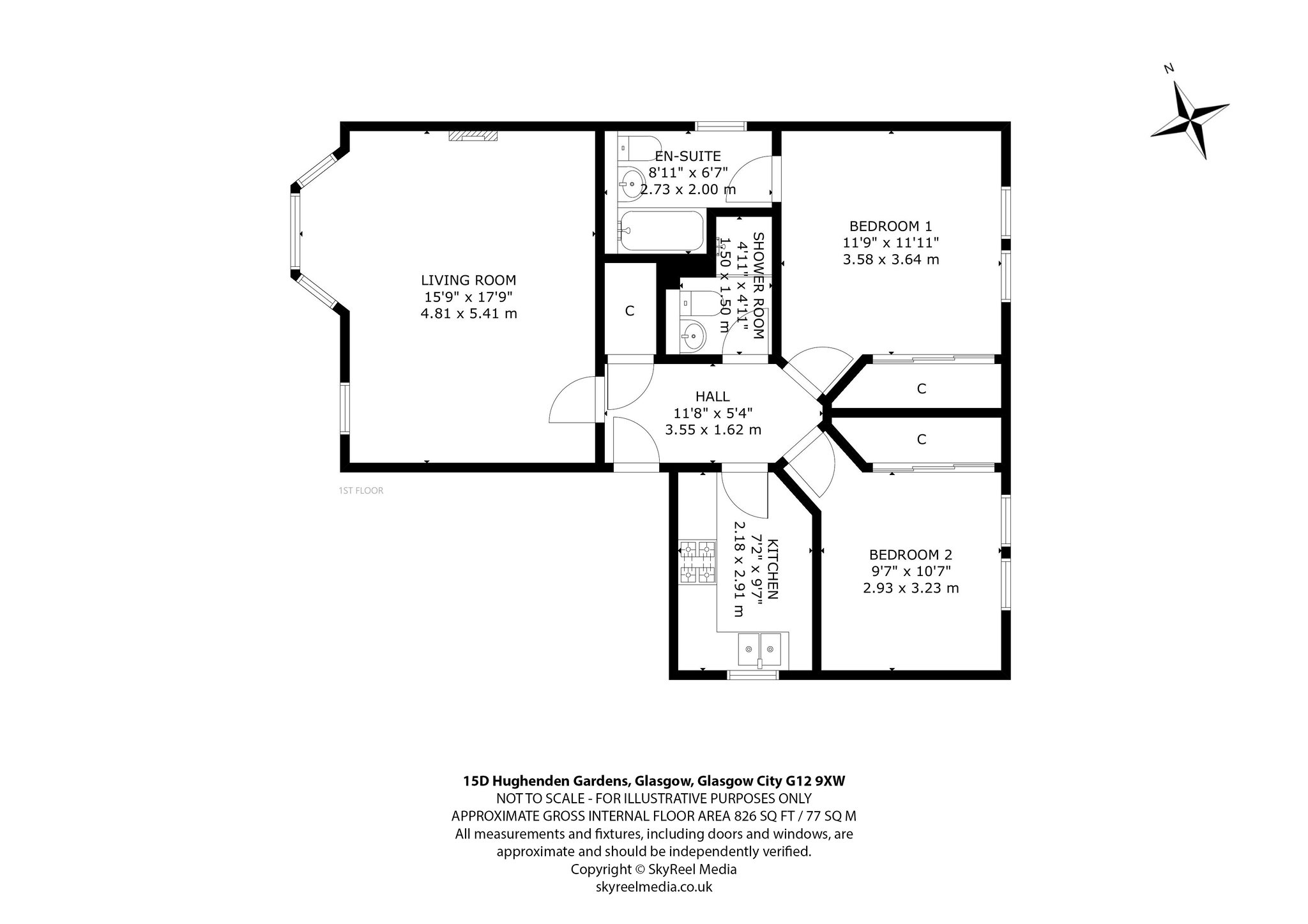 In brief, the accommodation extends to: welcoming entrance hallway with useful storage cupboard for coats and shoes; bay window living room with open aspects, large enough to accommodate a dining area; modern fitted kitchen with gloss white cabinetry, neutrally coloured work surfaces and integrated appliances; two spacious double bedrooms, both with fitted wardrobes; a master en-suite bathroom; and a main shower room with white suite.