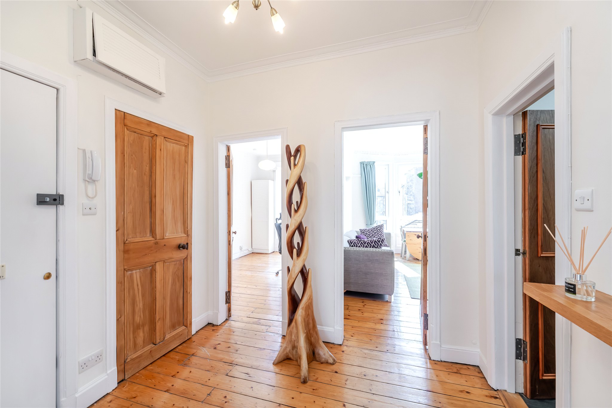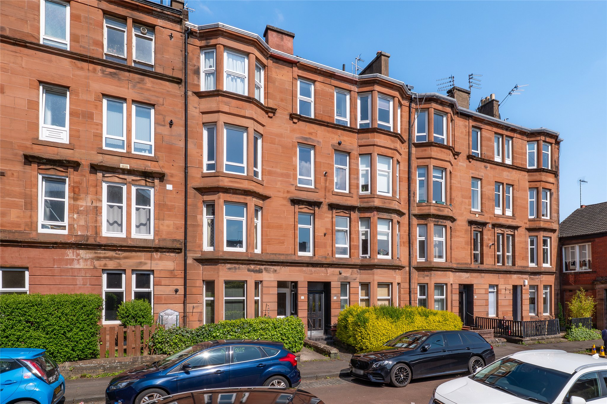 This second floor two-bedroom apartment is held within an attractive red sandstone tenement and enjoys a peaceful, south-facing position on Ardery Street — a quiet cul-de-sac in the popular West End district of Thornwood.