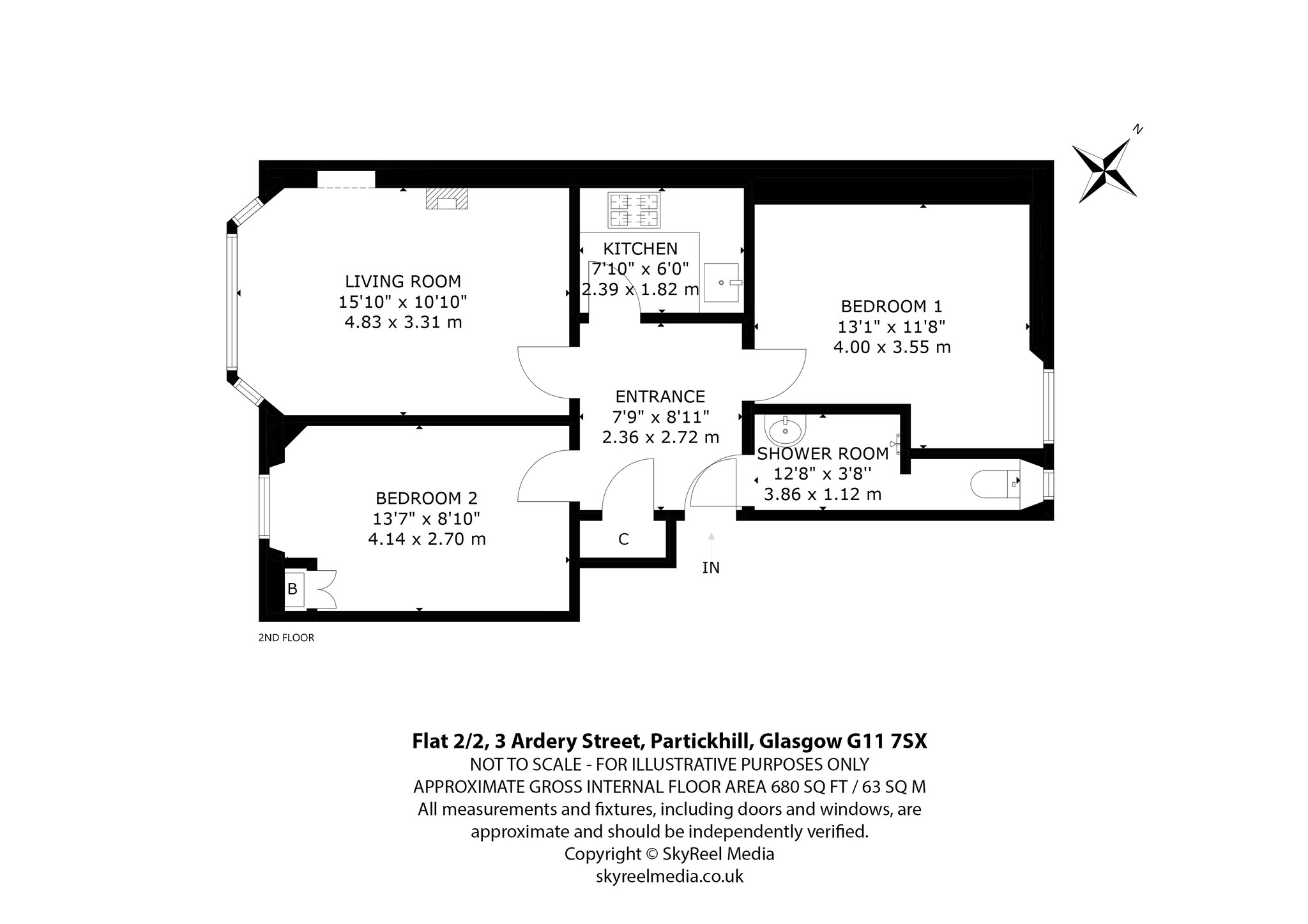 In brief, the accommodation extends to: entrance hallway with storage cupboard, spacious south-facing living room with bay window, a modern internal kitchen with integrated appliances, two generously proportioned double bedrooms and a beautifully appointed shower room with stylish tiling and white contemporary suite.