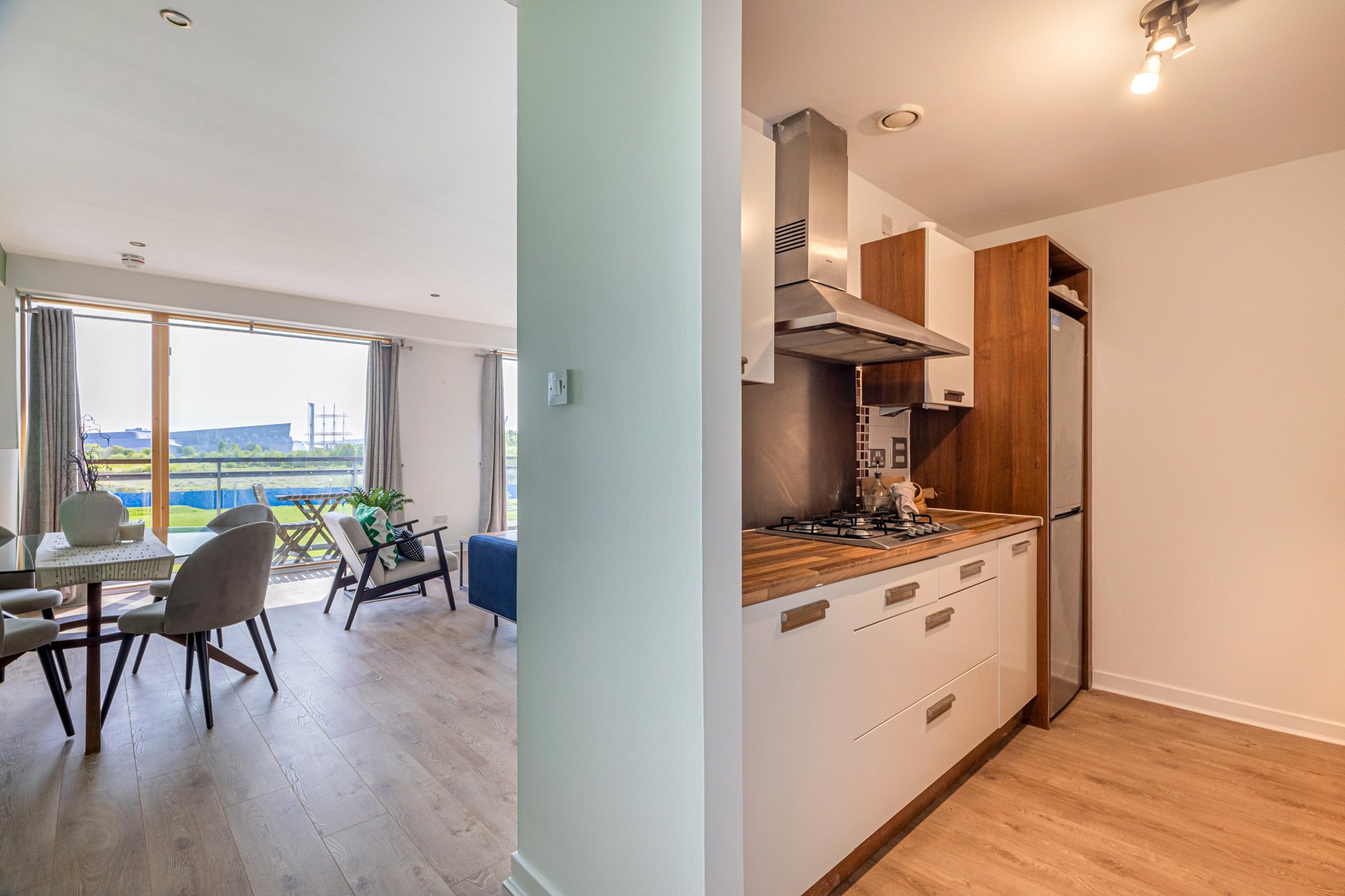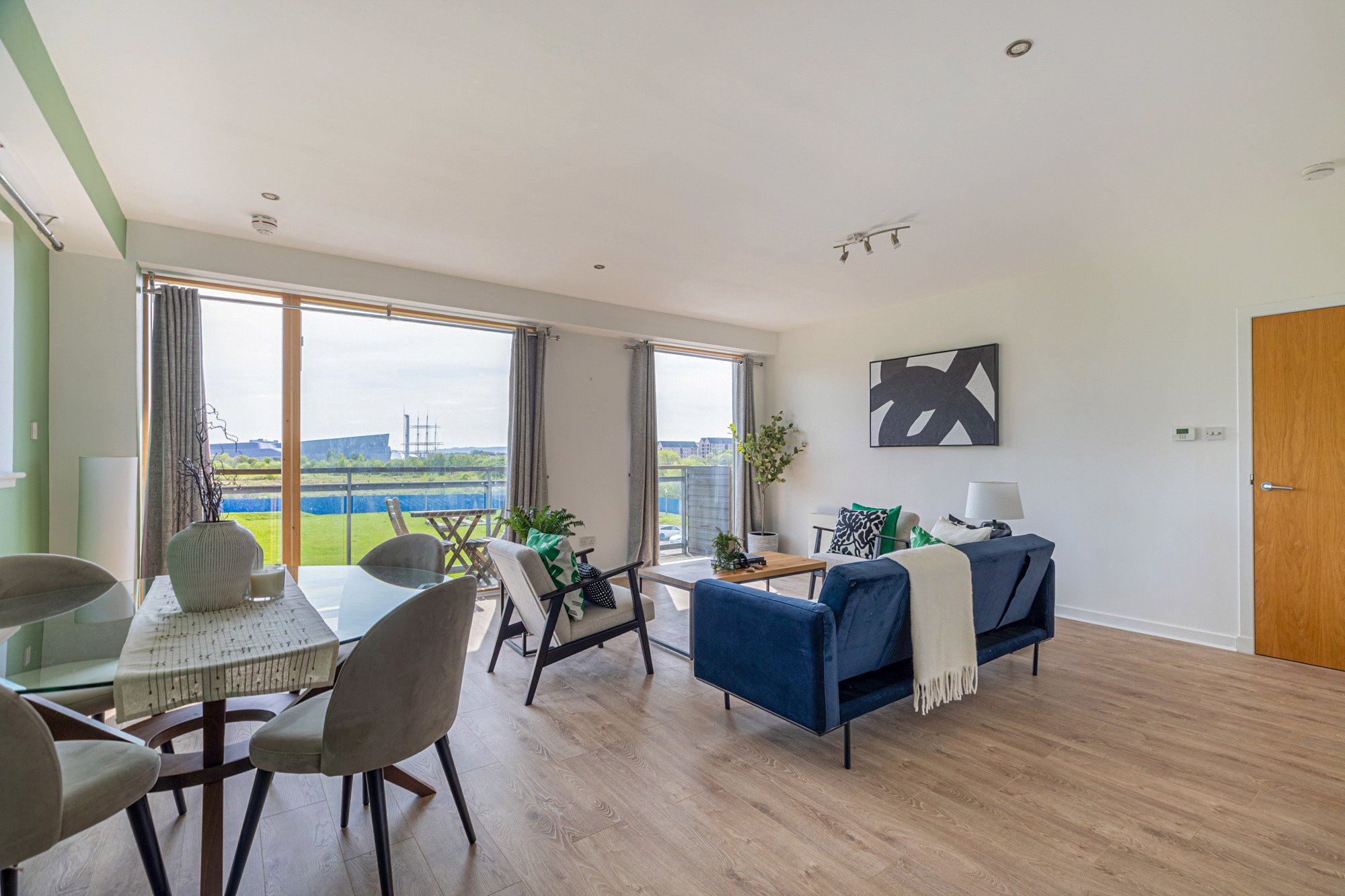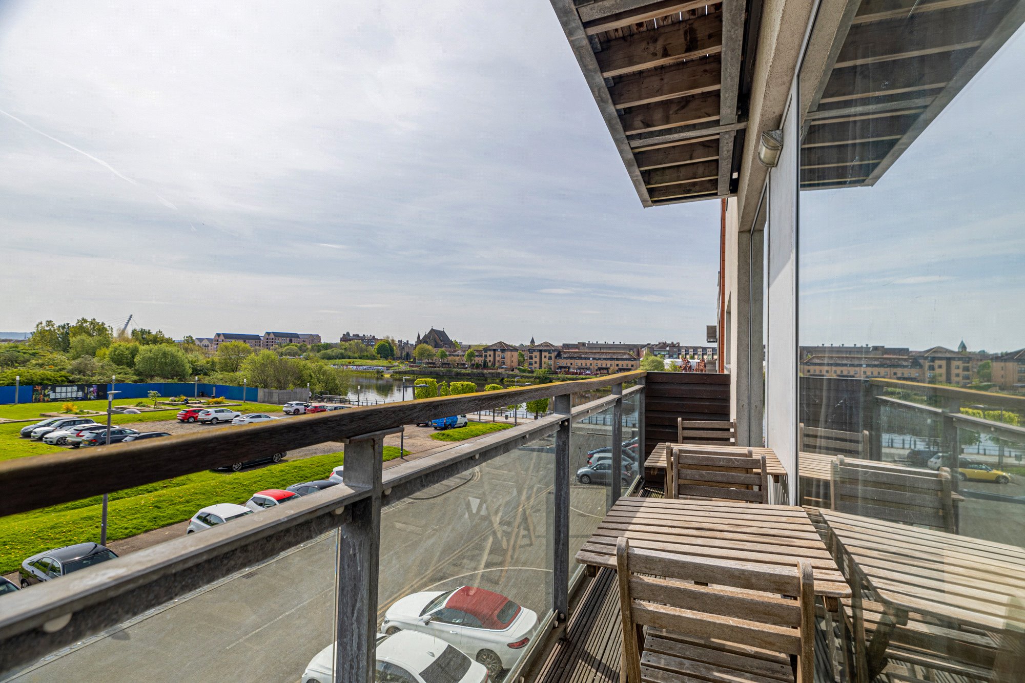 This particularly impressive two-bedroom second floor flat occupies a prominent corner position within the landmark Glasgow Harbour development. This particular building was completed by Park Lane in 2006 and is the flagship building of the entire Harbour development. The property benefits from excellent natural light and enjoys exceptional views of The River Clyde and over towards The Transport Museum, The Tall Ship, SSEC, Glasgow’s West End and Glasgow City Centre.