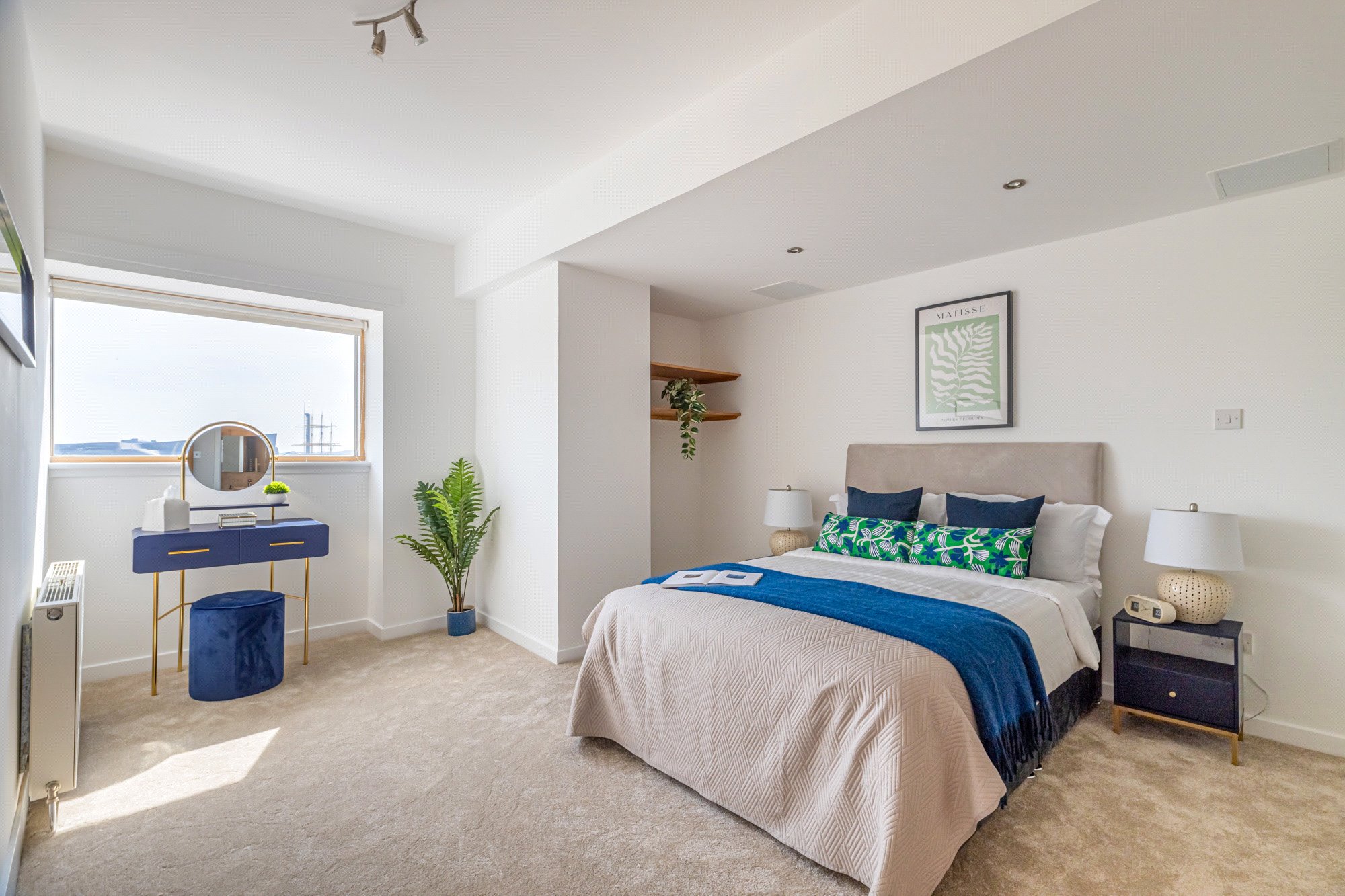 - Bedroom one with window ot the side and fitted wardrobes