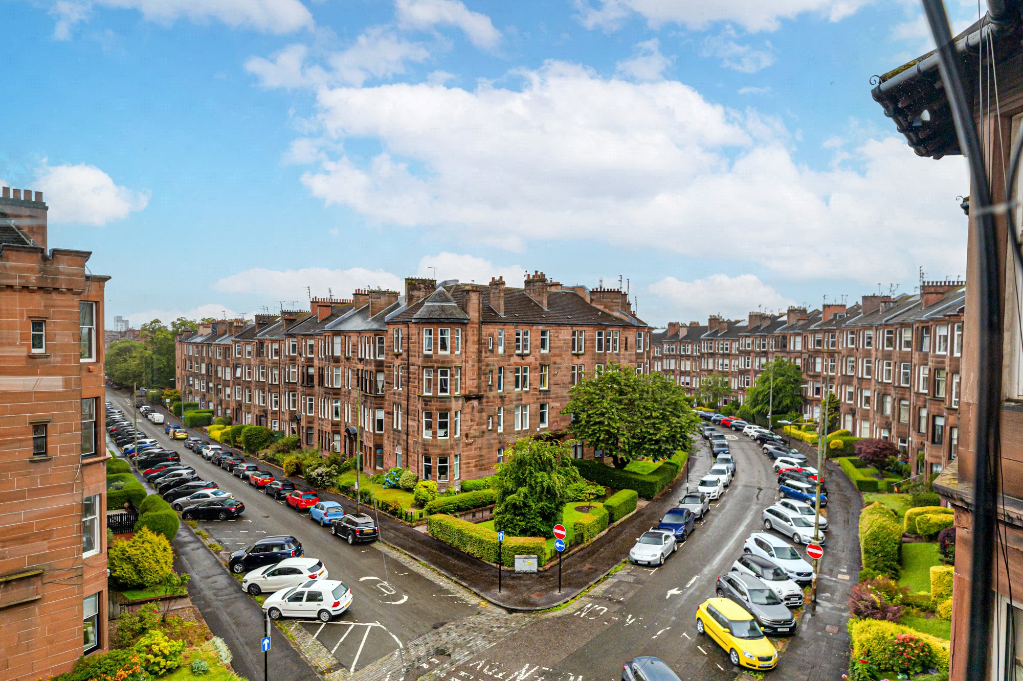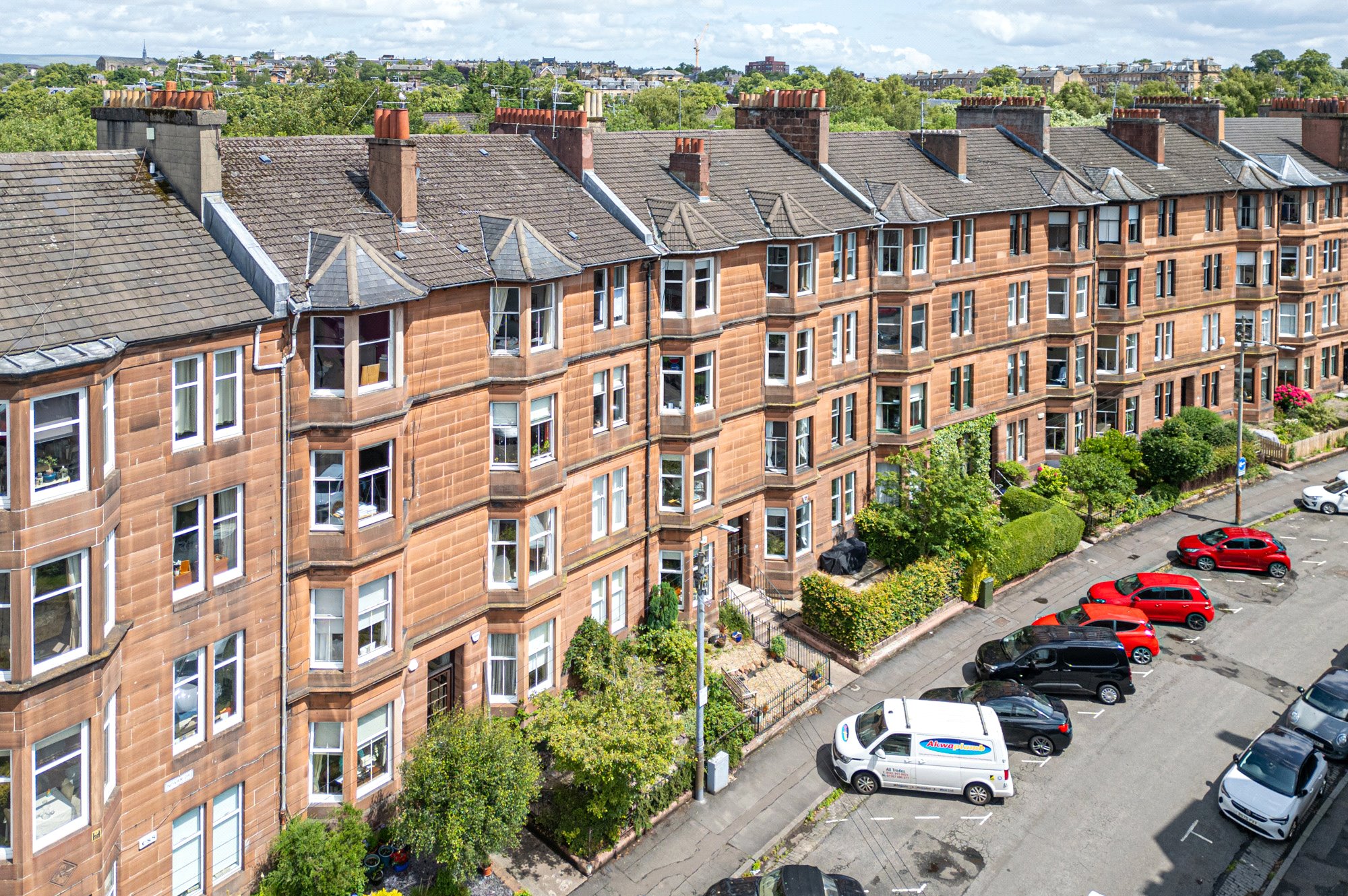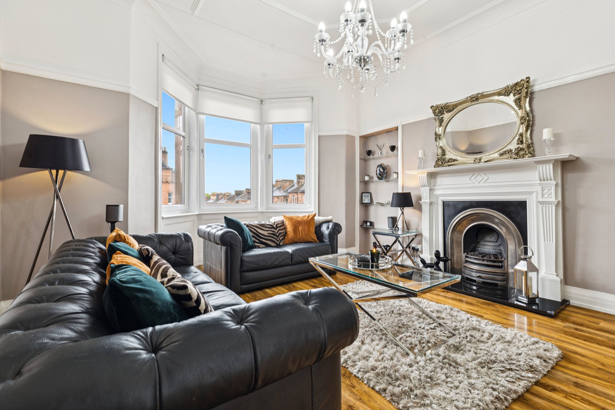 Situated in the heart of Glasgow’s desirable Hyndland district, this beautifully presented two-bedroom flat occupies a prominent top floor position and offers a perfect blend of traditional charm and modern living. Contained within a red sandstone tenement, this bright and spacious property enjoys elevated views over the leafy West End and boasts period features alongside contemporary upgrades.