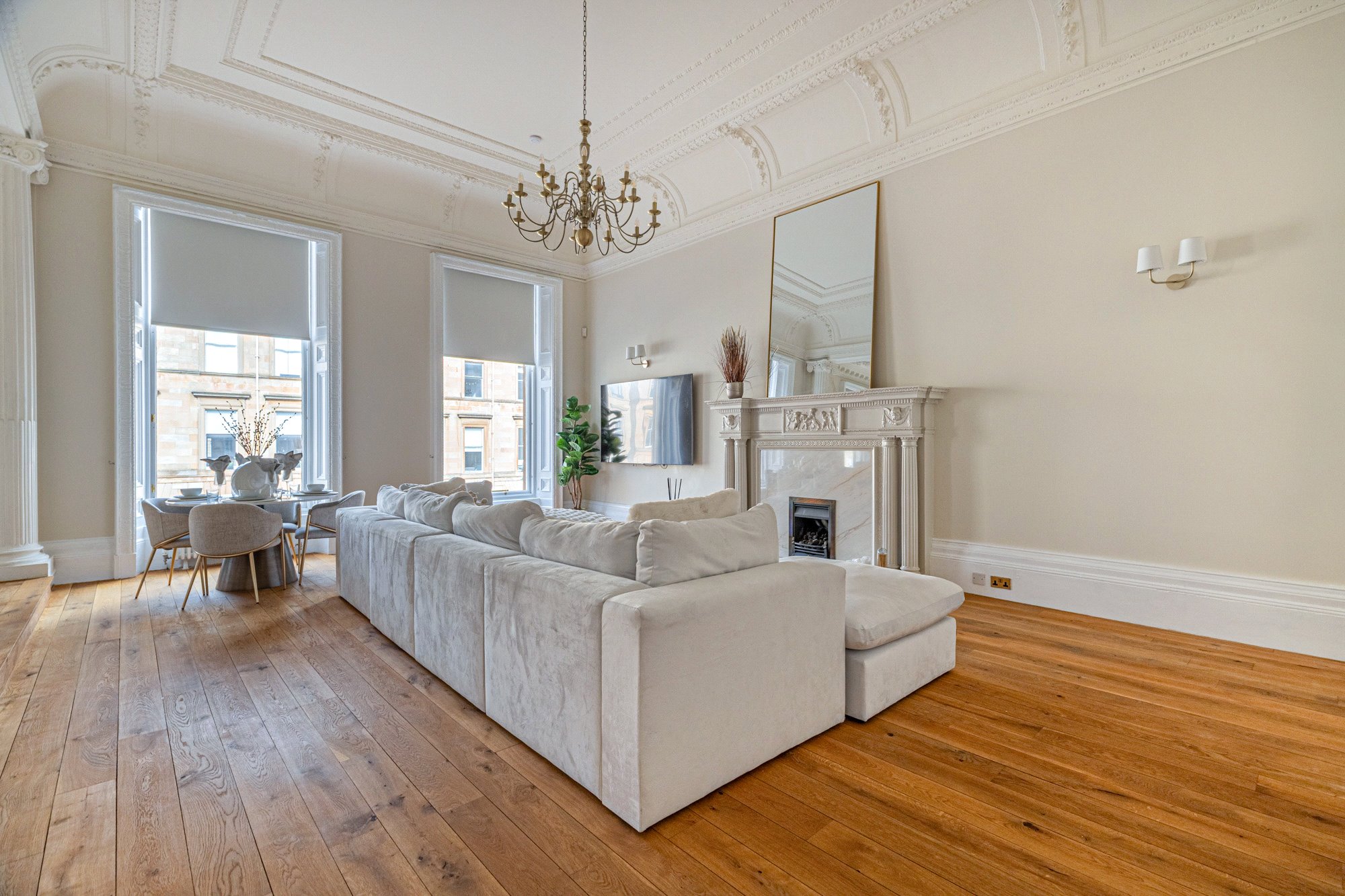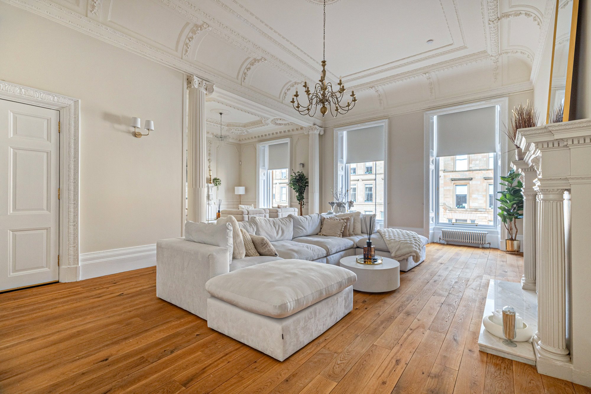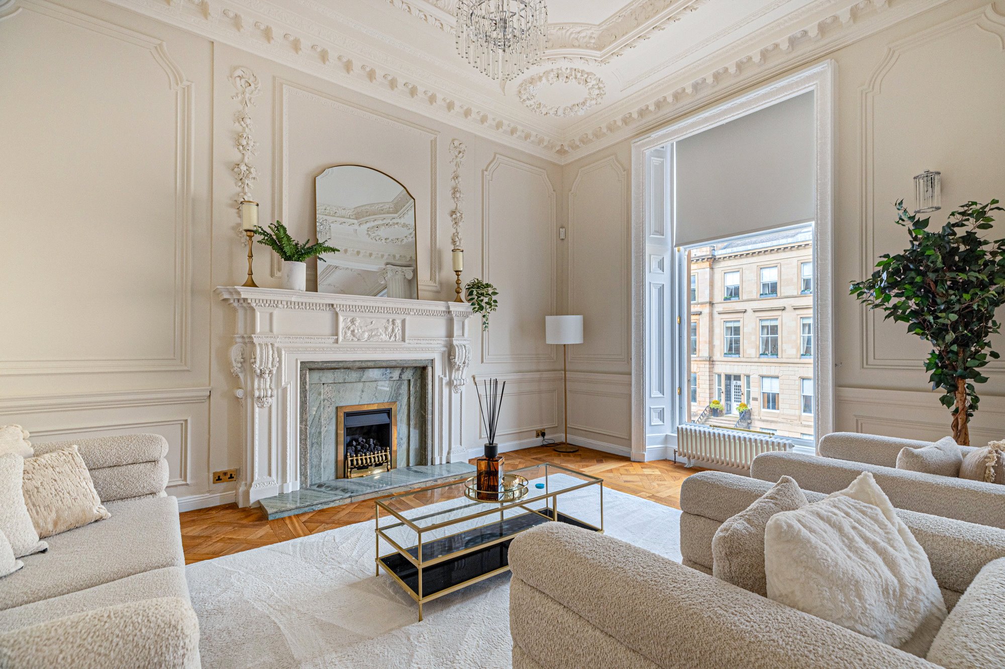 A substantial, feature-filled duplex conversion with private parking space which benefits from a superb, highly central location within a revered address in Glasgow’s much sought after ‘Park’ district.
