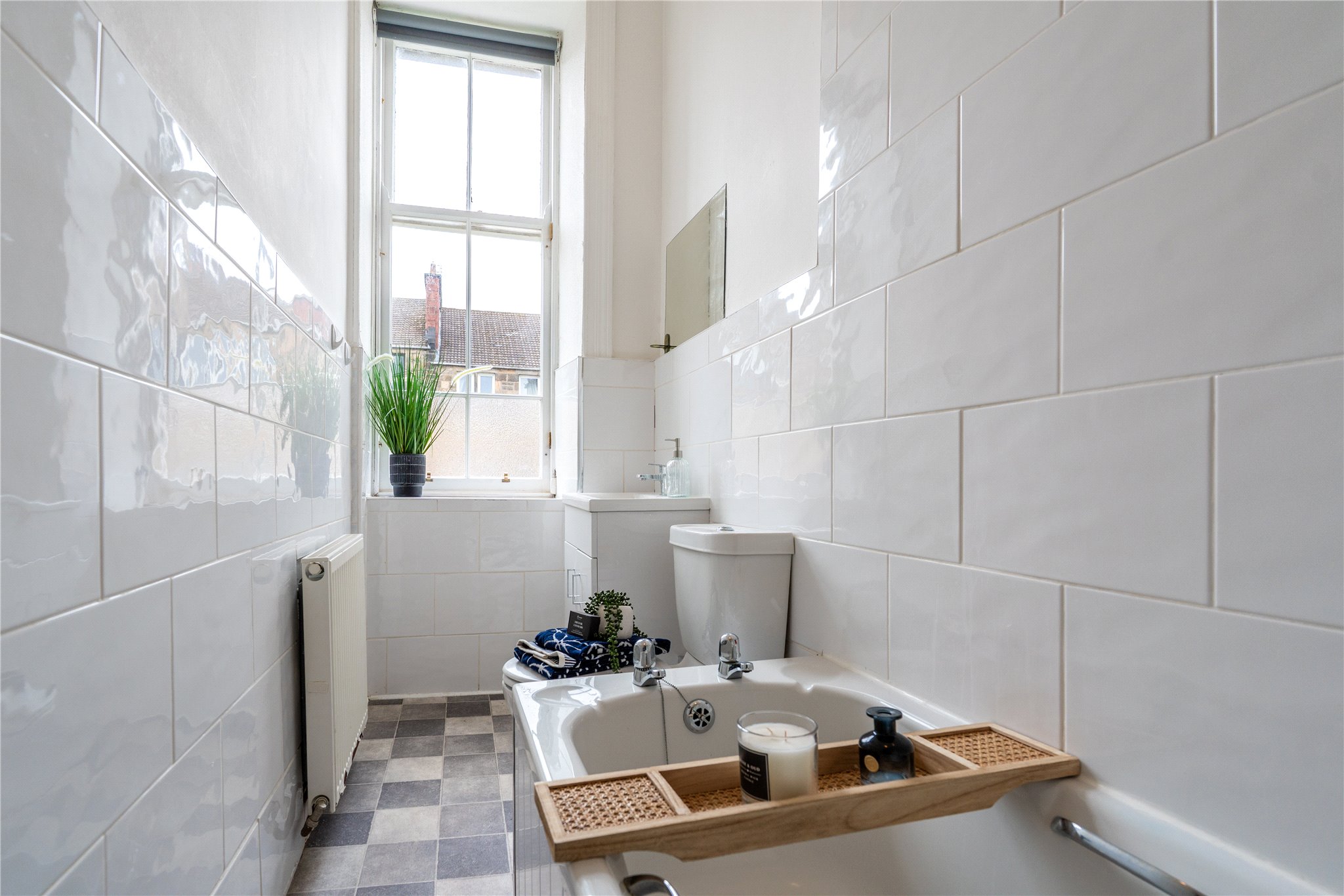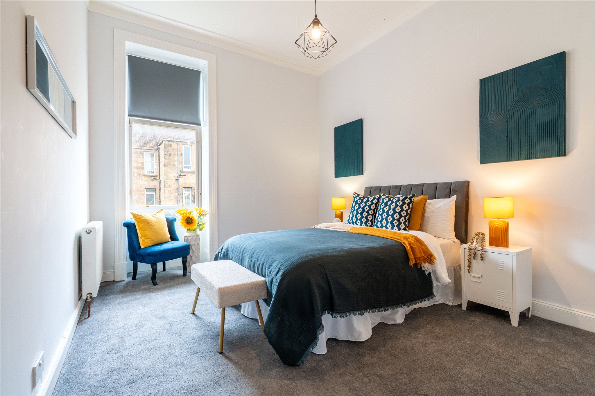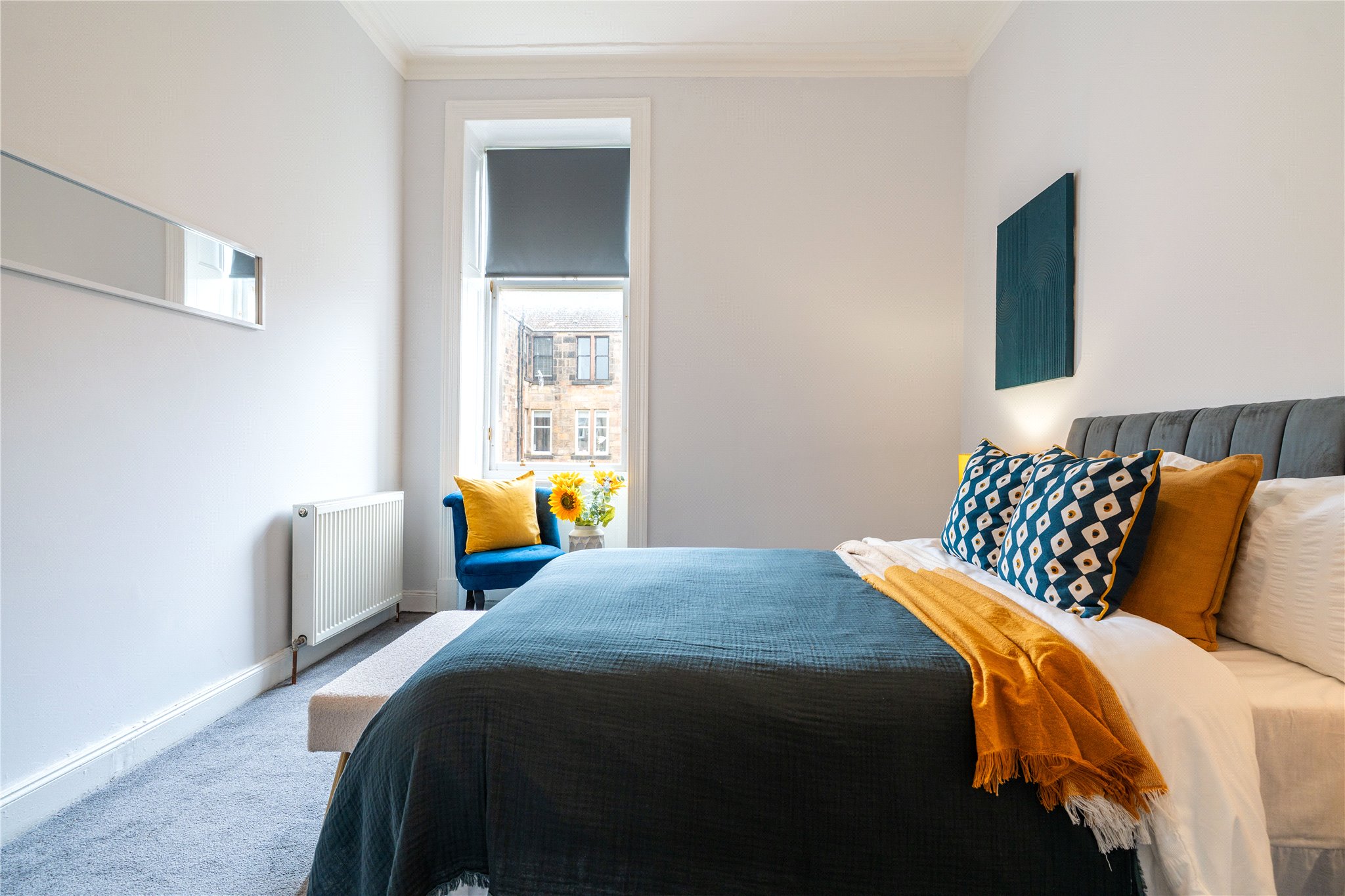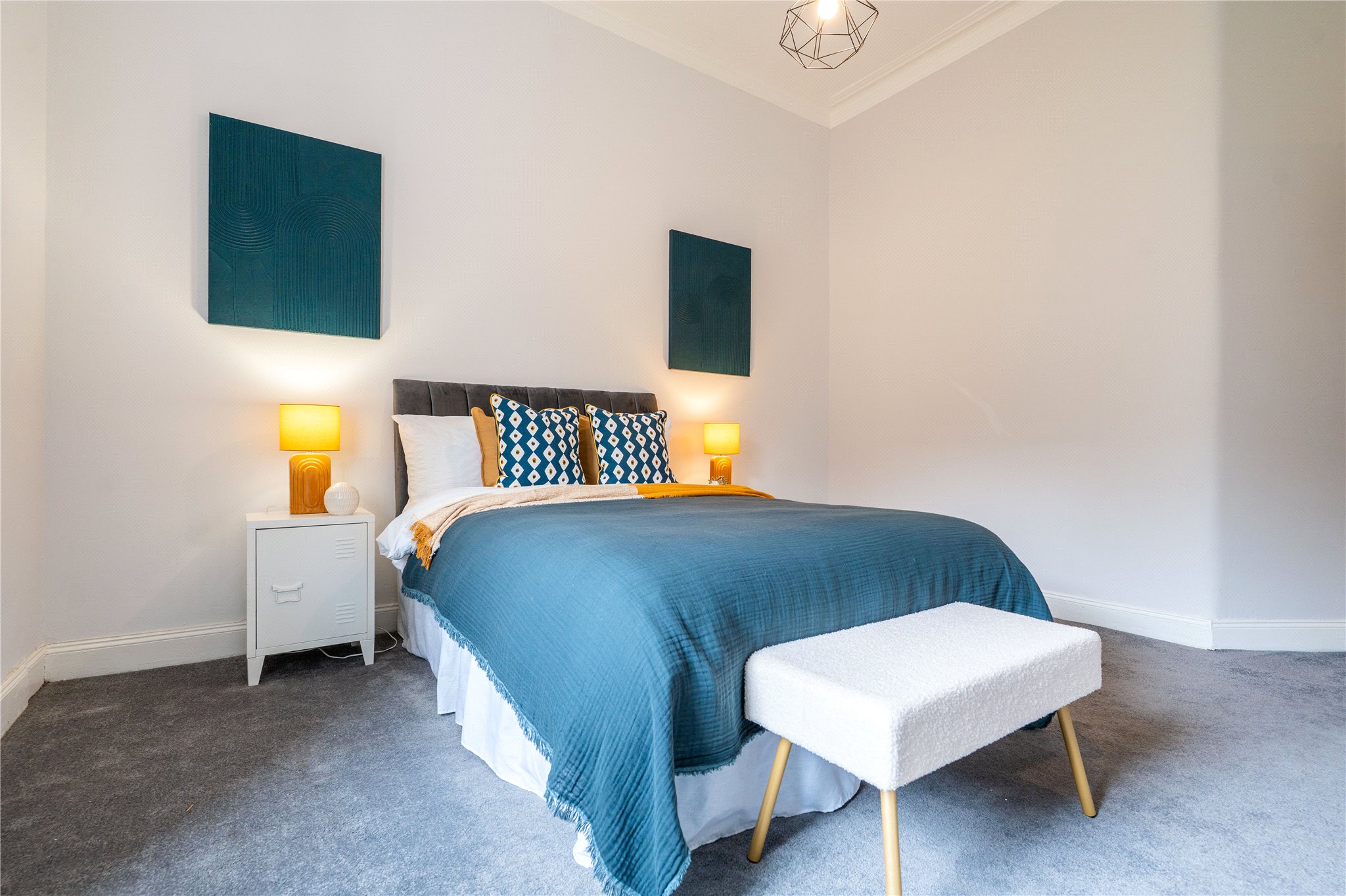 Internally this is a bright, airy two-bedroom apartment which offers very comfortable living space that would be well-suited to a professional couple or perhaps two individuals sharing. The decor is neutral and pleasant throughout, complimenting the spacious principal apartments. In brief the accommodation extends to; broad reception hall with cupboard space, beautiful bay window living room, large dining kitchen with open recess, two spacious king-sized bedrooms and traditional tenement bathroom with white suite and shower over bath.