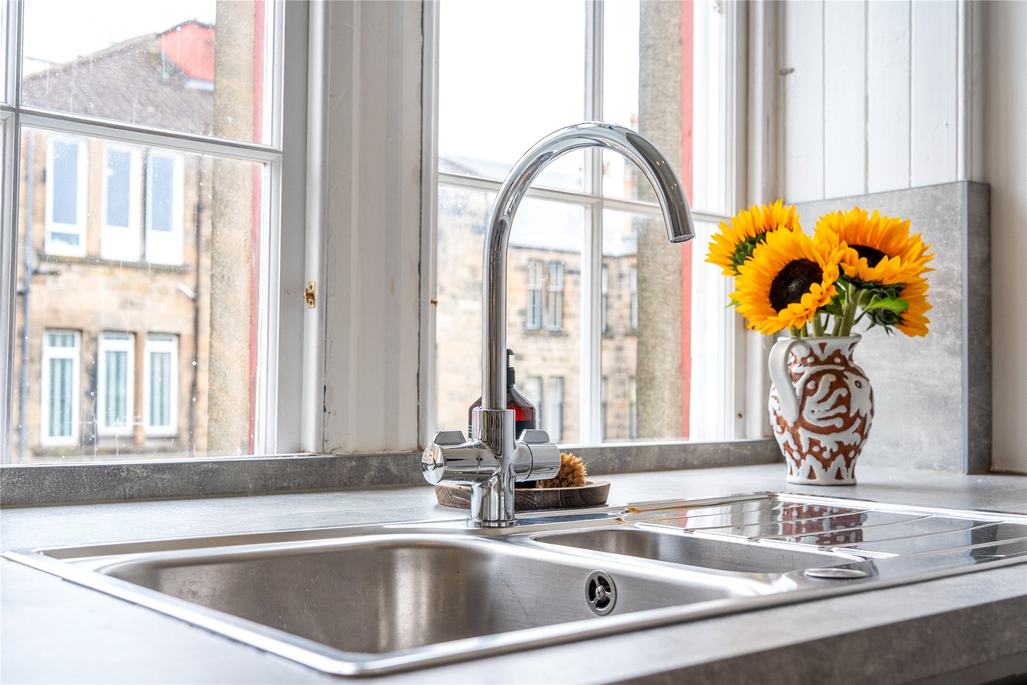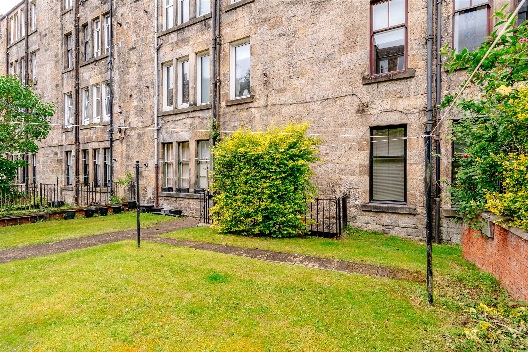 The home for sale is held within an attractive red sandstone tenement which is situated in the Easterly side of Polwarth Street, facing Westward. As such, the frontal accommodation is particularly bright in the afternoon and evening. The building is maintained by an appointed factor who are making great work of keeping the buildings external appearance, common spaces and garden grounds to a good standard. The shared hallway is particularly neat with attractive tiling and provides access to the top floor, where the property for sale is situated.