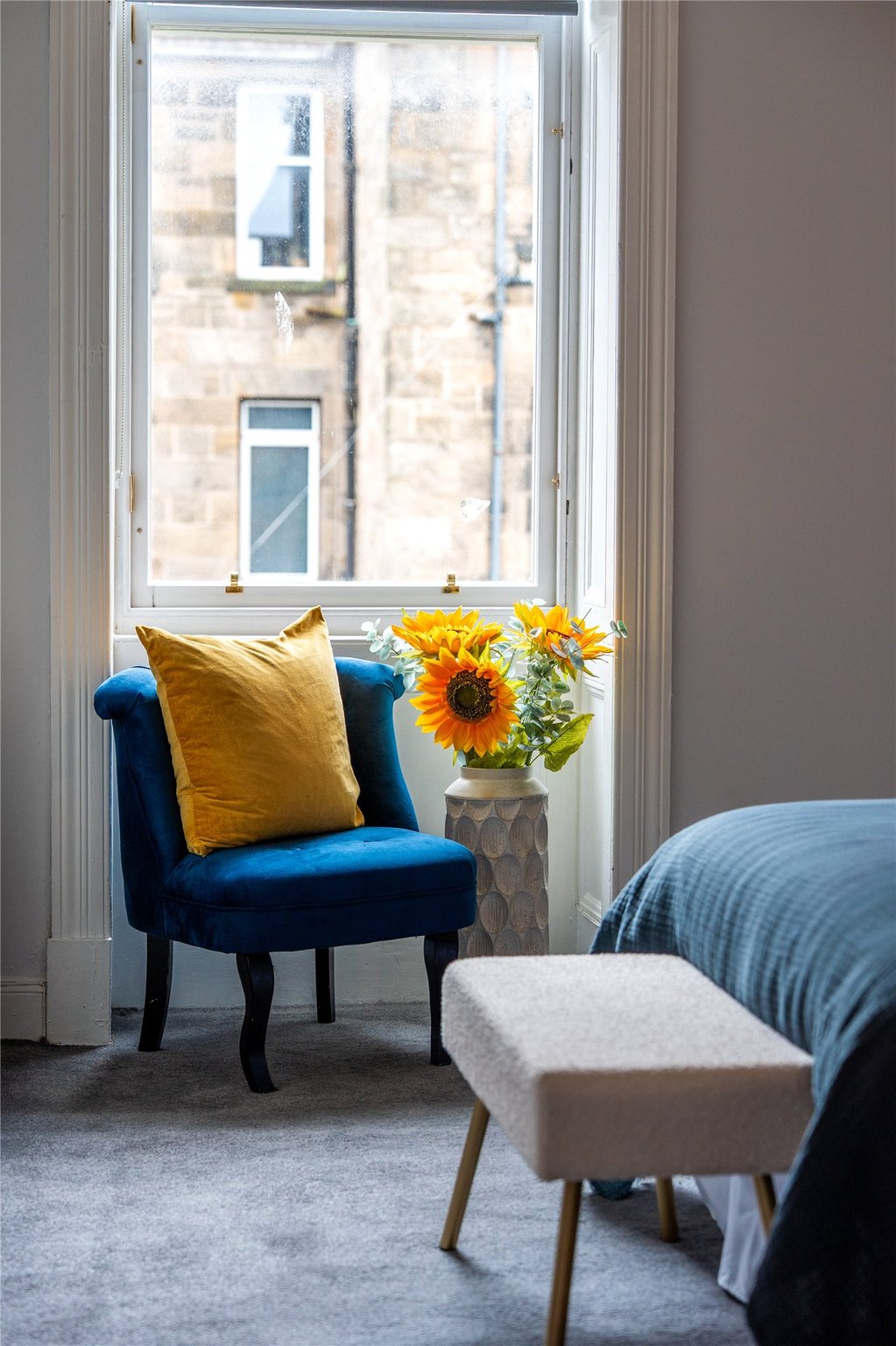 • Positioned on the top (third) floor of a well-maintained red sandstone tenement.