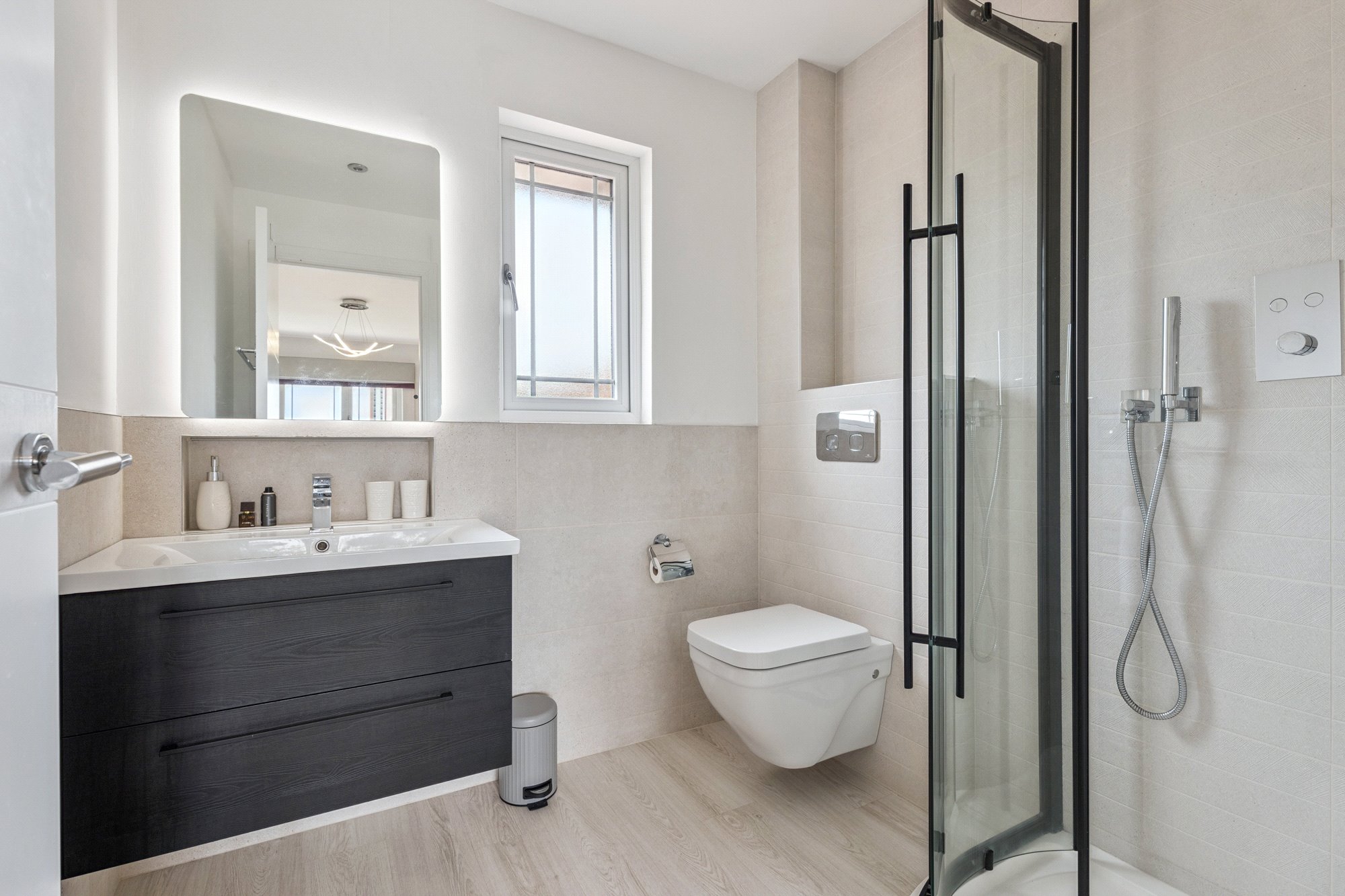 - Stylish en suite shower room comprising three-piece suite. Window to the front