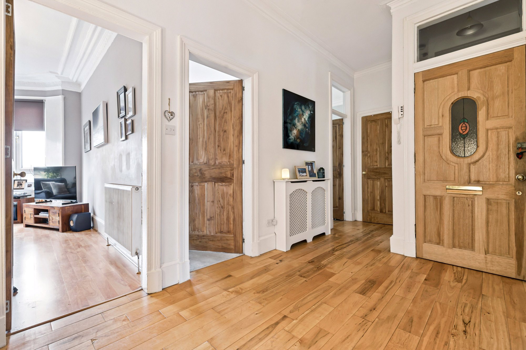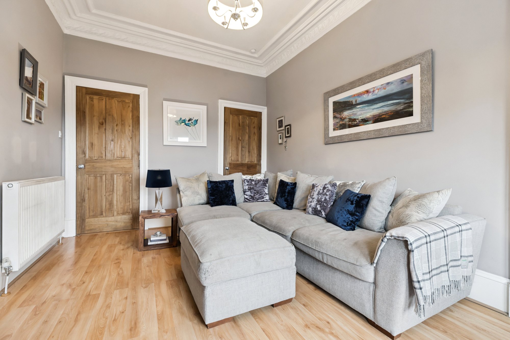 The flat benefits from excellent natural light, is immaculately presented throughout and has a comfortable feel. The accommodation includes a fabulous bay windowed lounge, an impressive dining kitchen, two spacious double bedrooms and a contemporary three-piece bathroom. There is ample storage within the property including useful storage off the reception hall, lounge and dining kitchen.