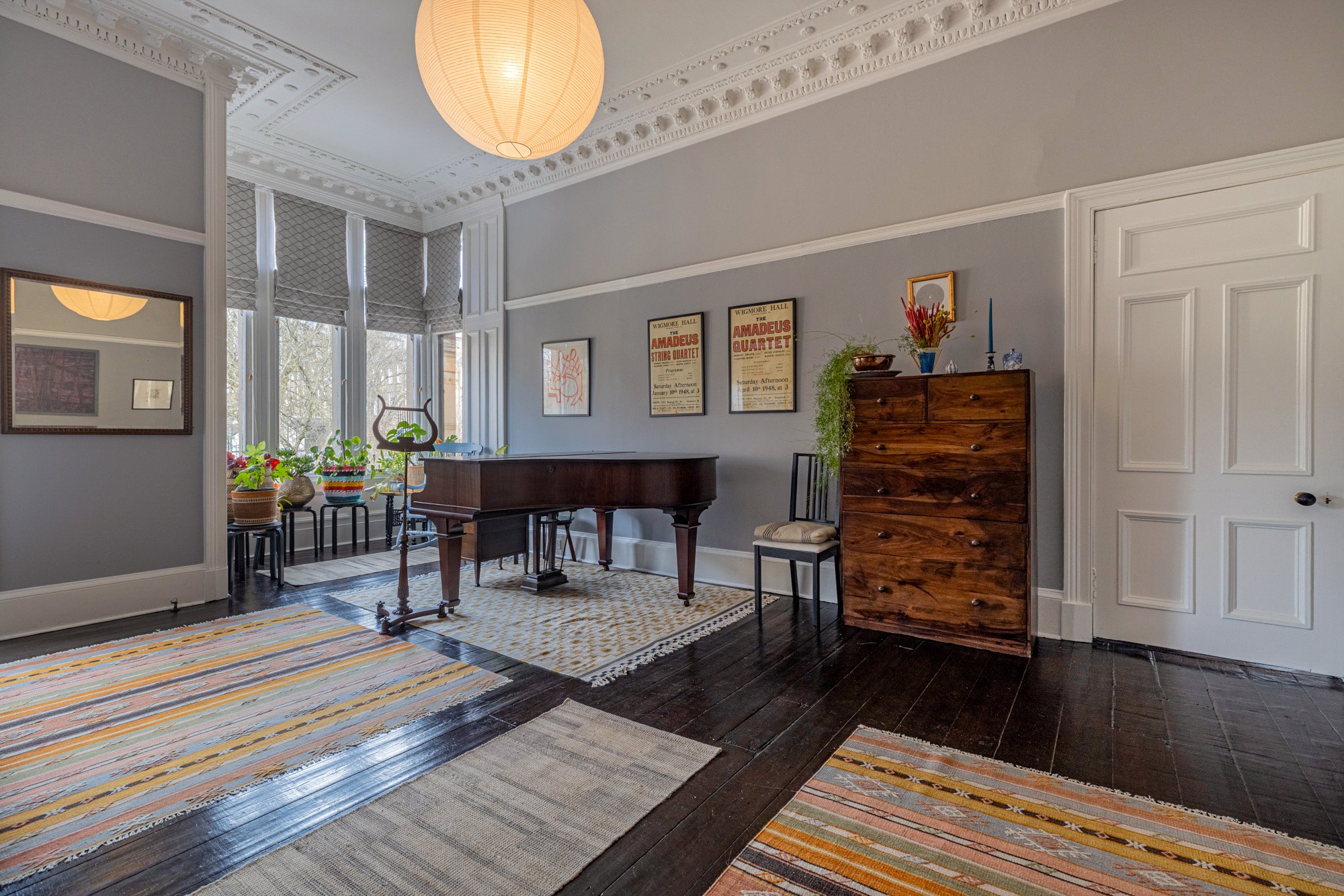 Beyond its historic significance, this home is a superb blend of period elegance and modern living. The grand entrance hall welcomes you into a spacious layout, where two substantial, feature-filled public rooms await. These generous spaces are perfect for both entertaining and quiet relaxation, boasting large windows that flood the rooms with natural light and offer charming views including aspects towards Athole Gardens.
