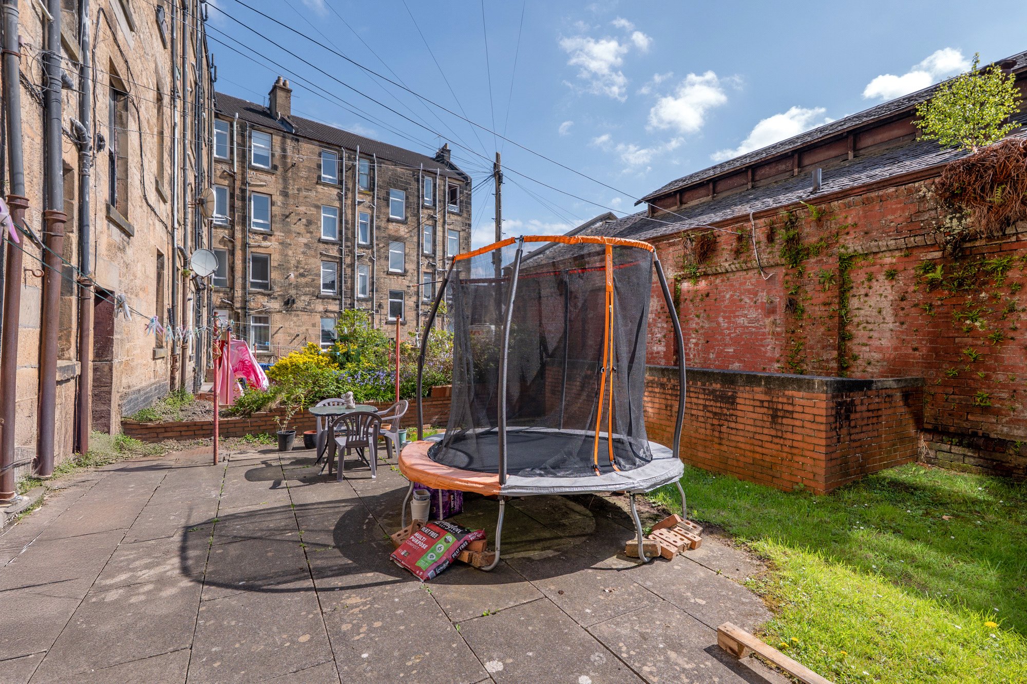 The building itself is factored by a reputable management company, ensuring that the communal areas and rear gardens are kept to a high standard. Entry to the property is by secure buzzer system, and to the rear of the building residents enjoy use of a neat shared drying green, well-tended lawns, and convenient refuse storage facilities.