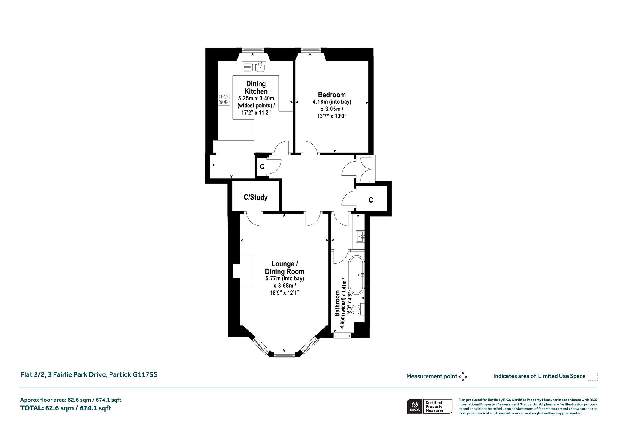 Fairlie Park Drive occupies a highly convenient location just a short walk from an excellent array of local amenities. The nearby West End Retail Park hosts a Sainsbury’s supermarket and a Marks & Spencer Food Hall, making day-to-day shopping exceptionally easy. Partick Rail, Underground, and Bus Stations are all within approximately 0.5 miles of the property, providing swift access throughout Glasgow and beyond. The property is also ideally positioned for students attending the University of Glasgow, which is located just over a mile away.