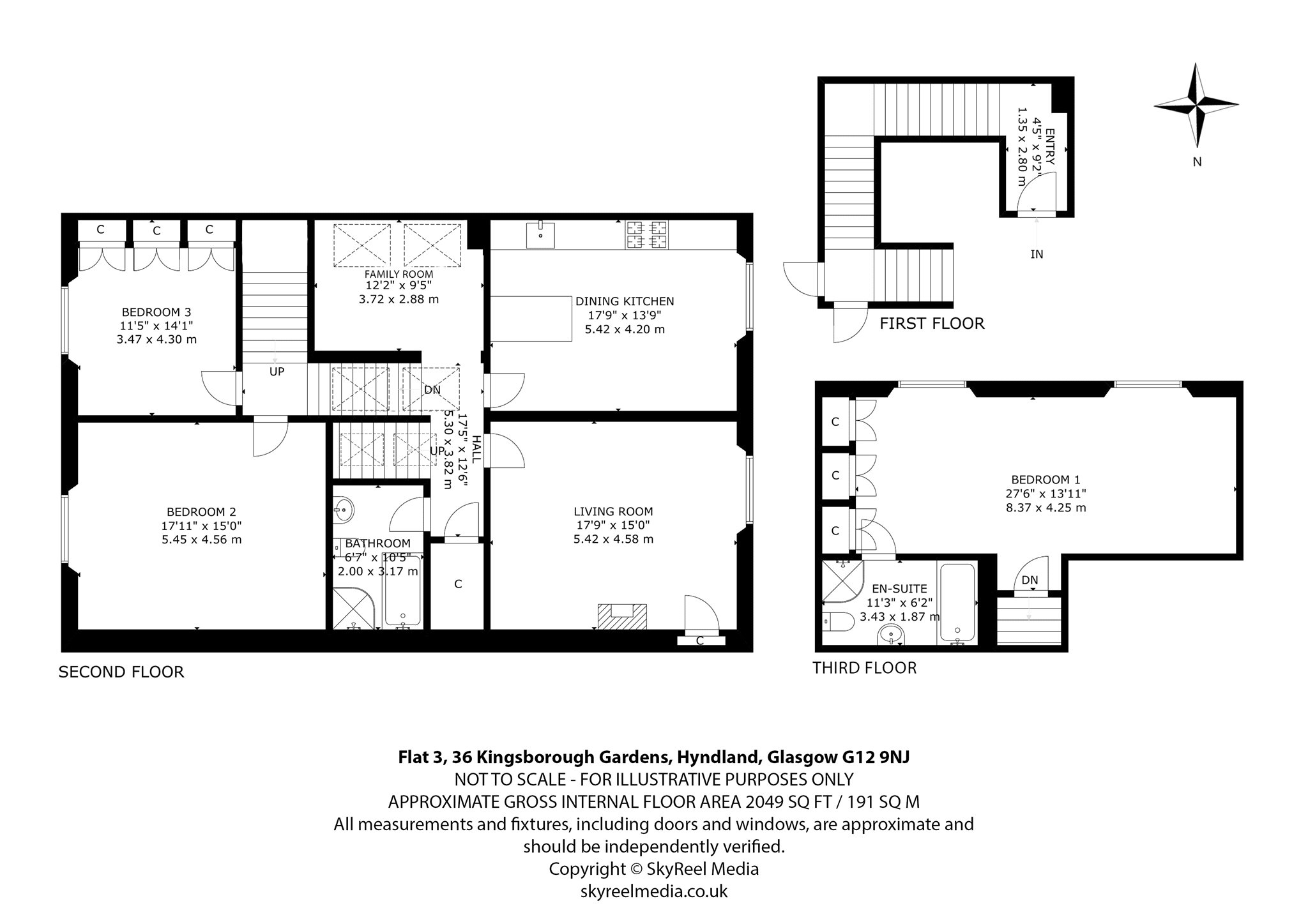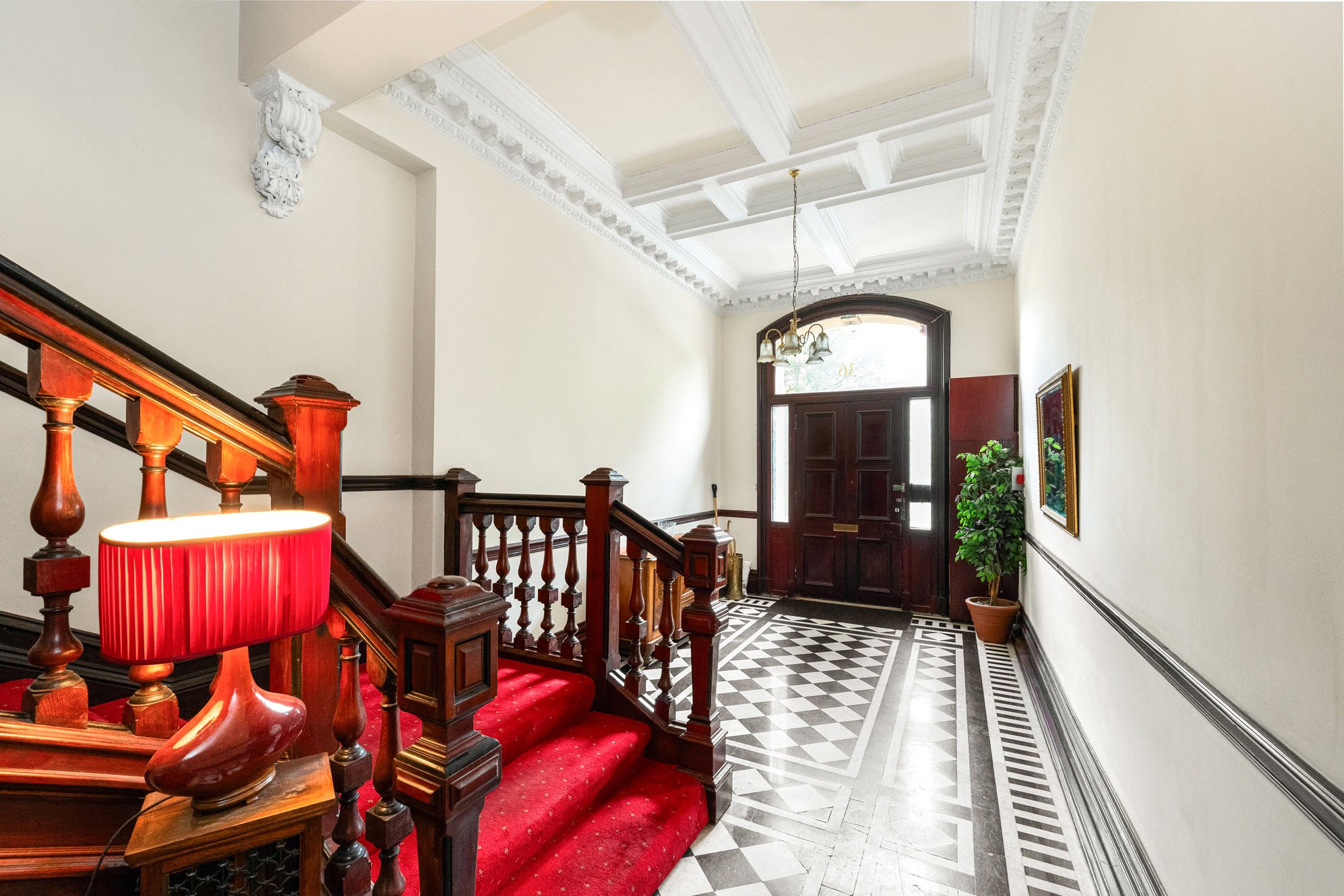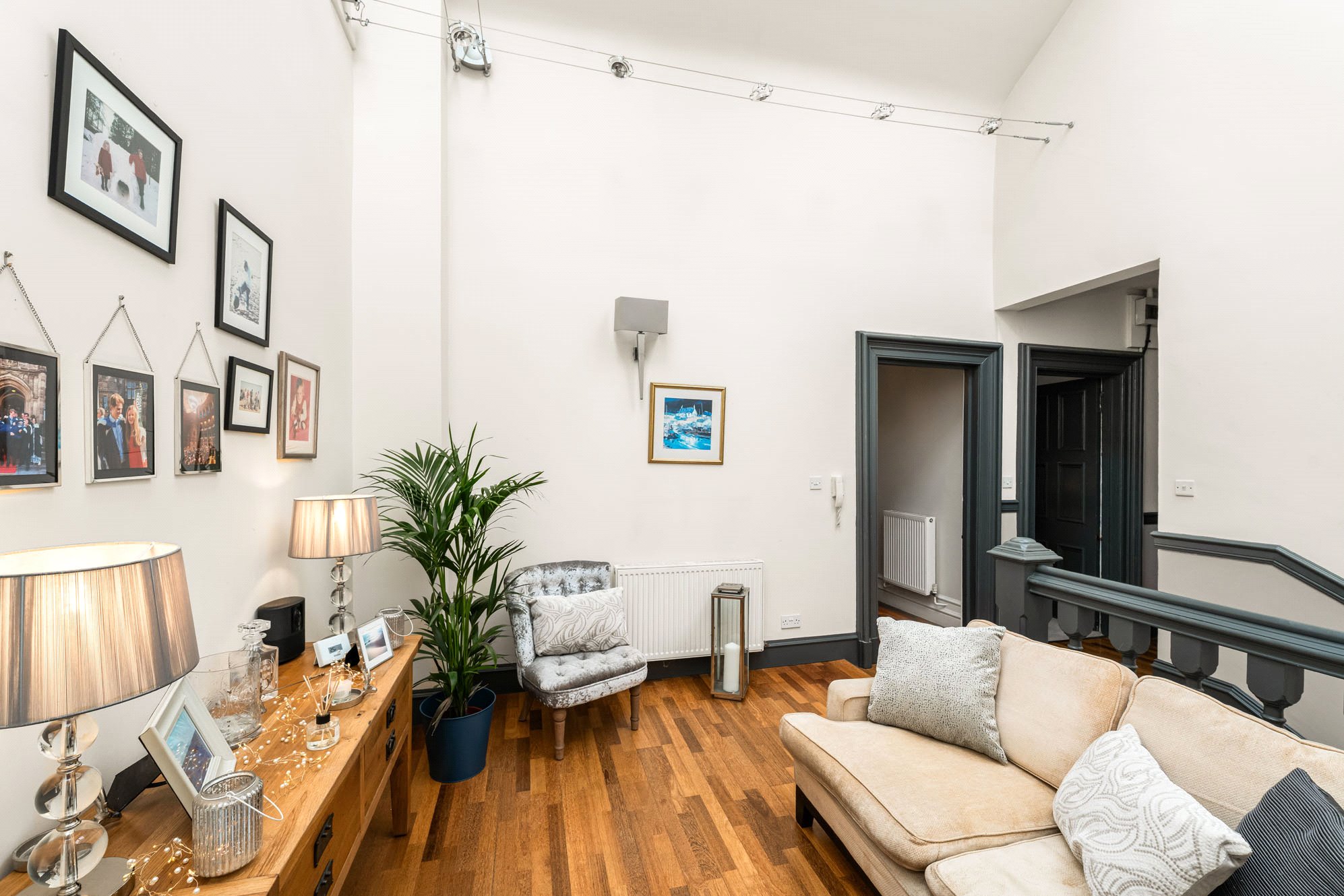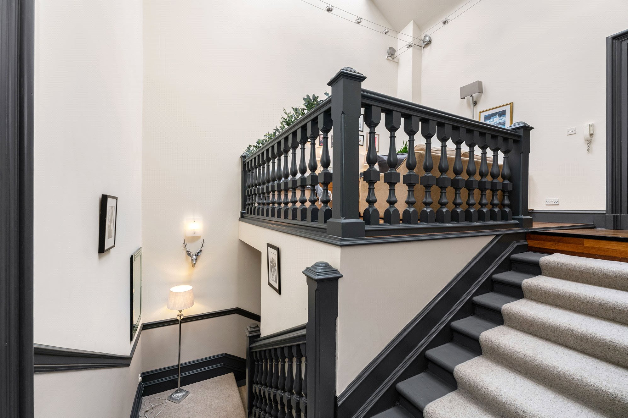 The home for sale has been formed through the skilful and sympathetic conversion of the first, second and third levels and therefor very much has the feel of a “house within a house”. Initial access is gained at the first floor with the original staircase leading up to the second floor. The accommodation includes an outstanding formal lounge, an immediately impressive dining kitchen, a versatile gallery/sitting area on the second floor, three spacious and adaptable double bedrooms, an en suite bathroom and a four-piece family bathroom. Additional features include ornate ceiling cornice, a focal point fireplace in the lounge, ample storage including fitted wardrobes in all three bedrooms and double-glazed sash and case timber framed windows.