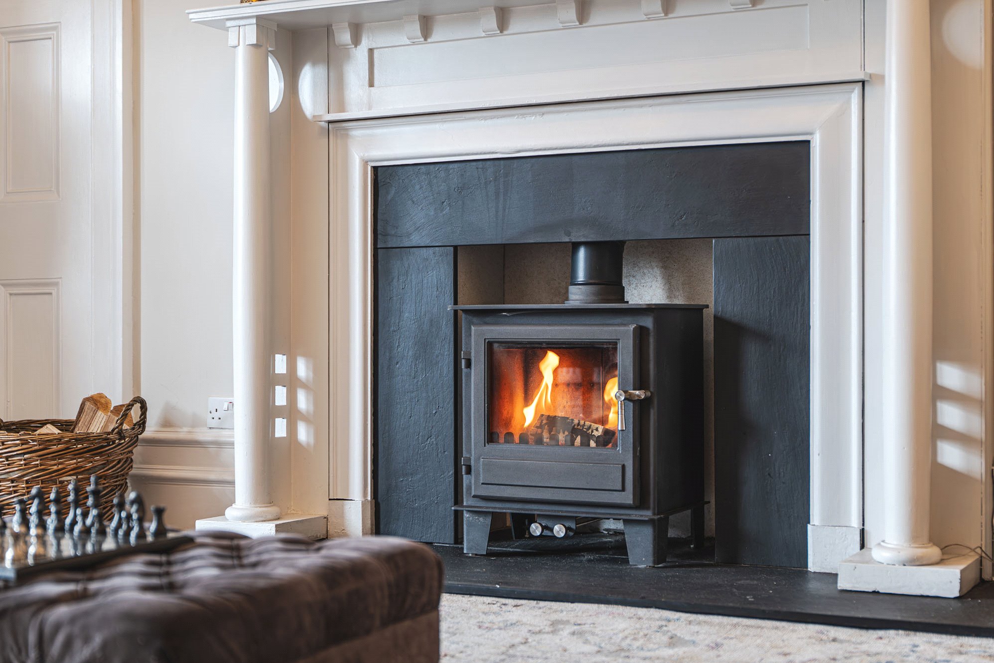 - Superb formal lounge with two section window to the front, ornate ceiling cornice, shelved press and wood burning stove