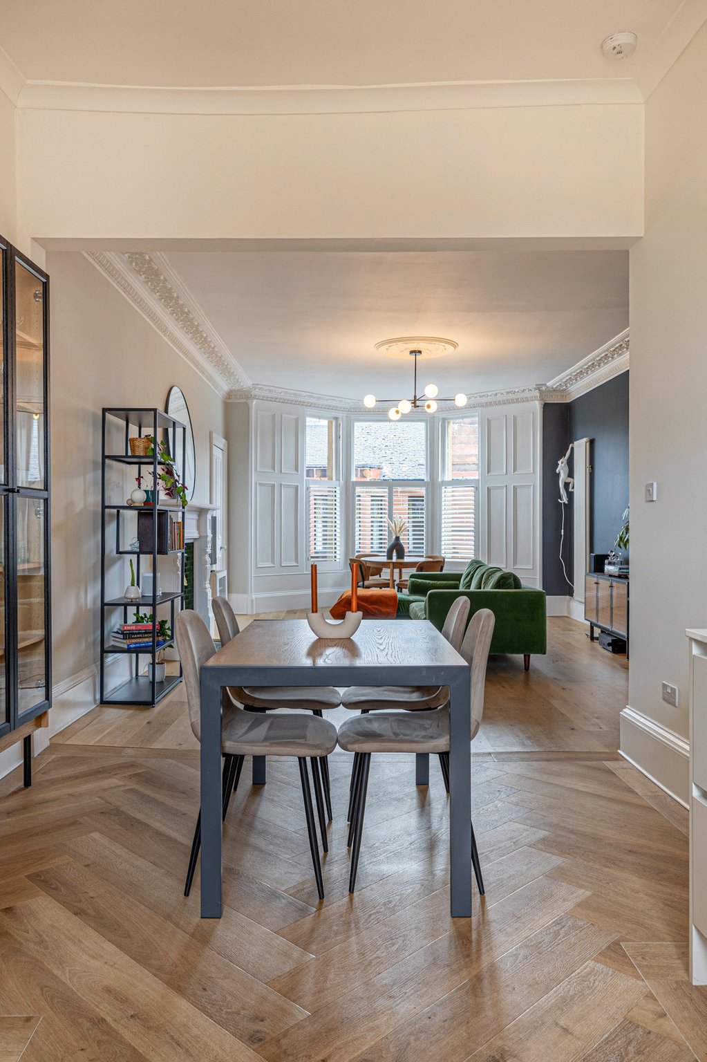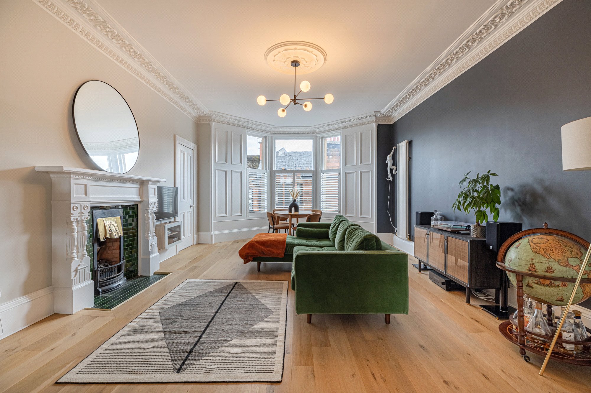 The internal accommodation benefits from excellent natural lights, is of comfortable proportions, is finished to an exacting standard and enjoys a fantastic mix of beautiful traditional features and contemporary finishes. The accommodation includes a superb bay windowed lounge, a stunning open plan dining kitchen, three spacious and versatile double bedrooms, an en suite shower room off bedroom one and a three-piece bathroom off the reception hall. Additional features include an invaluable utility cupboard off the reception hall, engineered flooring in the reception hall, lounge, kitchen and bedroom one, ornate ceiling cornice in the lounge and a focal point fireplace in the lounge.