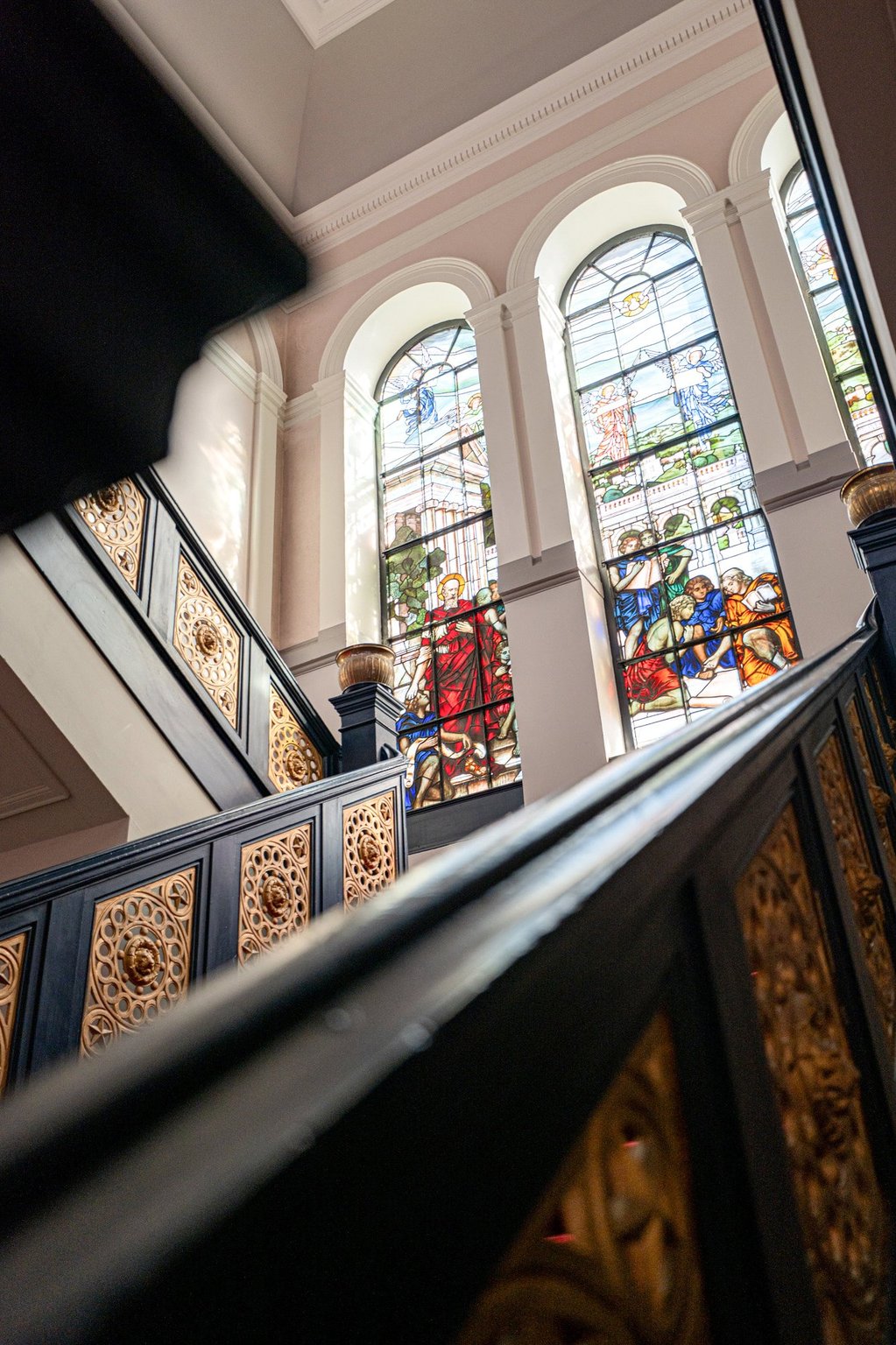 - Notable for its grand central atrium with a water feature, impressive columns, stained glass, and ornate cornicing