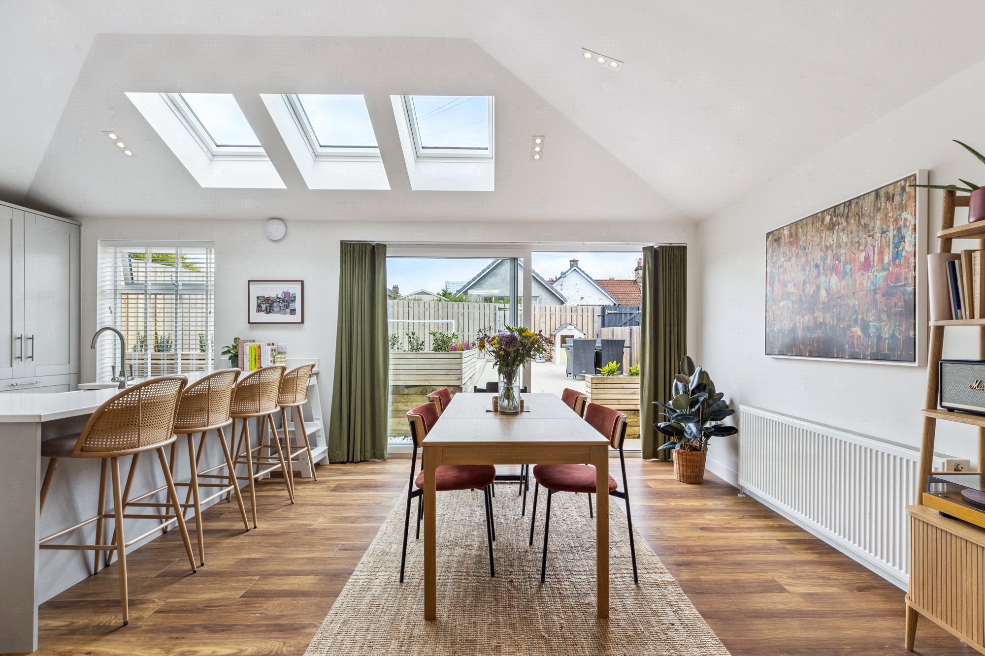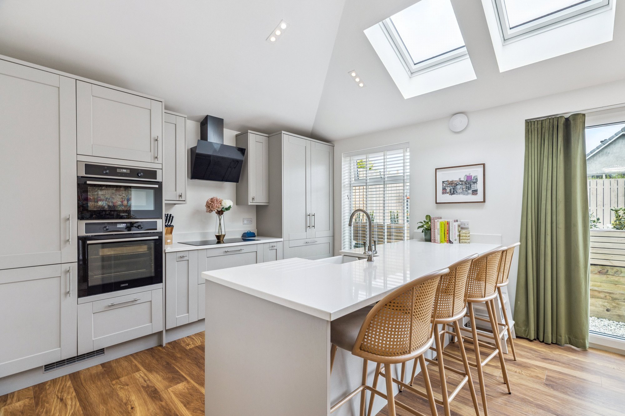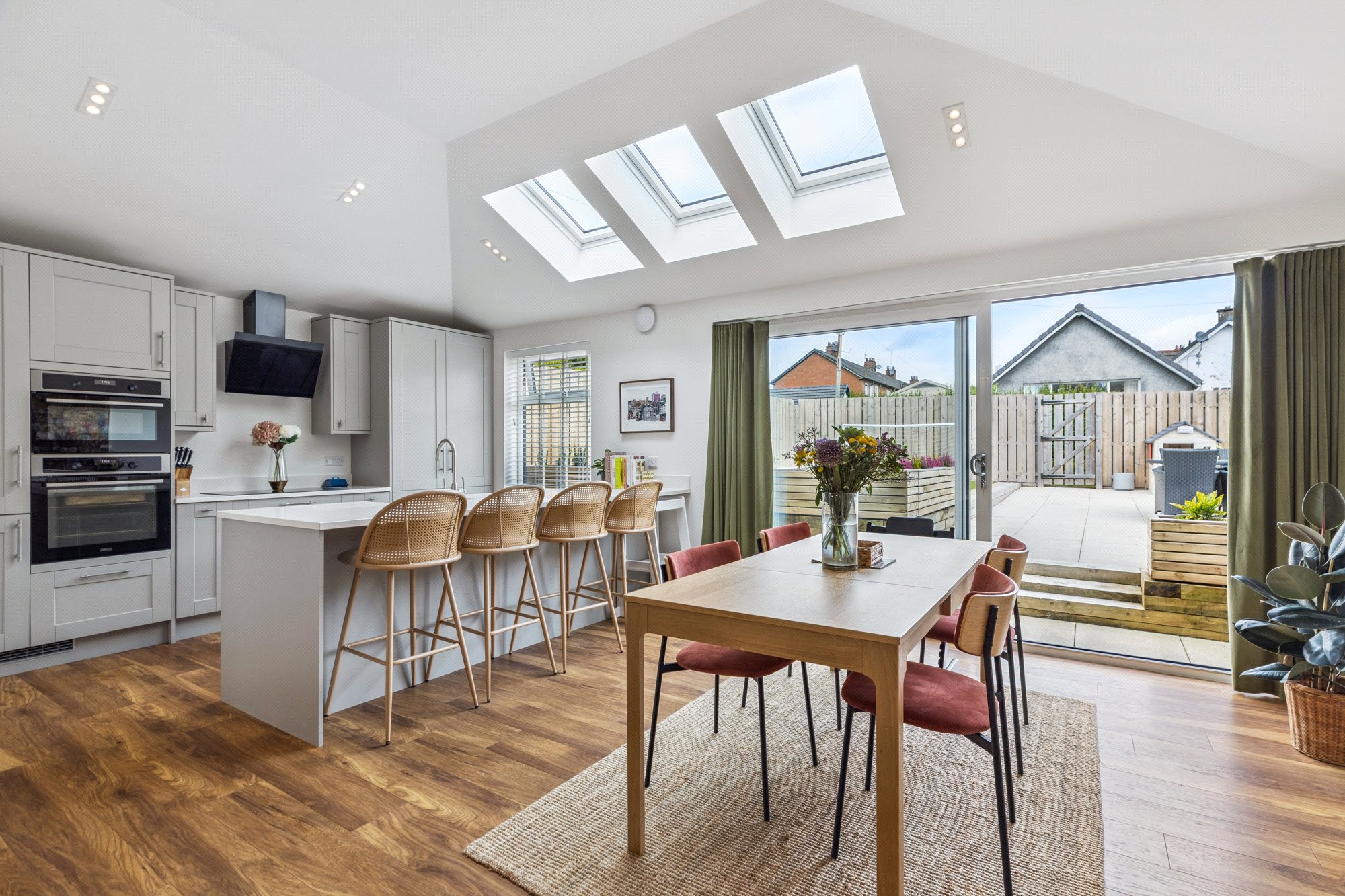 - Magnificent dining kitchen complete with a comprehensive range of base and wall units, integrated appliances, Quartz worktops, breakfasting bar, picture window to the rear and three Velux windows to the rear