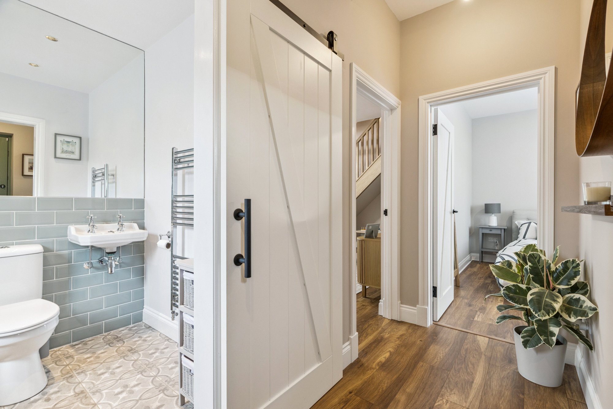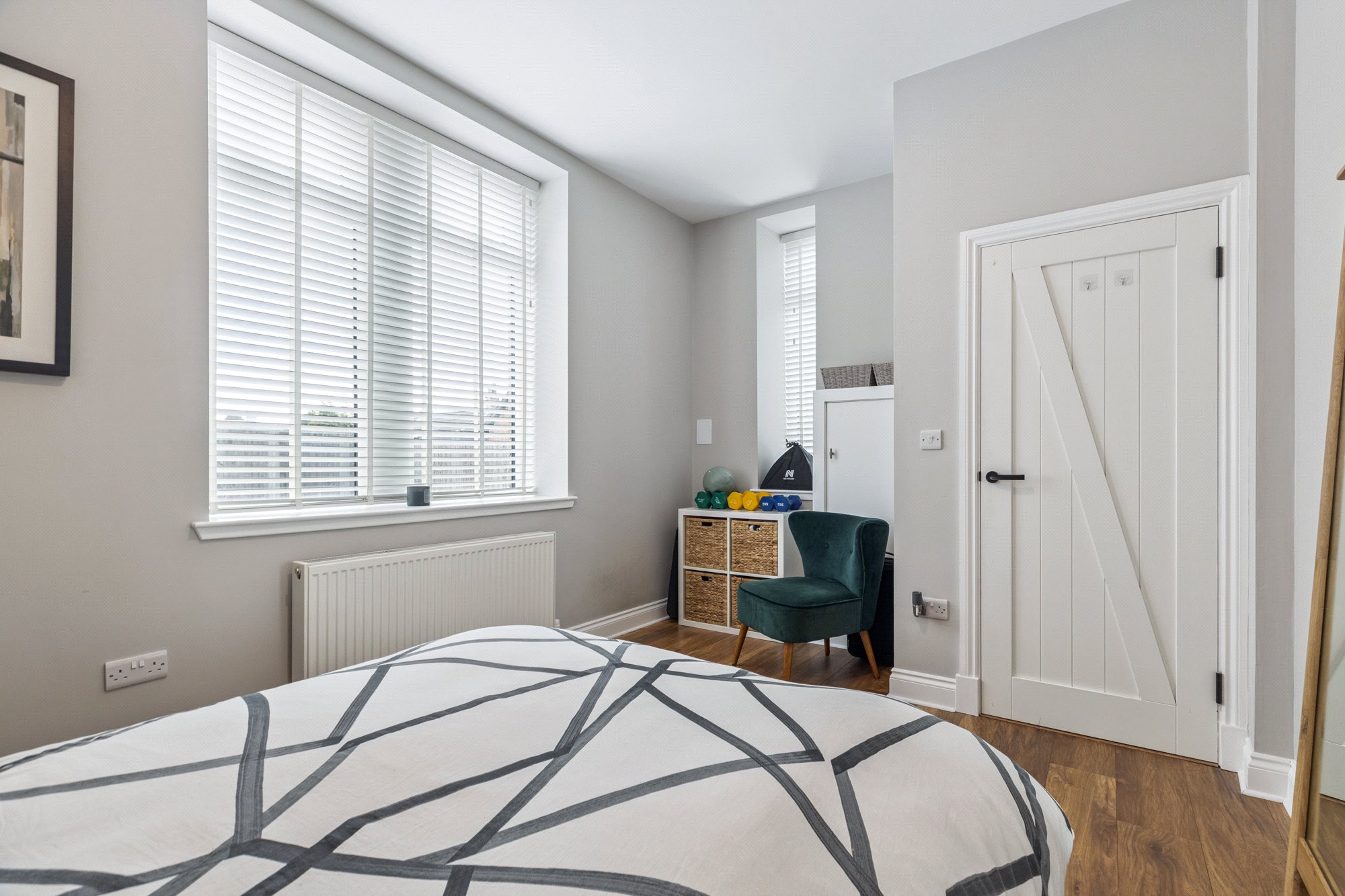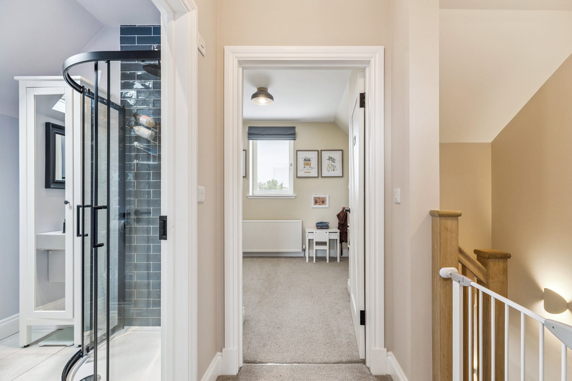 The ground floor also hosts an adaptable and comfortably proportioned third bedroom together with a stylish three-piece bathroom. On the upper level there are two double bedrooms and a contemporary three-piece shower room