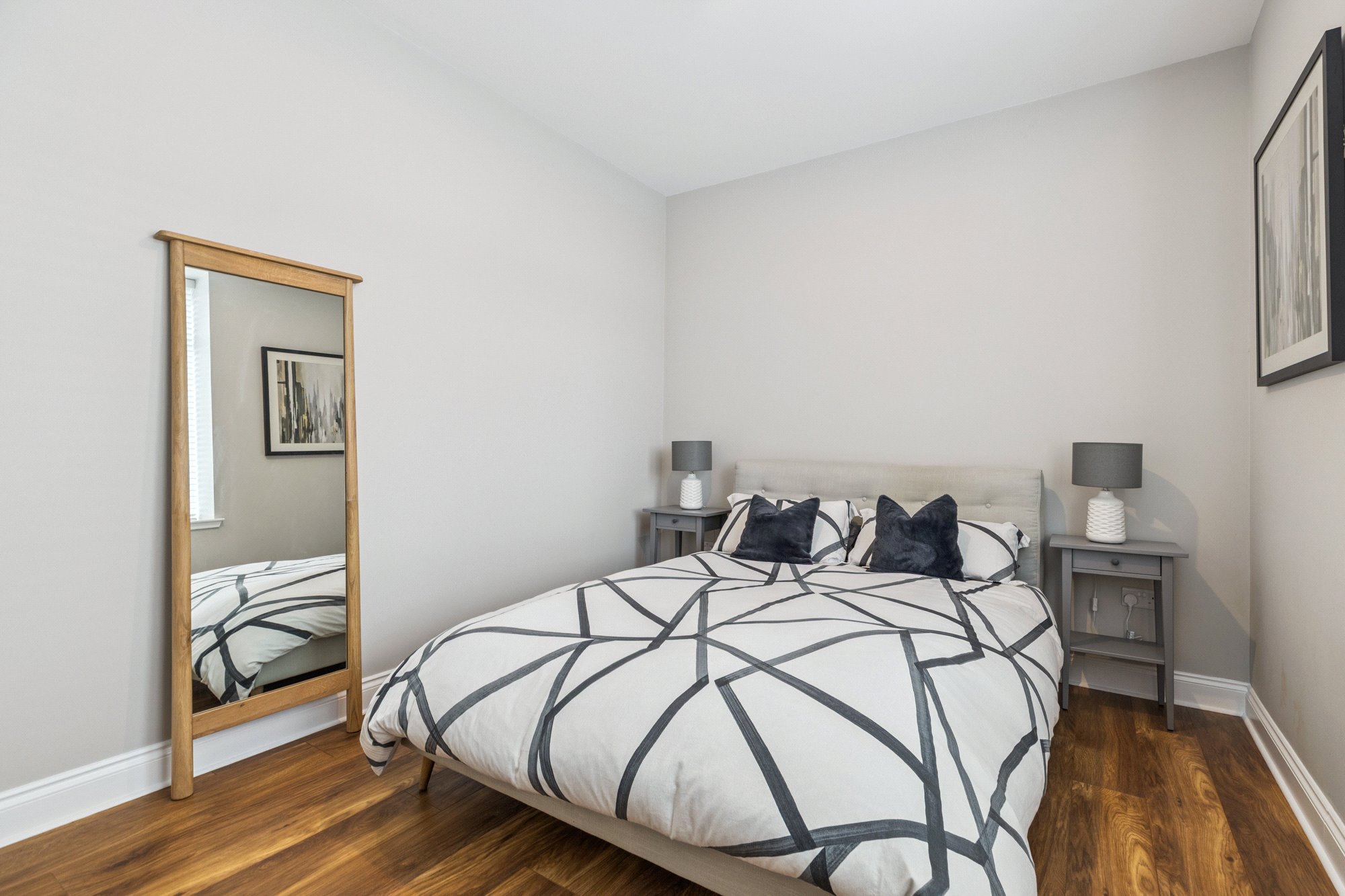 - Bedroom one with window to the front and fitted wardrobes