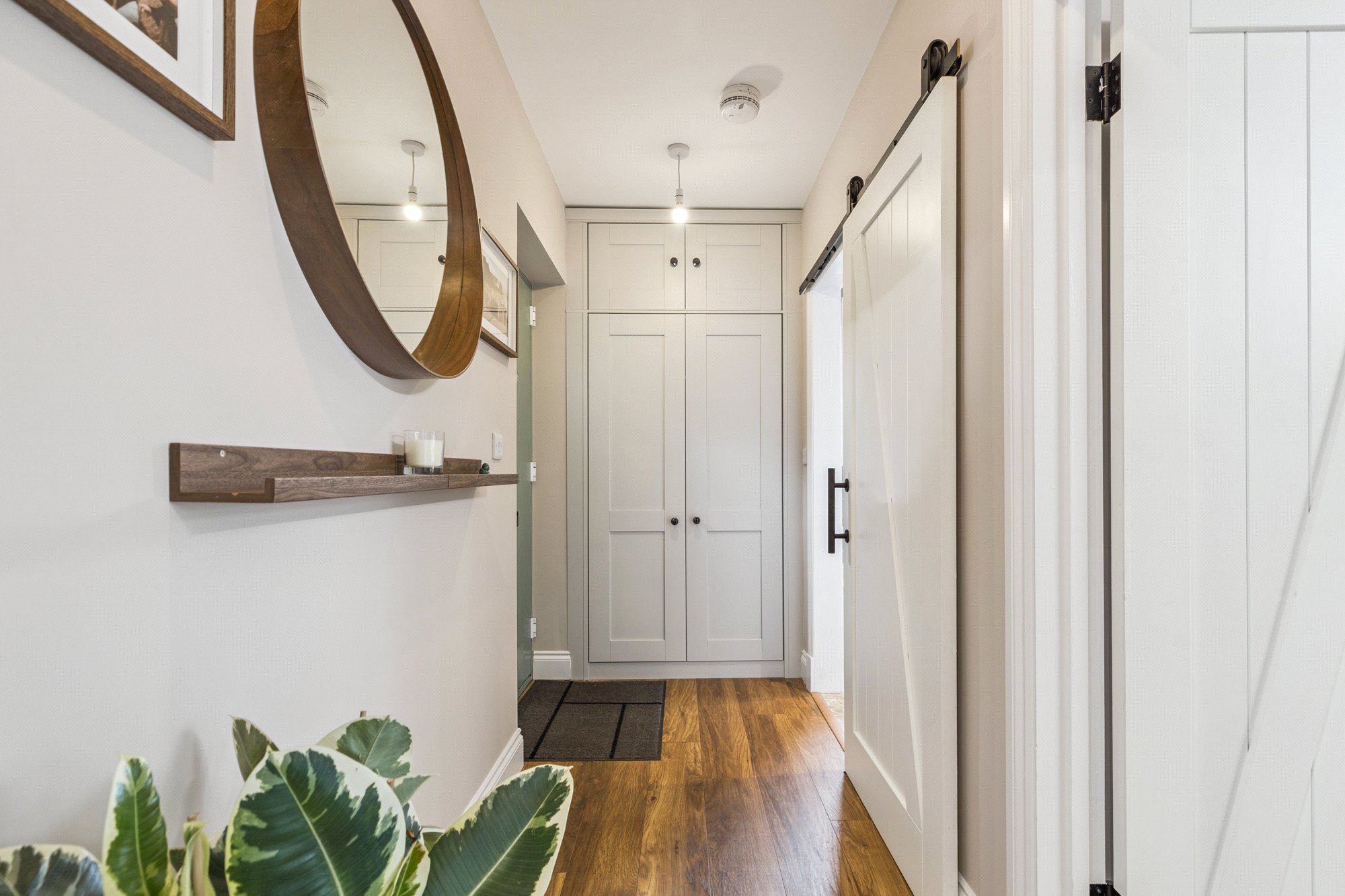- Private door into welcoming reception hall with storage cupboard off