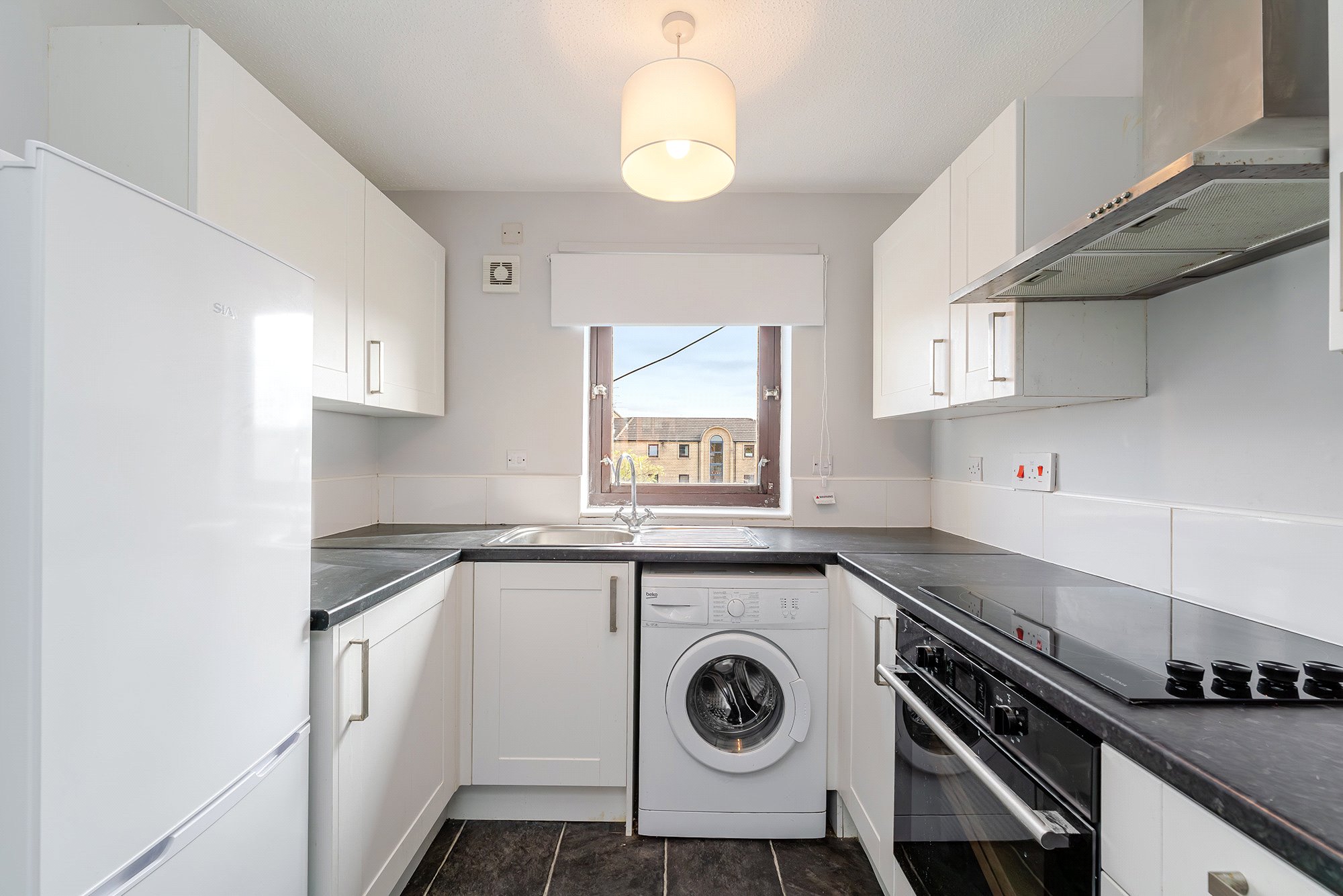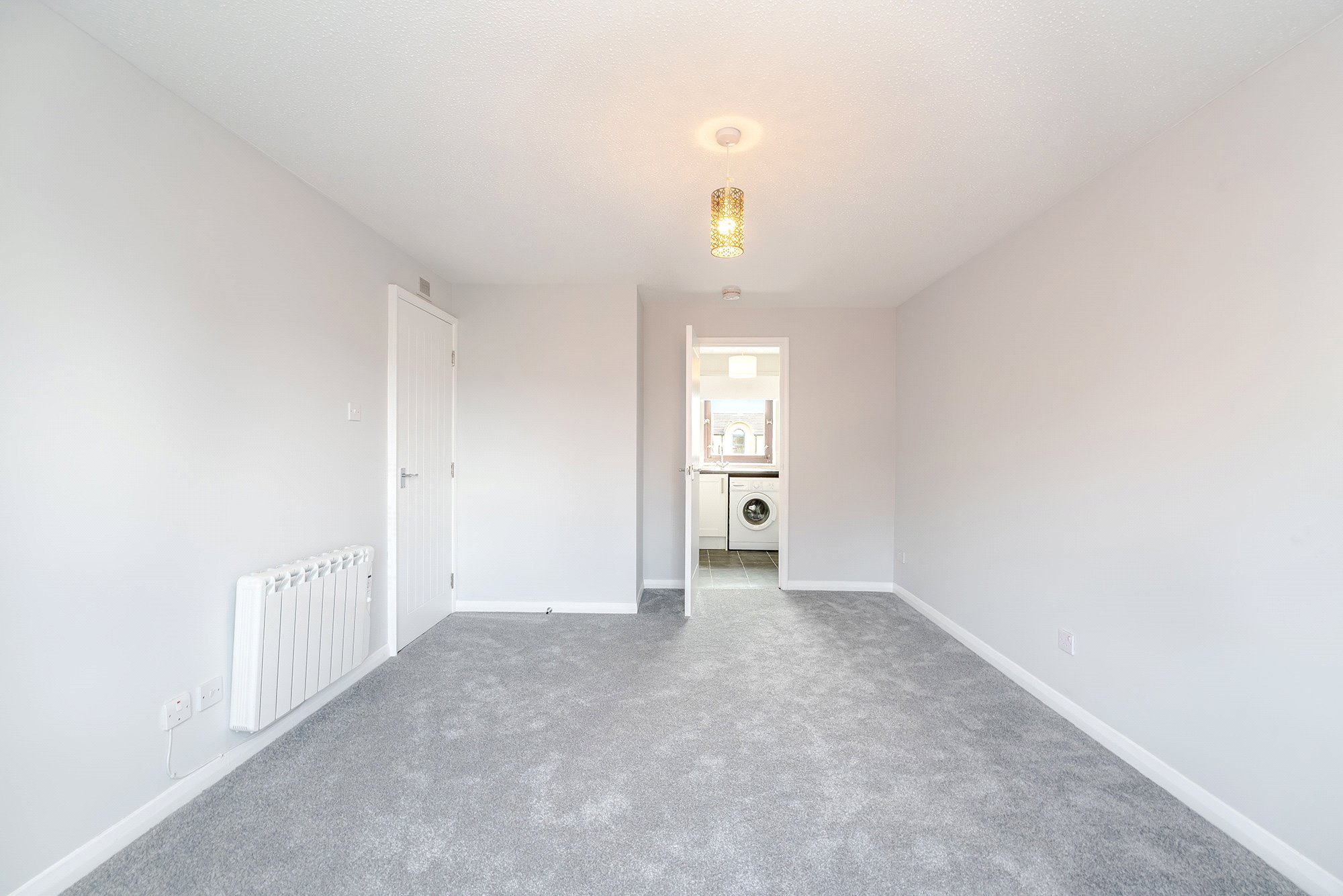 Internally, this is a bright and welcoming apartment, presented in move-in condition with freshly painted walls and soft grey carpeting. The neutral colour palette will appeal to a broad range of tastes, and the layout makes great use of the available floor space. In brief, the accommodation extends to: entrance hallway, a well-proportioned living room with ample space for lounge furniture and a dining area, a modern fitted kitchen with a range of units and appliances, two double bedrooms (each offering fitted wardrobes and good floor space), and a stylish bathroom with a white suite and over-bath shower.