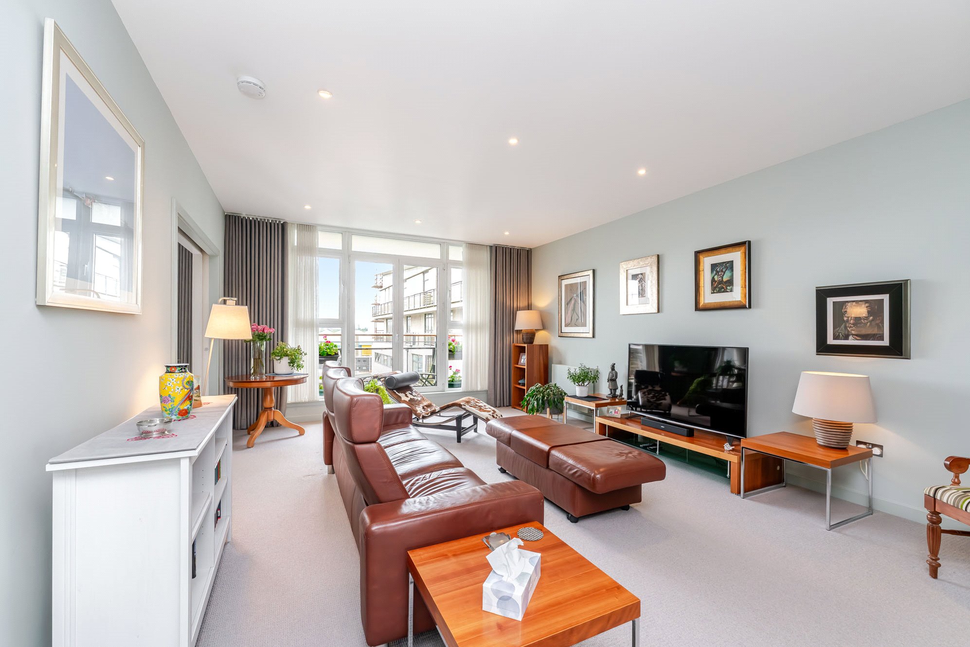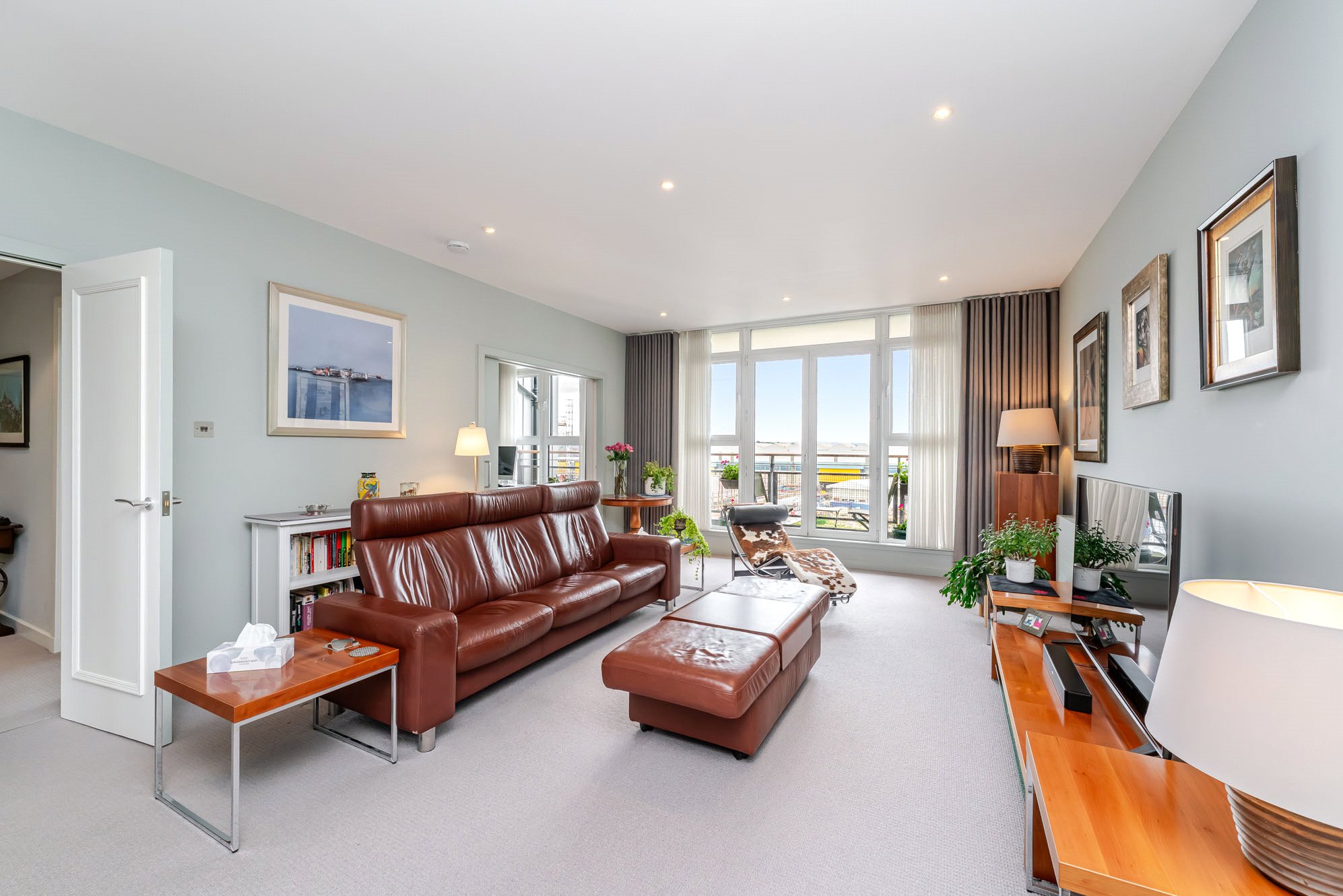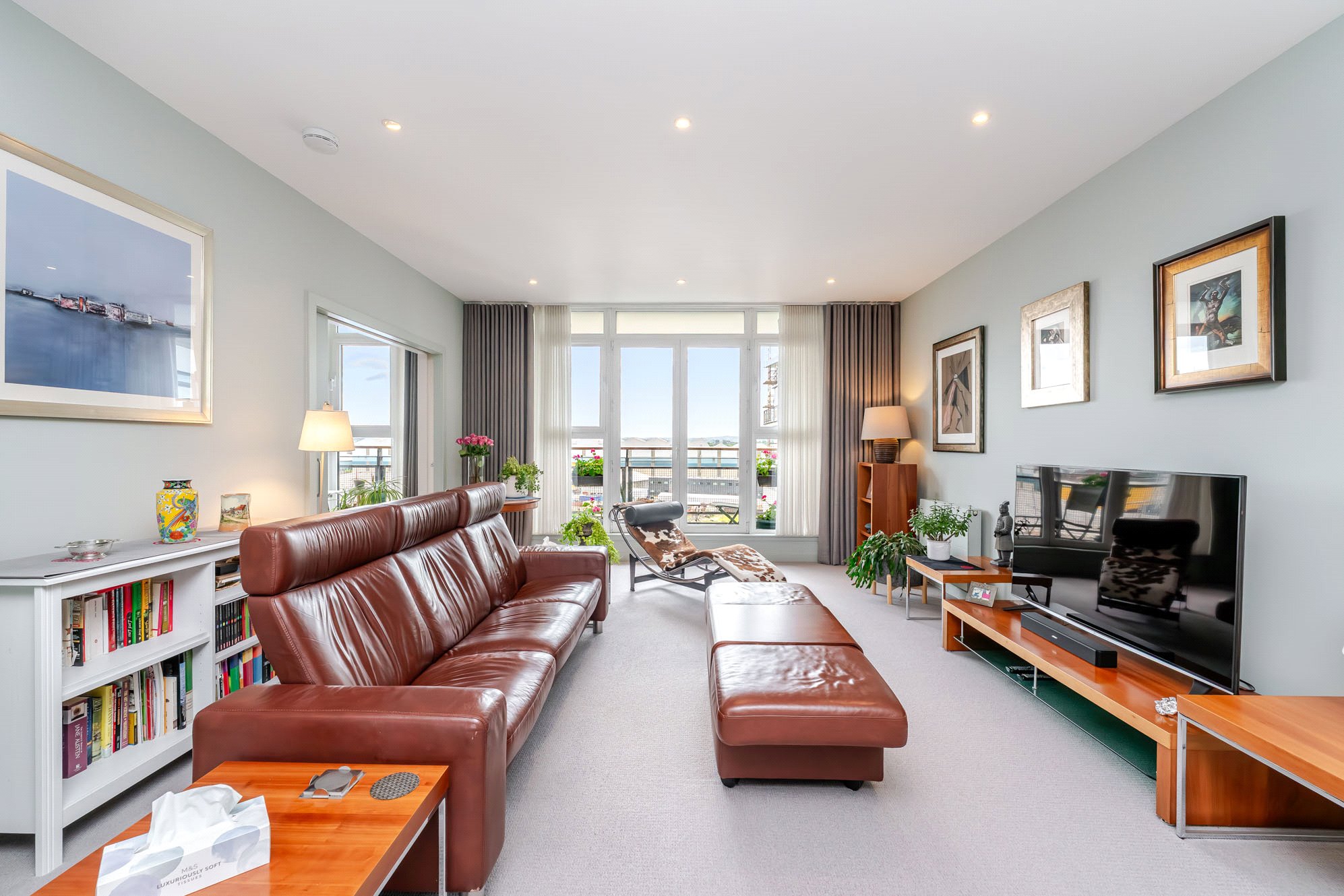 This immediately impressive apartment benefits from excellent natural light, has been upgraded and finished to an exceptional standard and is of particularly comfortable proportions. Extending to over 1200 square feet, the accommodation includes a superb main living/dining room, a fabulous open plan kitchen, three spacious and versatile double bedrooms, an en suite shower room and a three-piece bathroom. In addition, there is ample storage throughout including fitted wardrobes in all three bedrooms together with an invaluable utility cupboard off the reception hall. Additional features including an allocated parking space within the secure residents’ car park, lift access to each level, concierge service, a substantial private terrace/balcony accessed from the kitchen, a separate south facing balcony accessed from the living/dining room and generous external storage accessed from the seventh-floor landing.