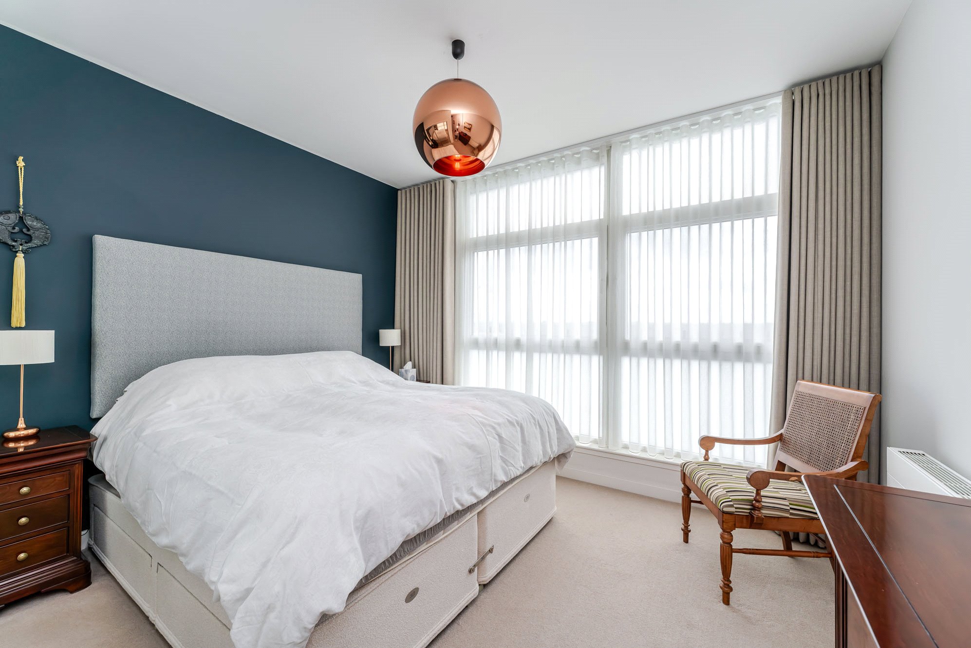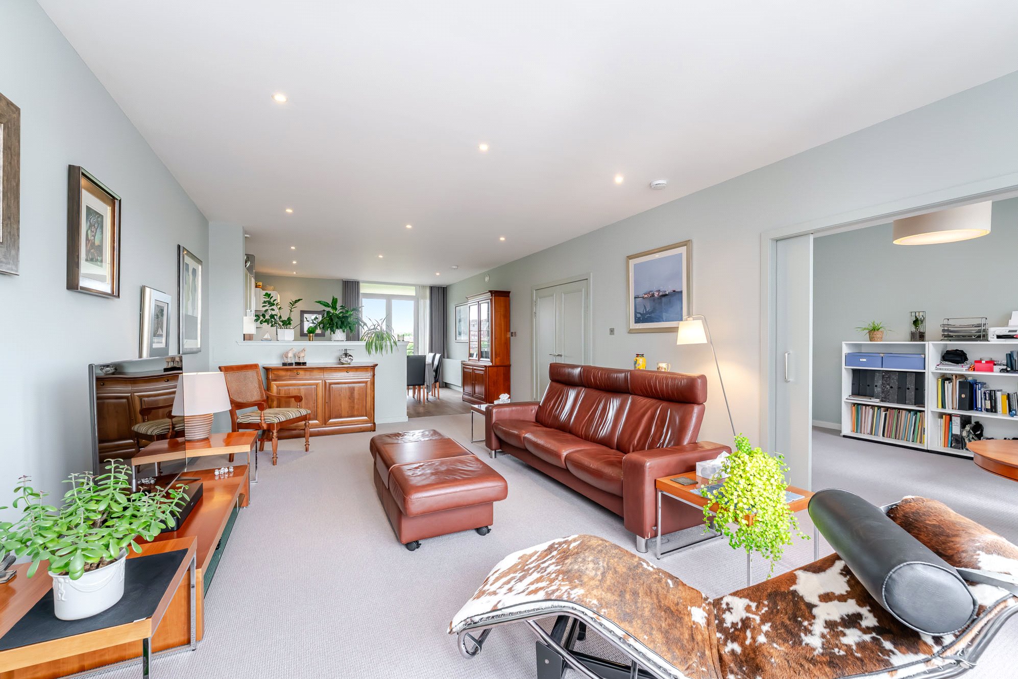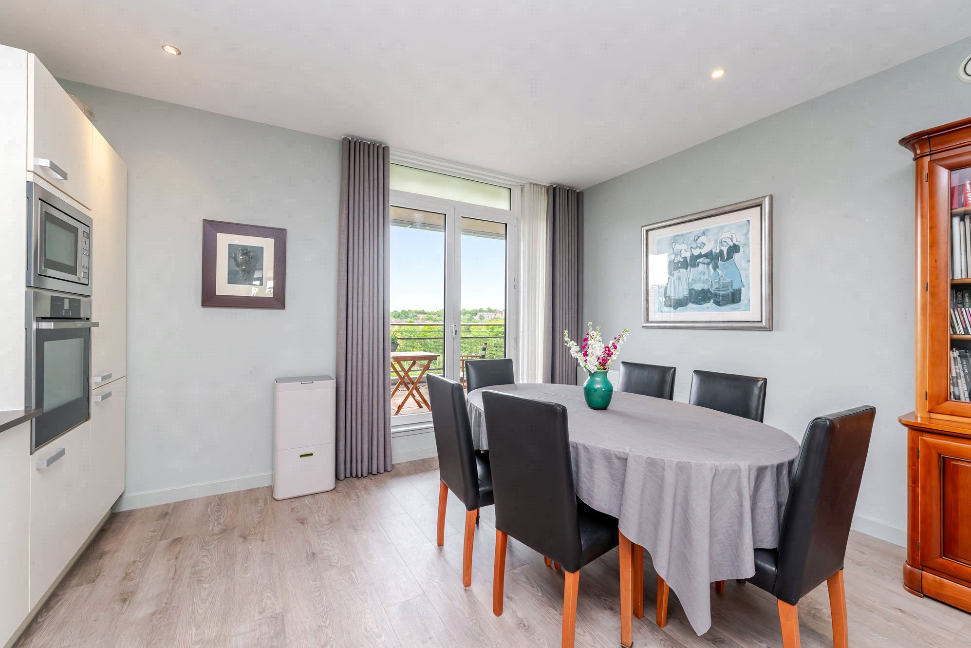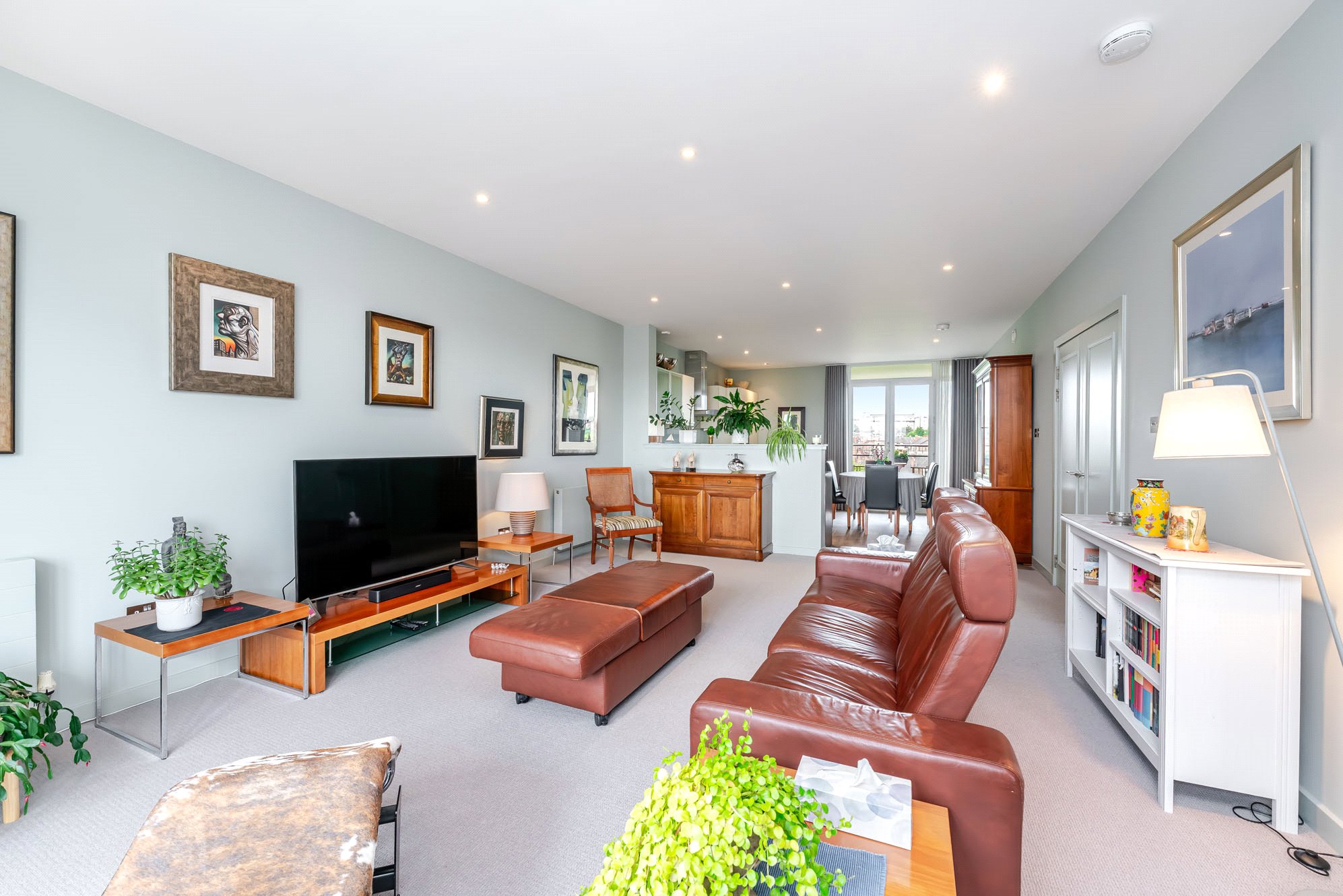 This immediately impressive apartment benefits from excellent natural light, has been upgraded and finished to an exceptional standard and is of particularly comfortable proportions. Extending to over 1200 square feet, the accommodation includes a superb main living/dining room, a fabulous open plan kitchen, three spacious and versatile double bedrooms, an en suite shower room and a three-piece bathroom. In addition, there is ample storage throughout including fitted wardrobes in all three bedrooms together with an invaluable utility cupboard off the reception hall. Additional features including an allocated parking space within the secure residents’ car park, lift access to each level, concierge service, a substantial private terrace/balcony accessed from the kitchen, a separate south facing balcony accessed from the living/dining room and generous external storage accessed from the seventh-floor landing.