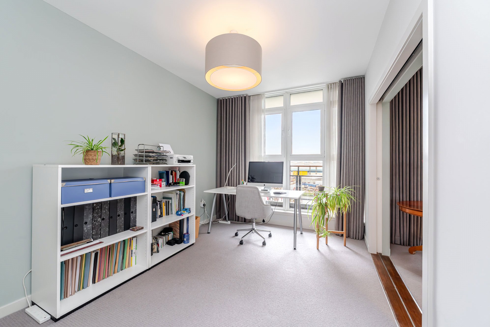 - Versatile third bedroom/dining room/home office accessed from the reception hall or via sliding pocket door from the livening/dining room with three section window to the rear and fitted wardrobes