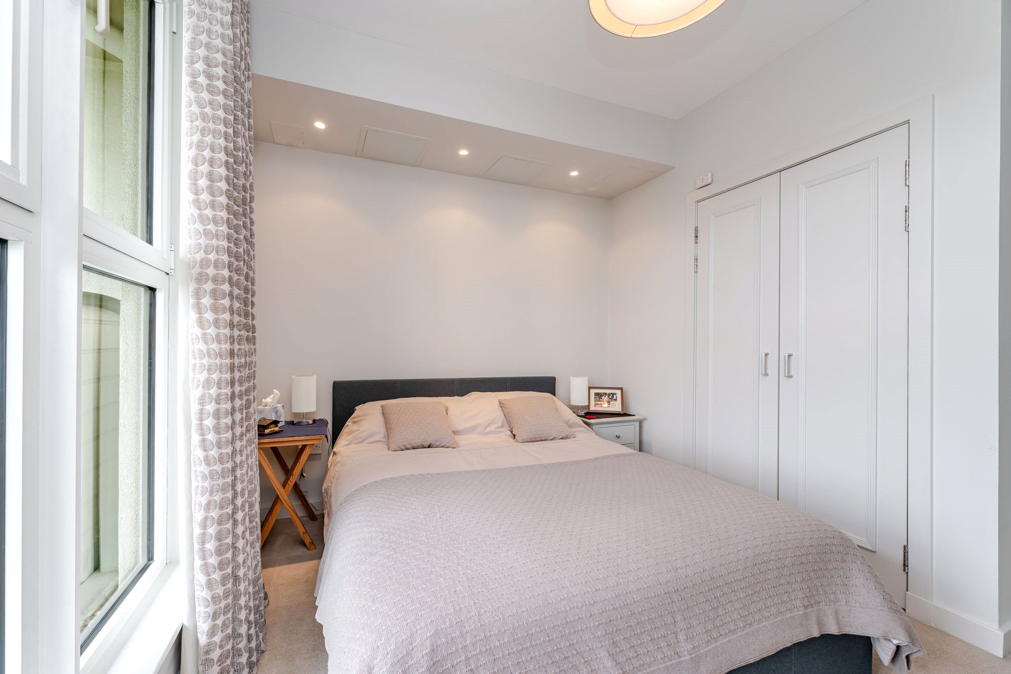 - Bedroom two with three section window to the front and fitted wardrobes