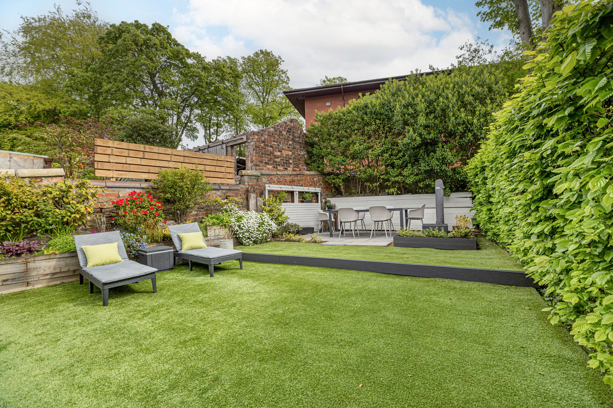 - Beautiful surrounding gardens. The front has a lawn and large patio. There is a landscaped garden to the side and then an unexpectedly, generous garden to the rear with two terraces which take advantage of the movement of the Sun throughout the day.