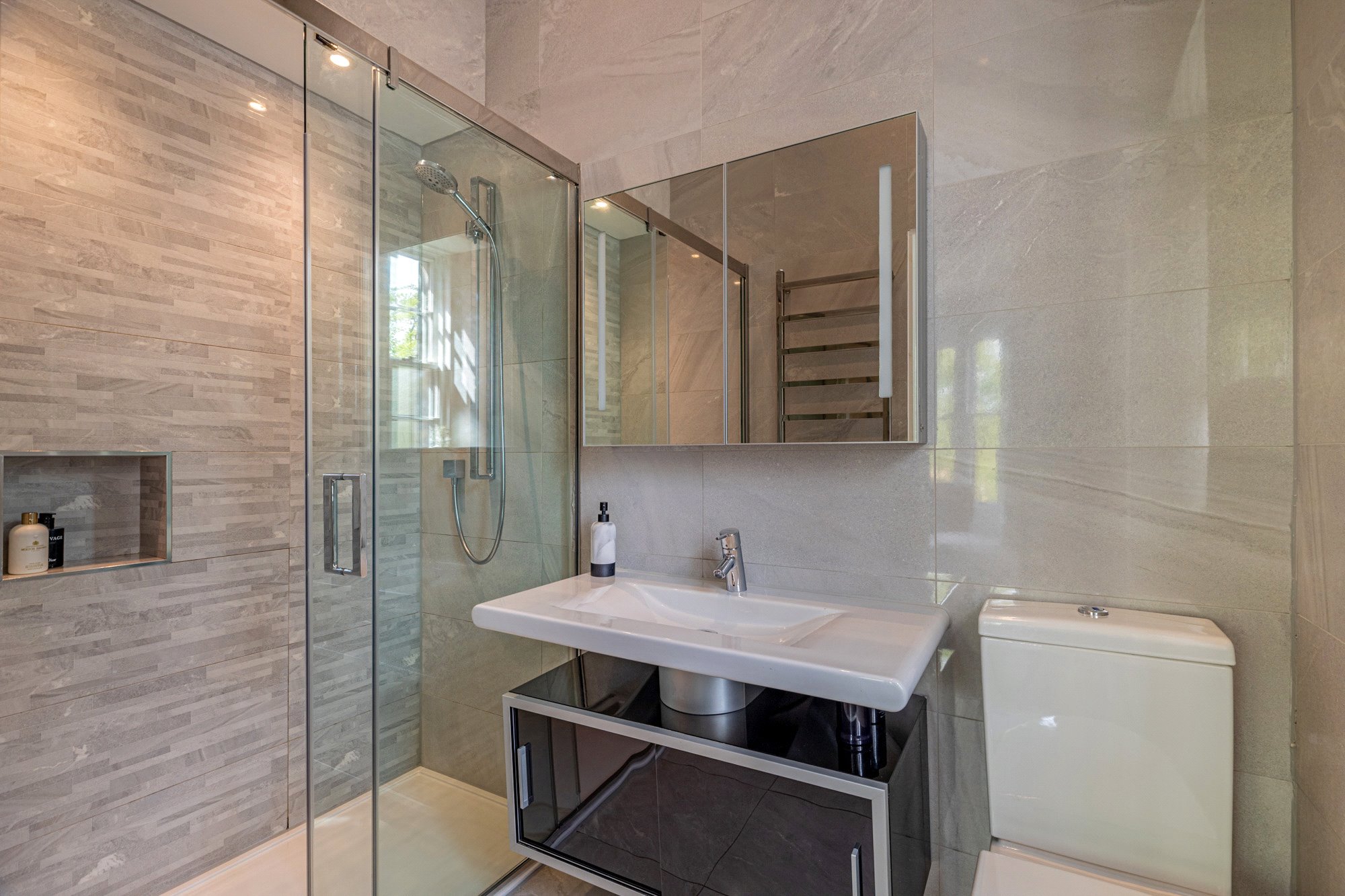 • Accessed from the back hallway on the ground floor, there is a stairway leading up to a self contained annexe which provides bedroom five and a further contemporary shower room. The landing has a window to the side as do bedroom five and the annexe bathroom.