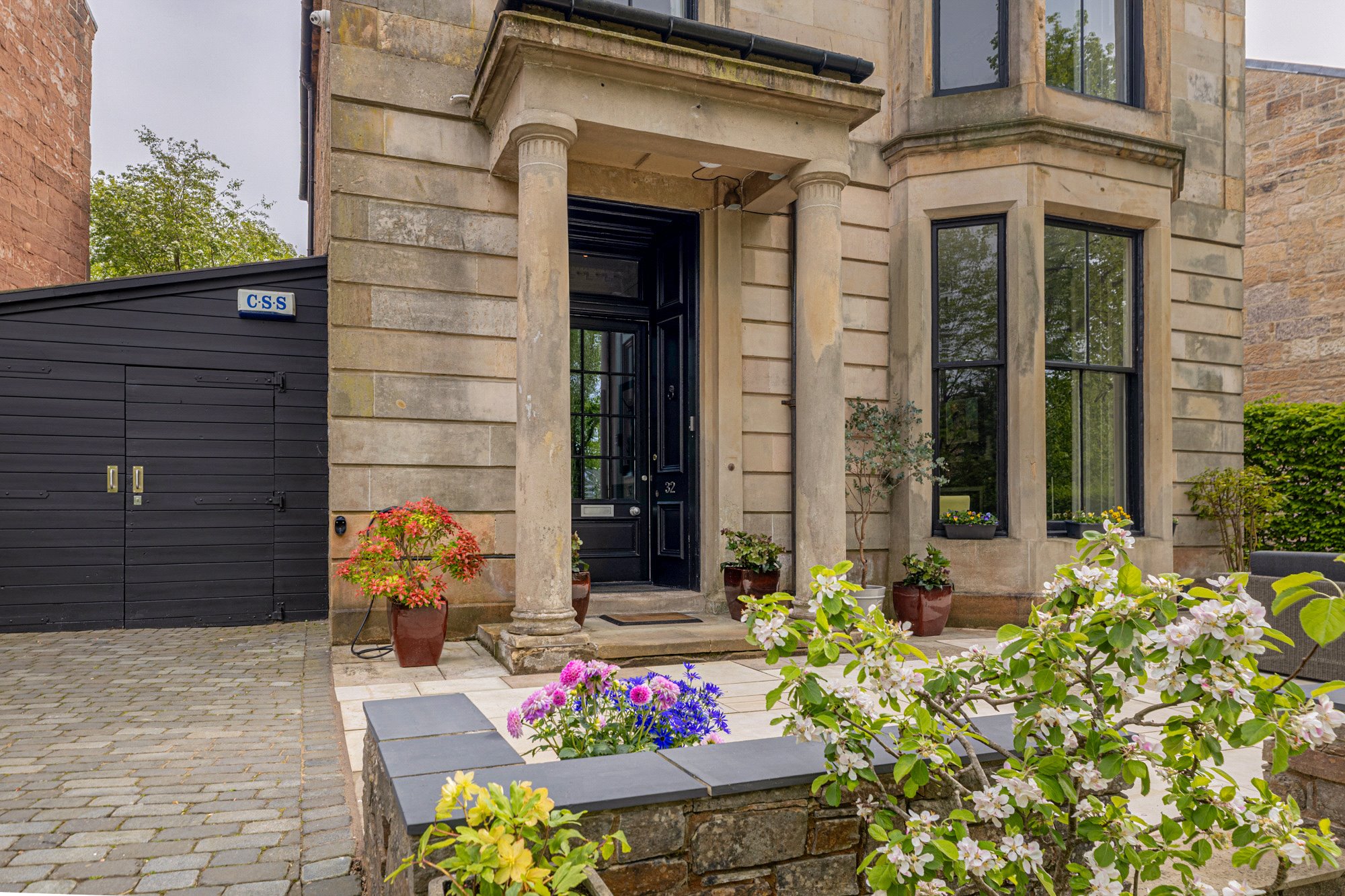Detached houses of this calibre and character are seldom available in the West End, and 32 Banavie Road stands out not only for its exclusivity but also for its generous setting. Nestled within beautifully landscaped private gardens, the property offers a wealth of outdoor space: a manicured front lawn, a substantial front patio ideal for gatherings, a charming side garden with additional patio, and a wonderfully elevated rear garden with a sun terrace leading to a top-tier viewpoint-perfect for relaxation or entertaining. (South facing)