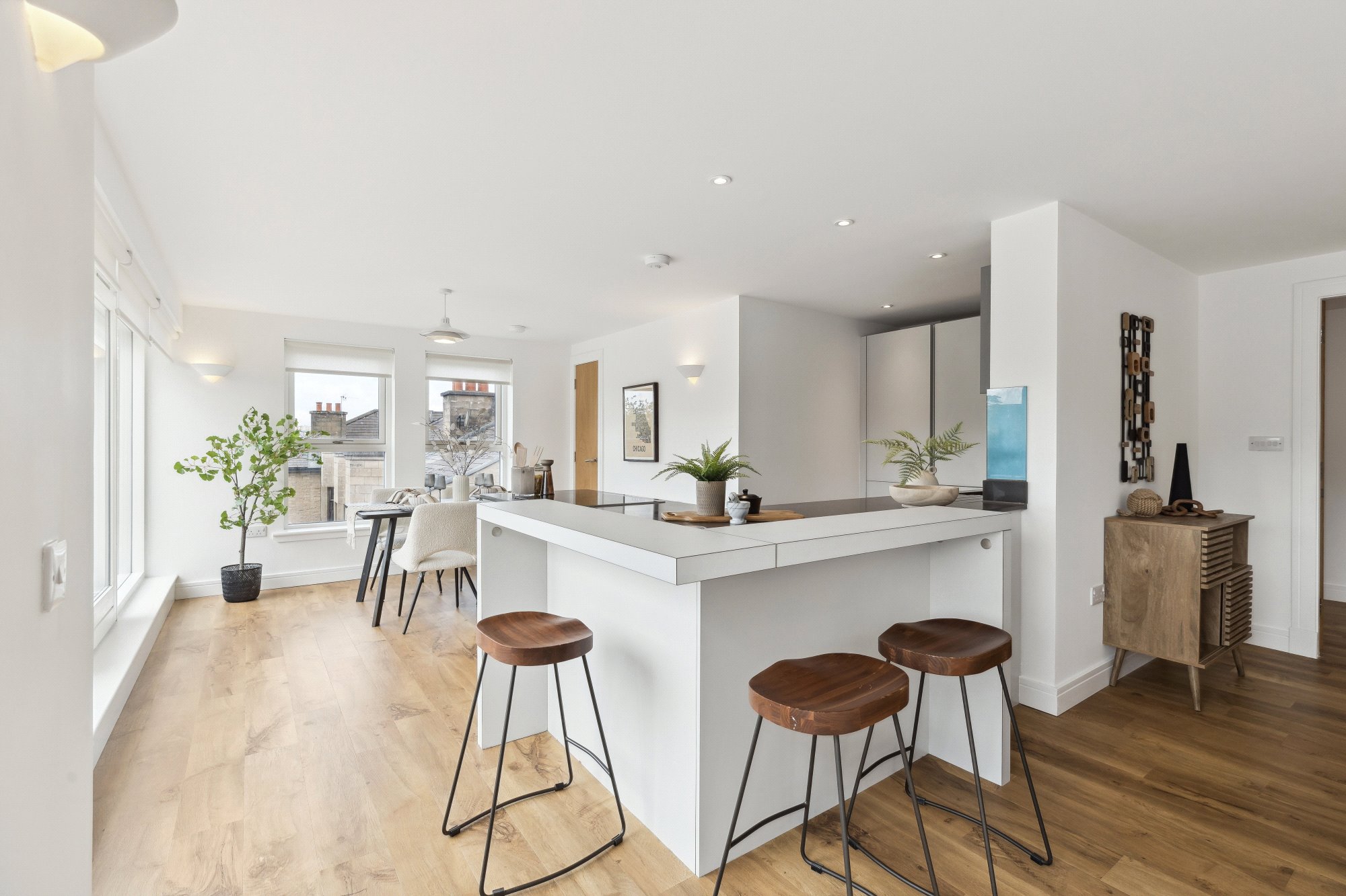 Whilst not at the absolute top of the building there is no doubt that this quite extraordinary three bedroom flat has the “penthouse” feeling.