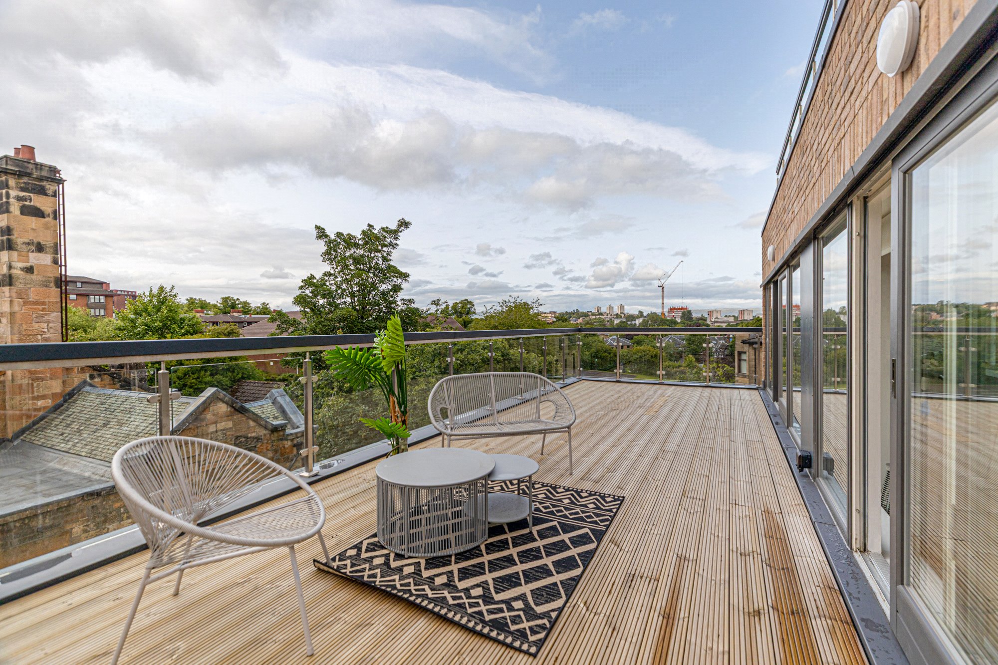 - Bedroom one (principal) of really generous proportions with three corner windows including a sliding door to a second outside space - a feature balcony with decking and glazed screens.