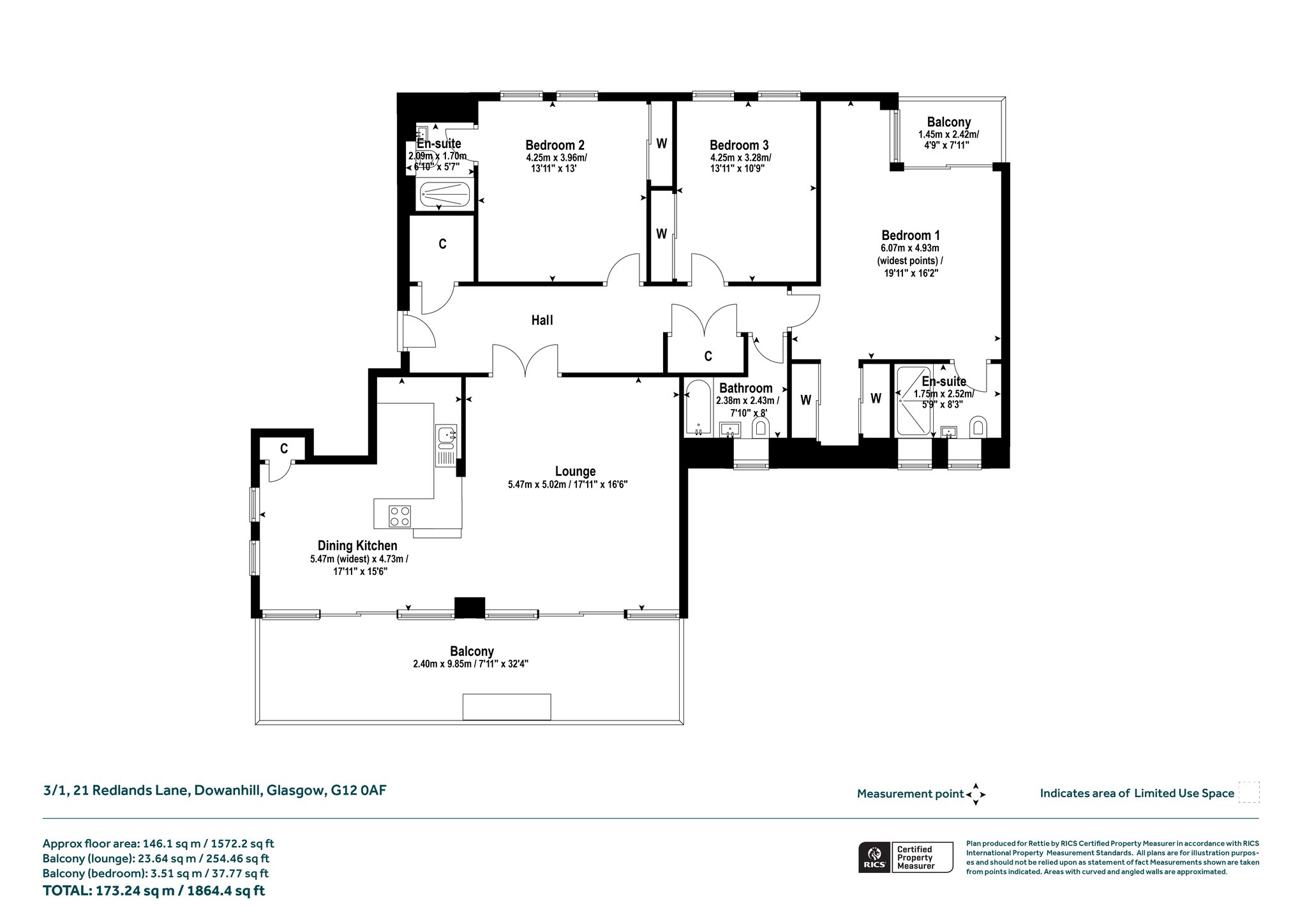 Internally the flat continues to Impress and there are numerous notable features including the superb lounge, quality fitted kitchen, dining area, three bedrooms (two with en suite shower rooms) a dressing room area off the principal bedroom and a main bathroom.