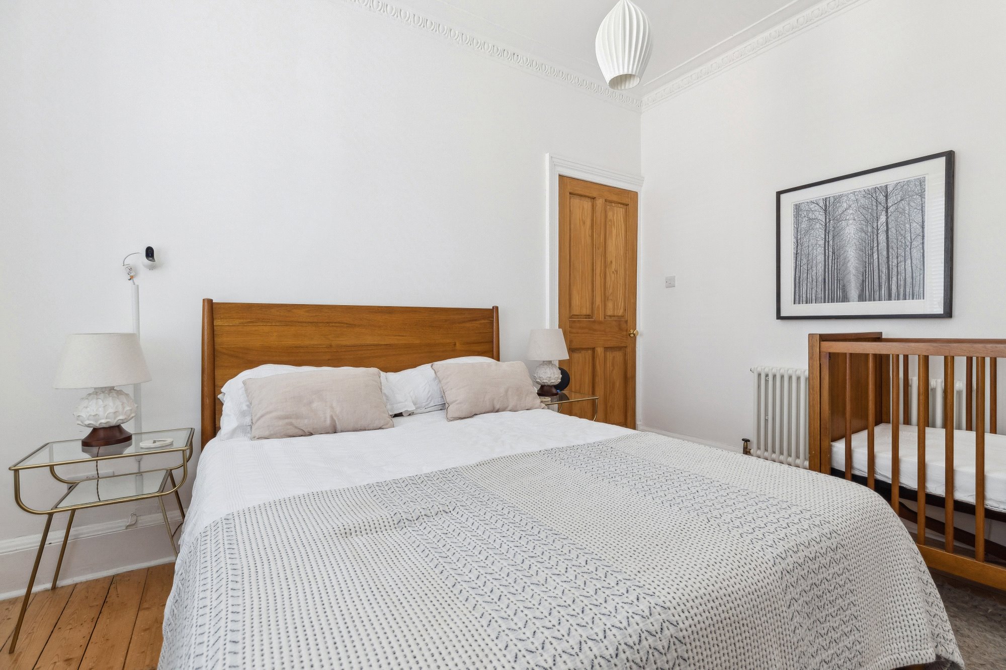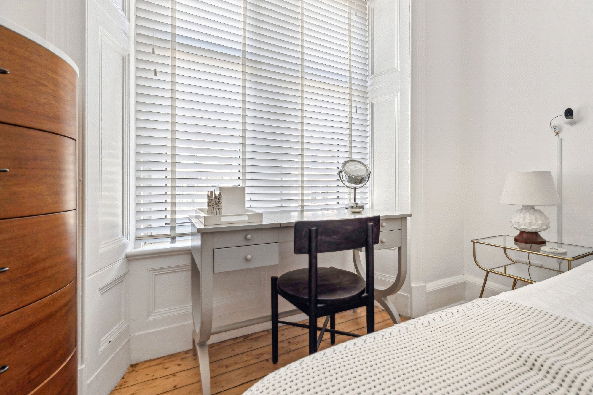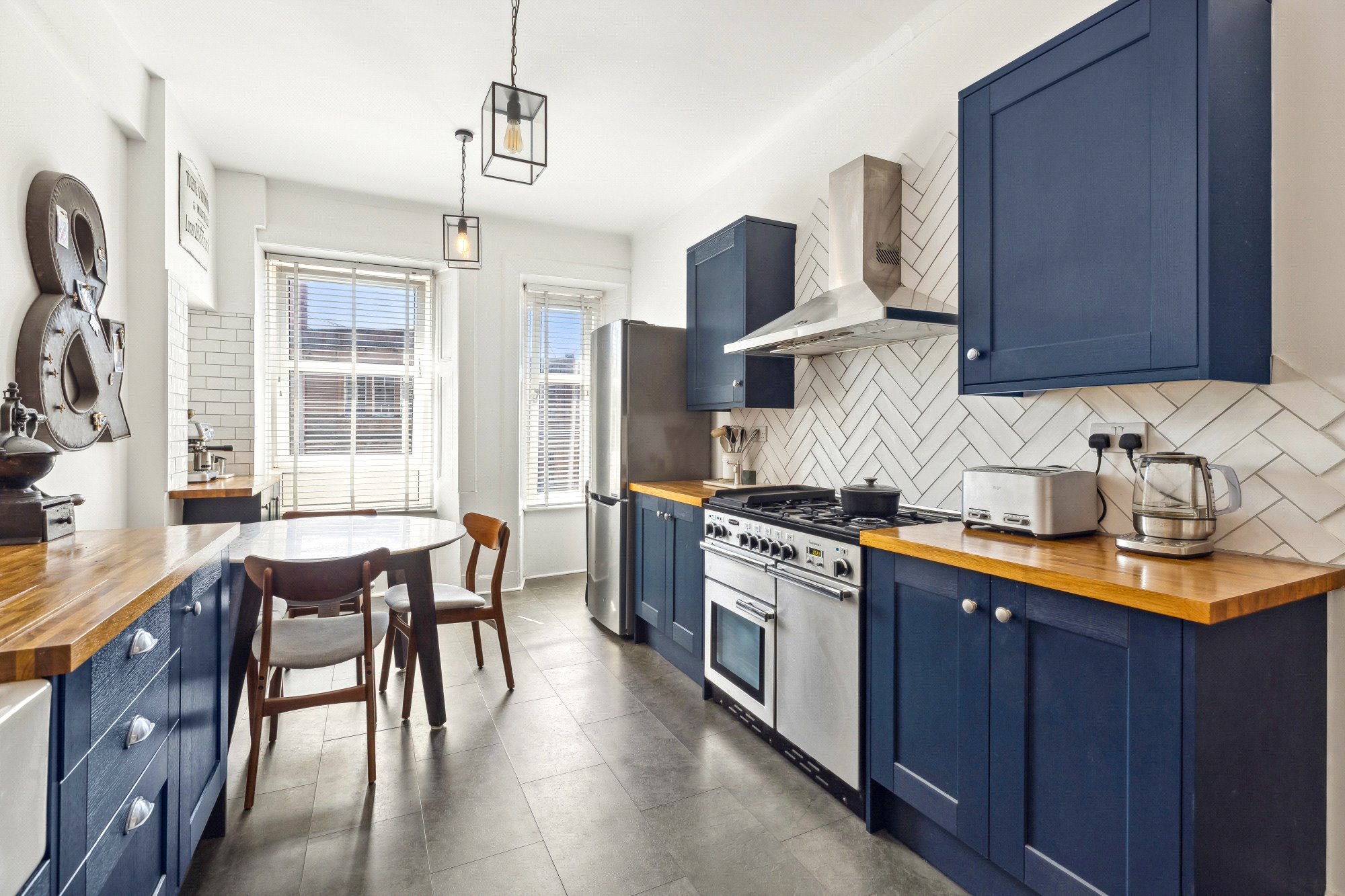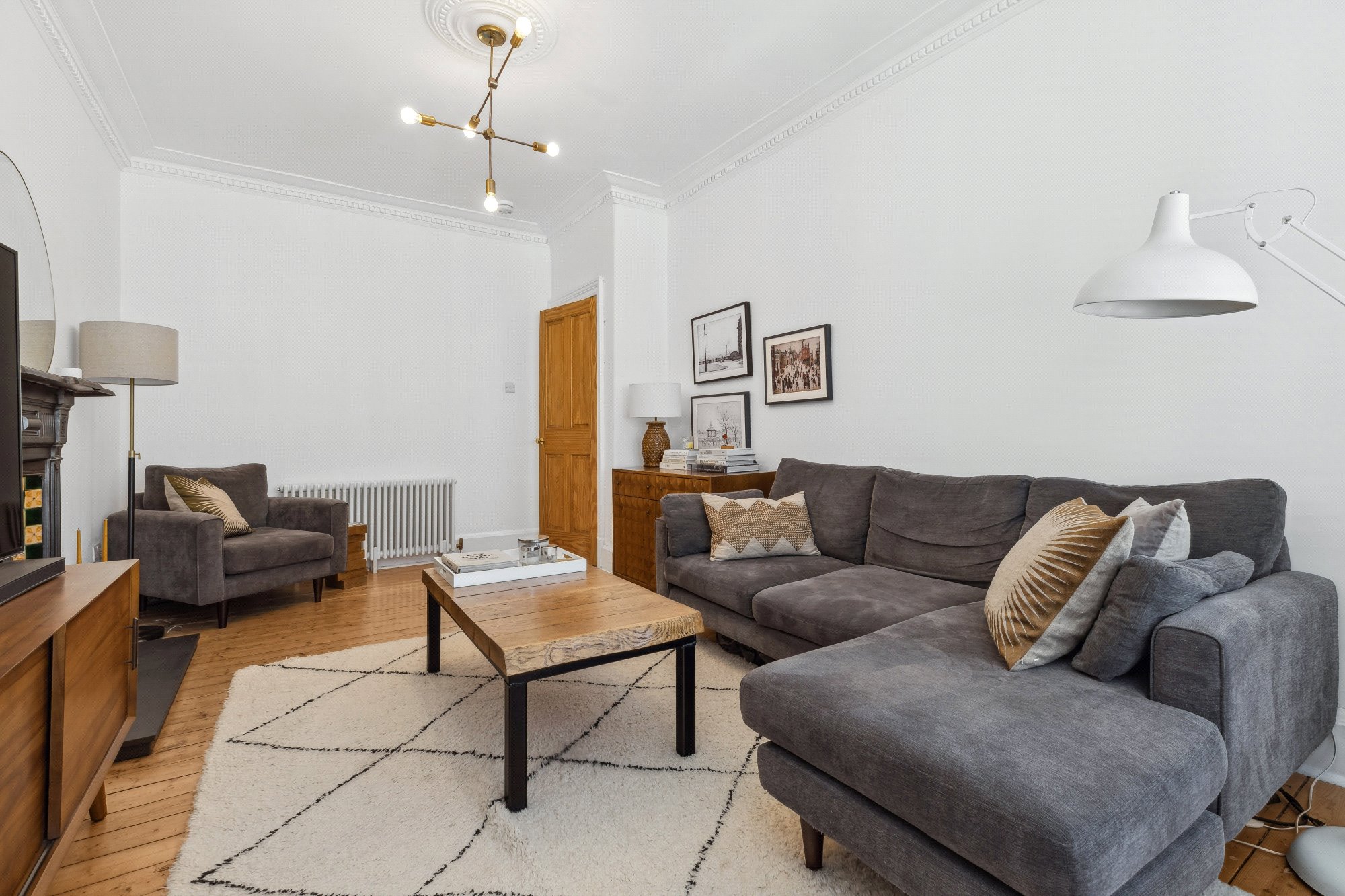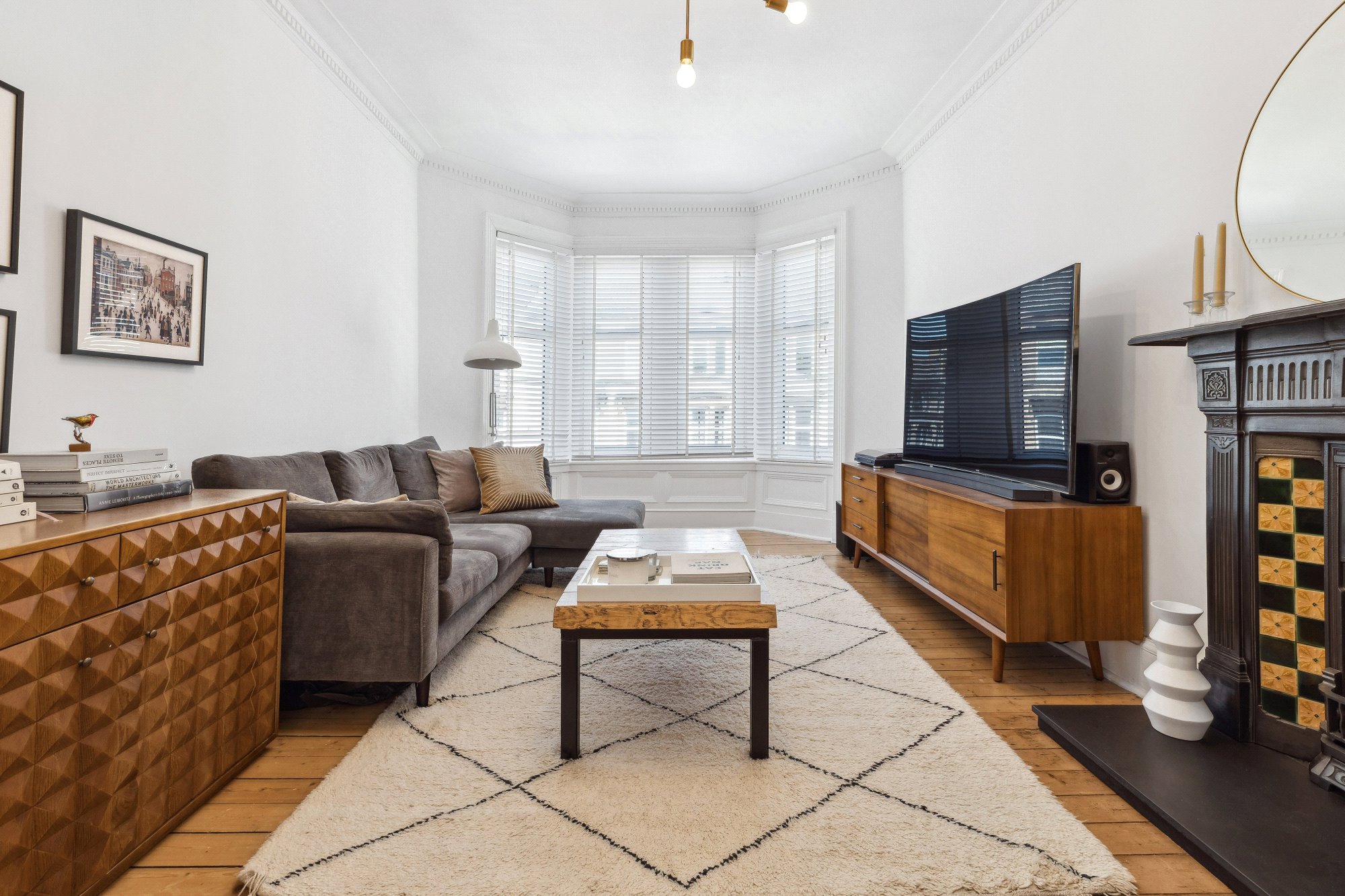 Occupying a prominent third floor position within a traditional red sandstone tenement building this is a beautifully presented and generously proportioned two-bedroom flat. Offering naturally bright and spacious accommodation this immediately impressive home has been comprehensively upgraded by the present owners and is presented in turnkey condition throughout. The interior includes a fabulous bay windowed lounge, a separate dining kitchen, two double bedrooms and a contemporary three-piece bathroom. Additional features include a useful storage cupboard off the reception hall, fitted wardrobes in bedroom two, wooden flooring in the lounge and both bedrooms, a focal point fireplace, natural wooden finishes and ceiling cornice.