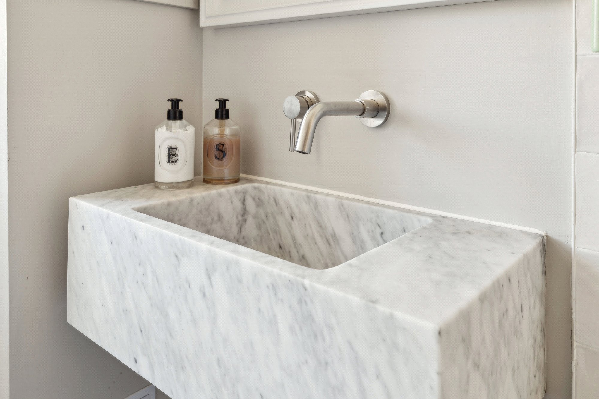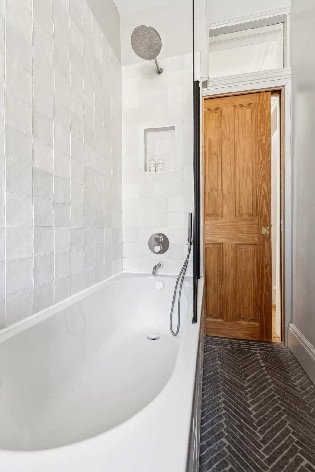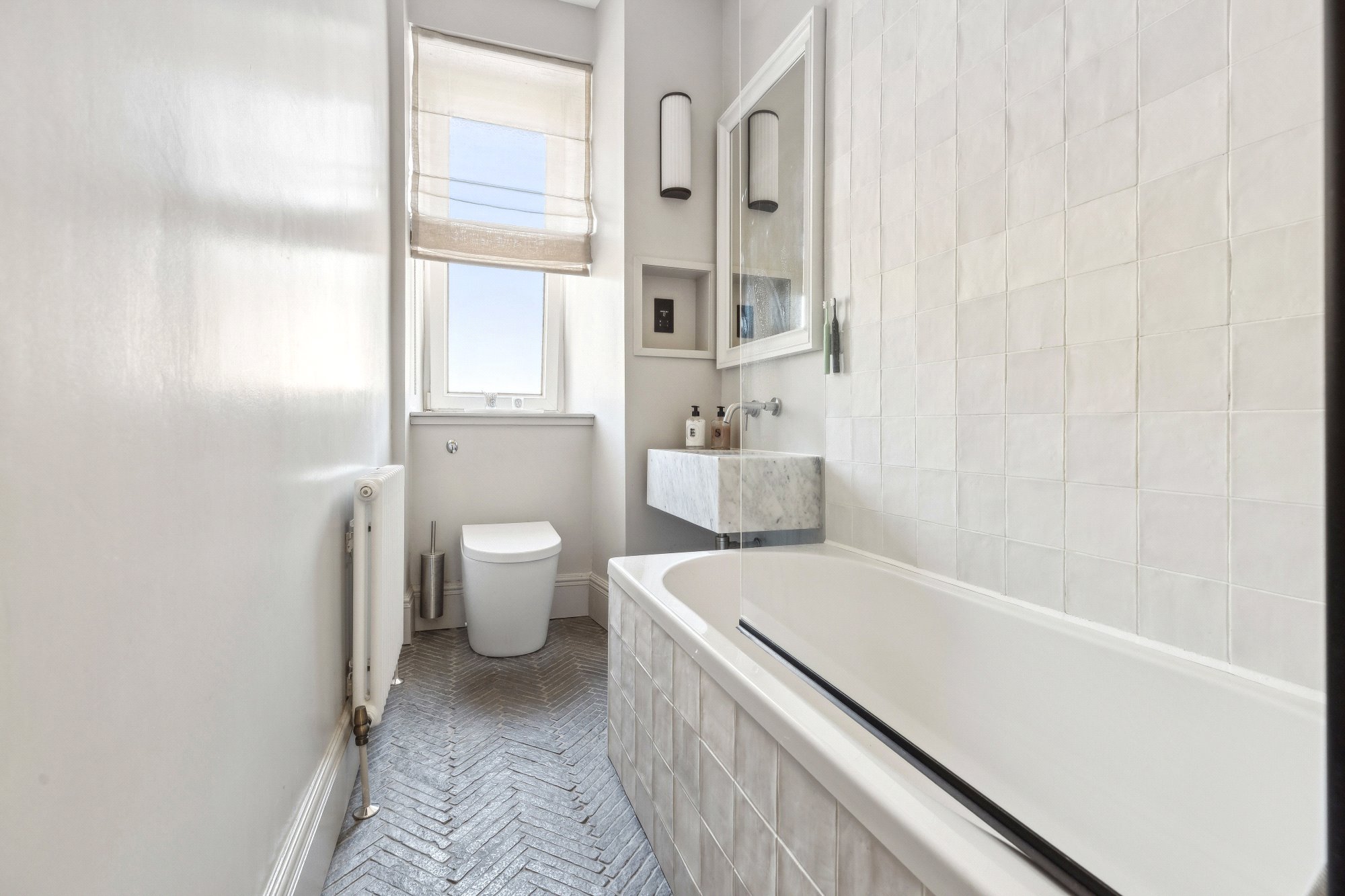 - Particularly stylish three-piece bathroom comprising bath, over bath shower, toiletand wash hand basin. Window to the front