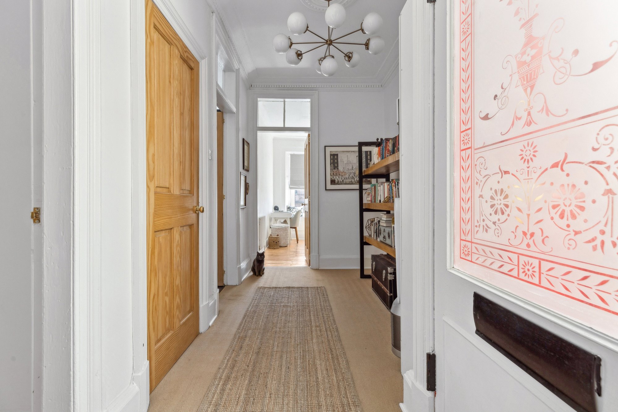 - Storm door entrance vestibule lading to broad and welcoming reception hall withuseful storage cupboard off and ceiling cornice