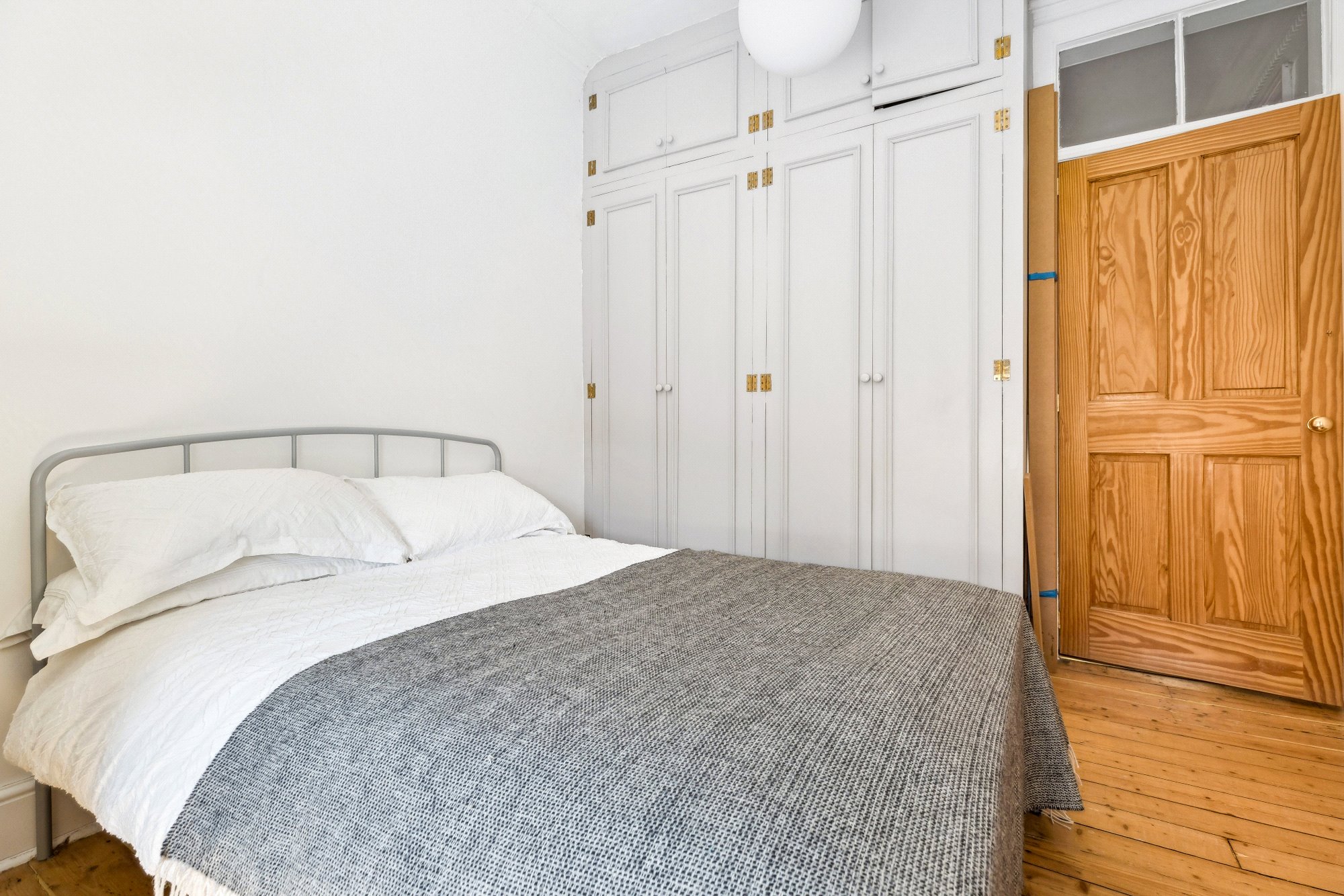 - Bedroom two with window to the front, fitted wardrobes and wooden flooring