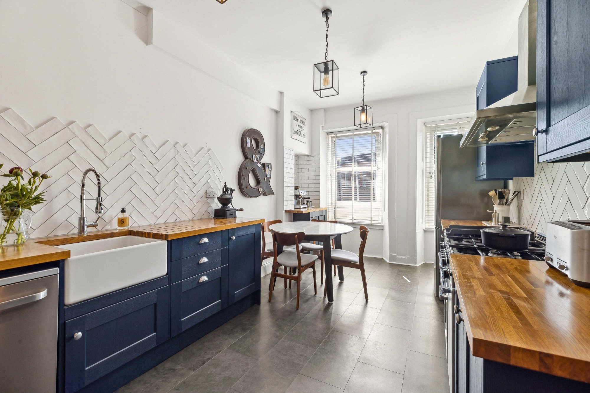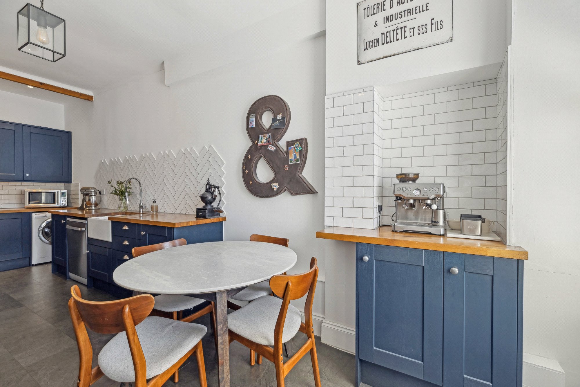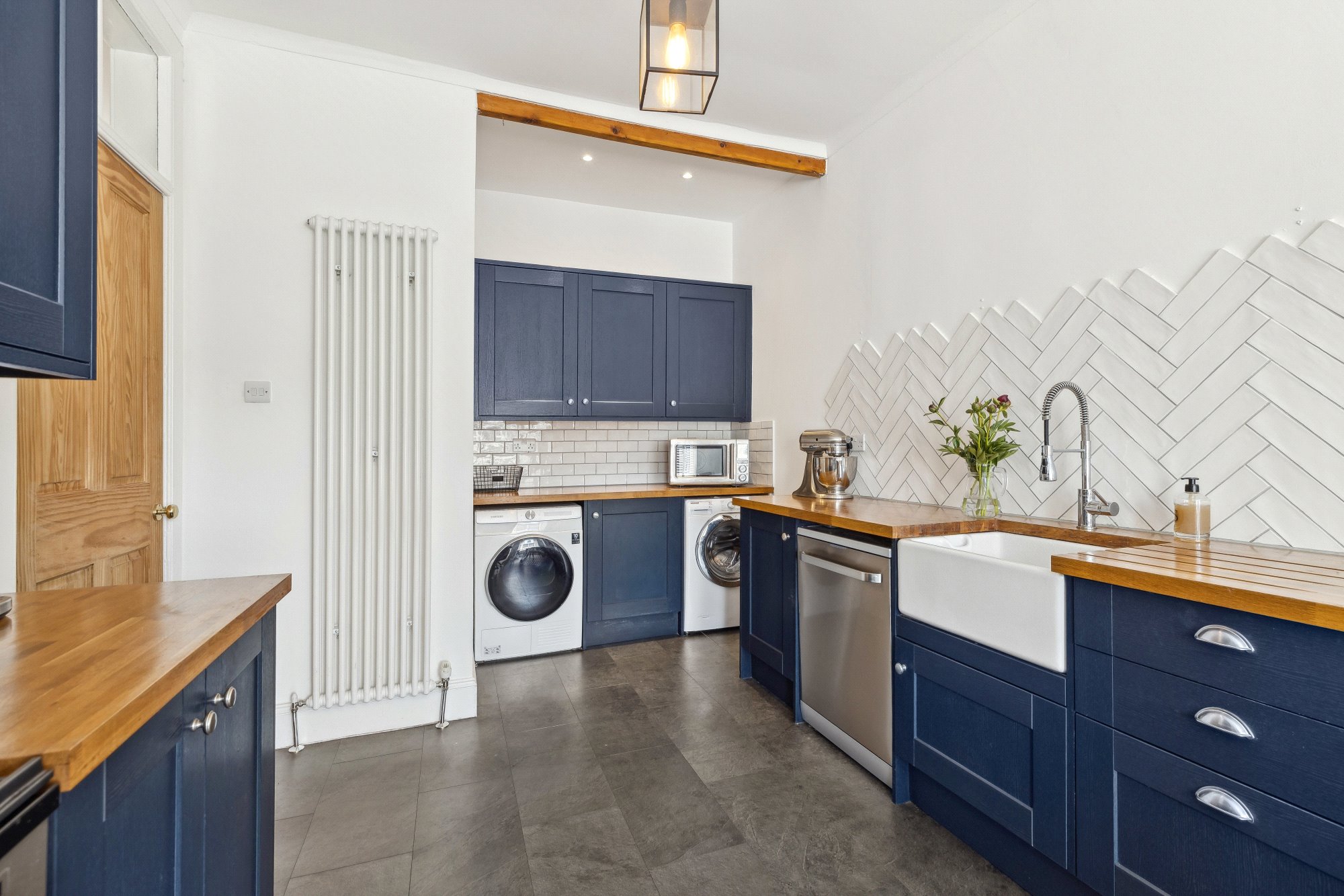 - Impressive, re-fitted dining kitchen complete with a comprehensive range of baseand wall units, butcherblock worktops, appliances and two windows to the rear