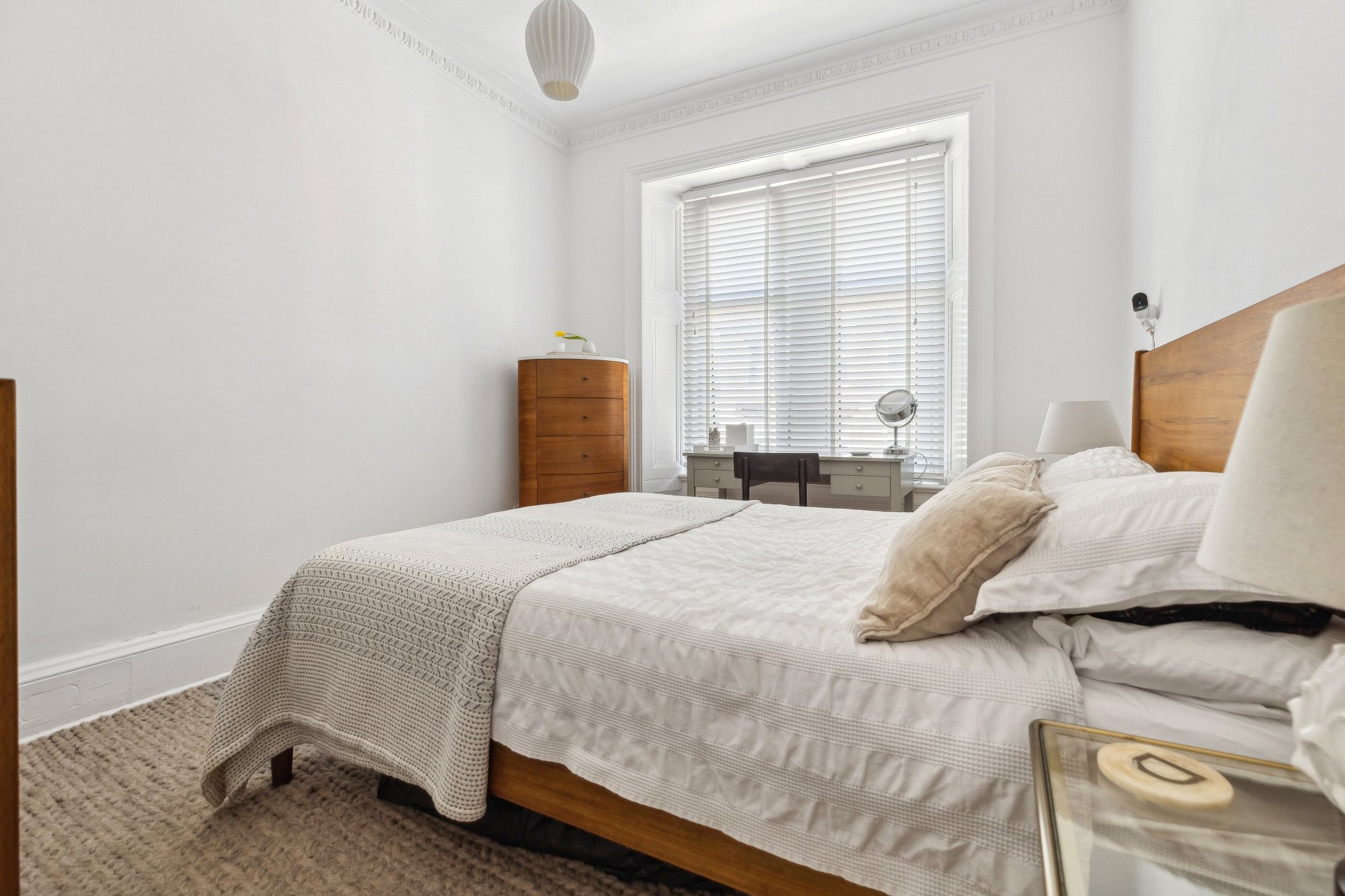 - Bedroom one with two section window to the rear, ceiling cornice and woodenflooring