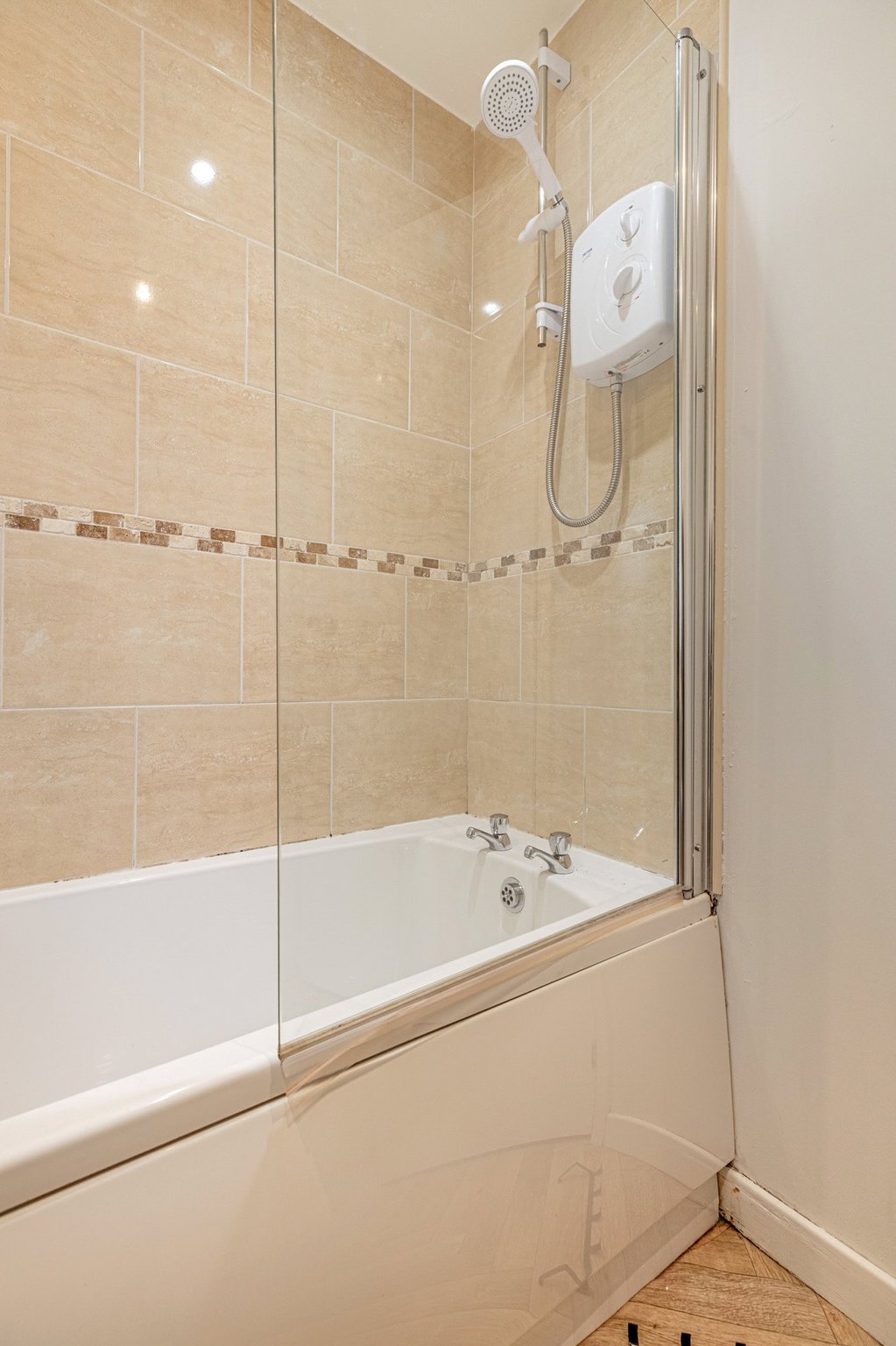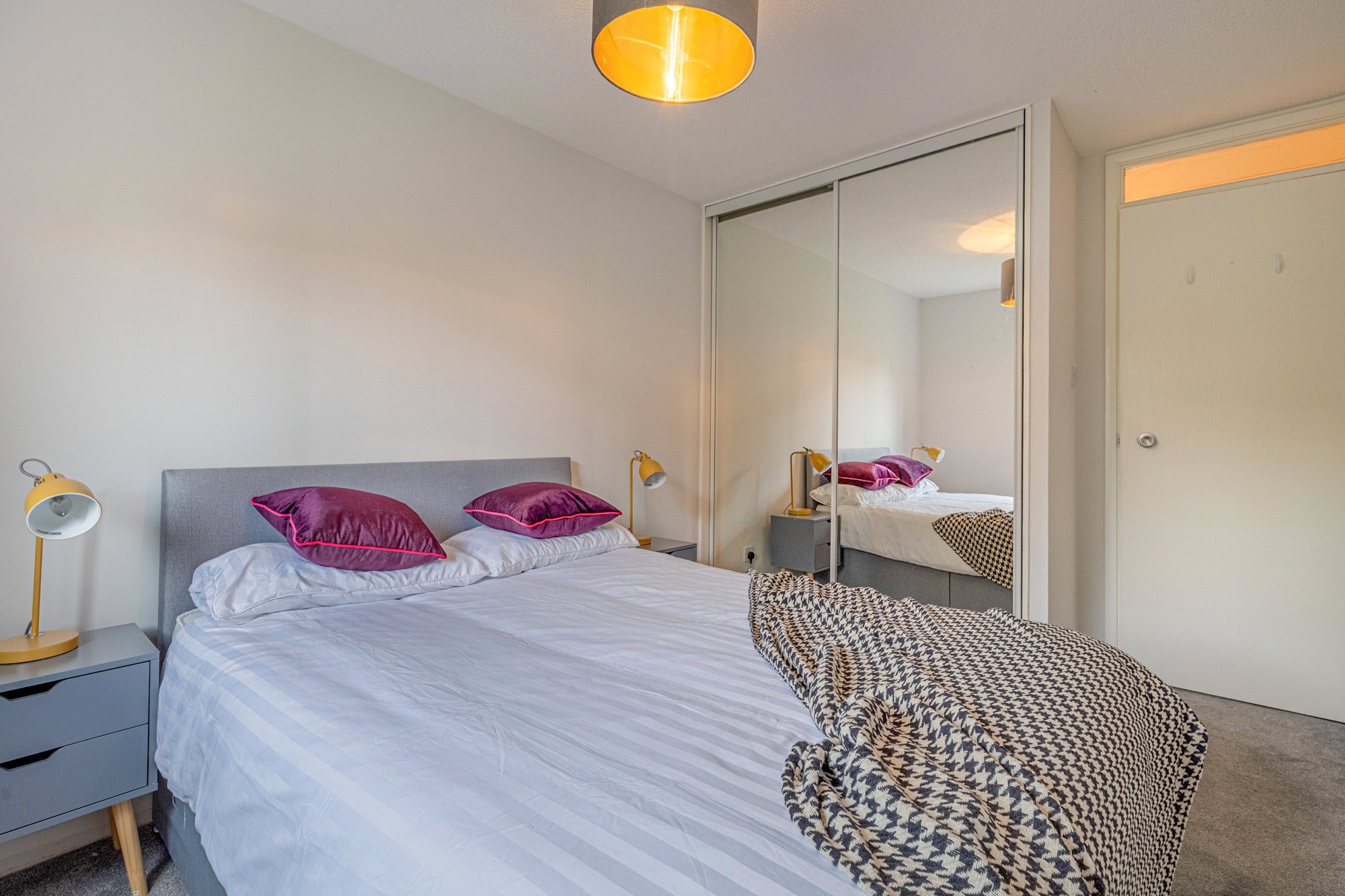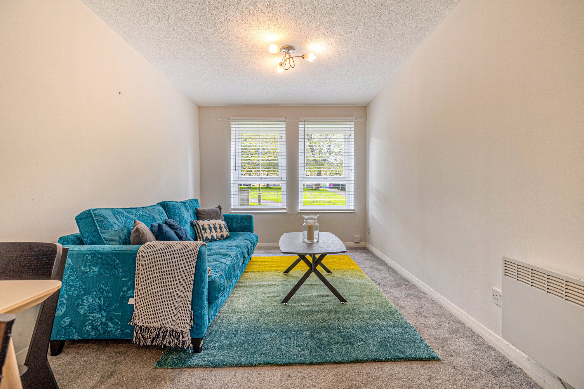 Internally, the apartment is presented in neutral condition and offers a practical layout that will suit a variety of purchasers — whether as a first-time buy, investment, or city base. The accommodation extends to: entrance hallway with storage cupboard, bright living room with space for lounge and dining furniture, a fitted kitchen with integrated appliances, a generous double bedroom, and a bathroom with white suite and shower over bath.