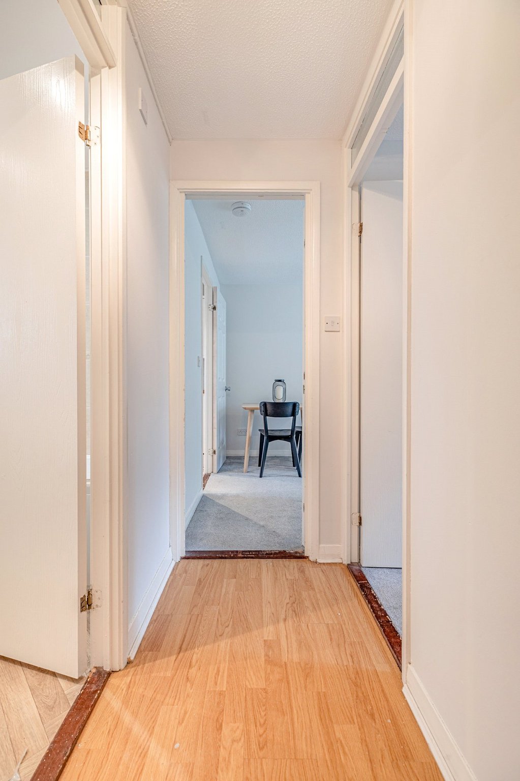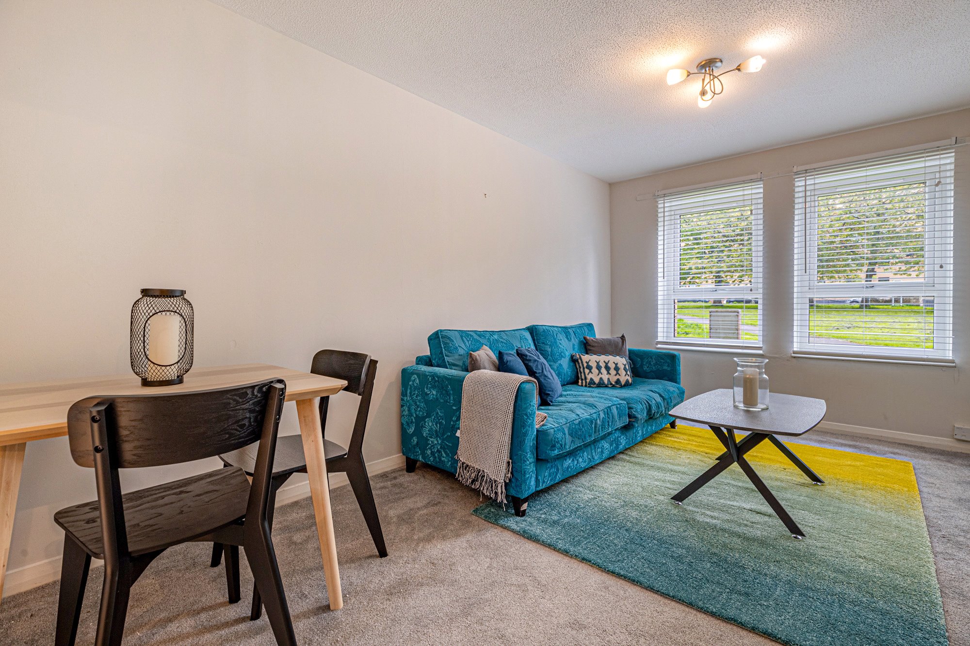 The home is held within a well-maintained, low-rise modern apartment block, surrounded by neat communal lawns. A secure entry system provides access to clean and tidy communal hallways, and residents benefit from on-street permit parking (available via Glasgow City Council). This specific part of Overnewton Square enjoys a particularly pleasant outlook across an open green, which adds to the calm and leafy atmosphere while still being just moments from the buzz of Finnieston and Yorkhill.