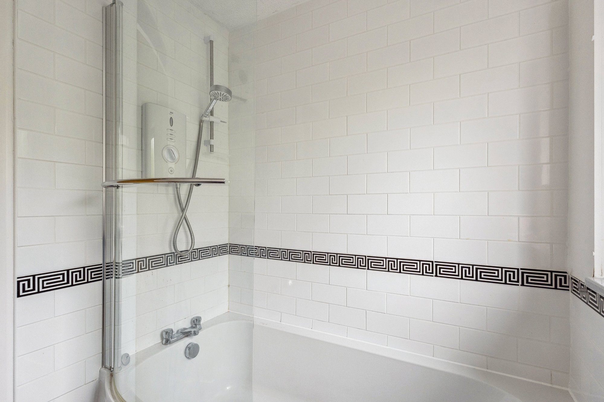 - Three-piece bathroom comprising bath, over bath shower, toilet and wash hand basin. Window to the front