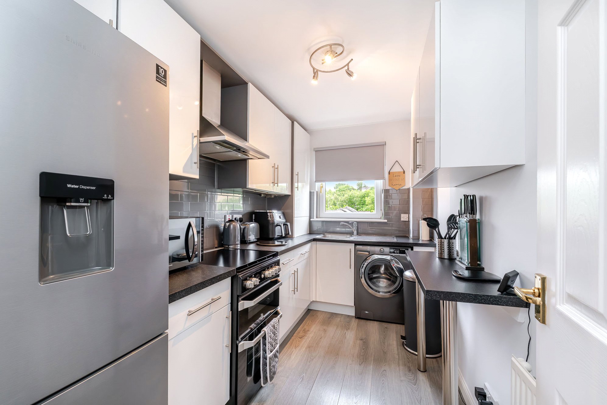 This immaculately presented two-bedroom flat occupies a second-floor position within a popular modern development. The property is well placed for Kelvindale Railway station, convenience shopping on Kelvindale Road, Cleveden Road and is only a short distance to an extensive range of amenities on Byres Road together with The Botanic Gardens and University of Glasgow. We would also highlight the added benefit of ample off-street residents’ parking together with the beautifully maintained communal garden grounds.