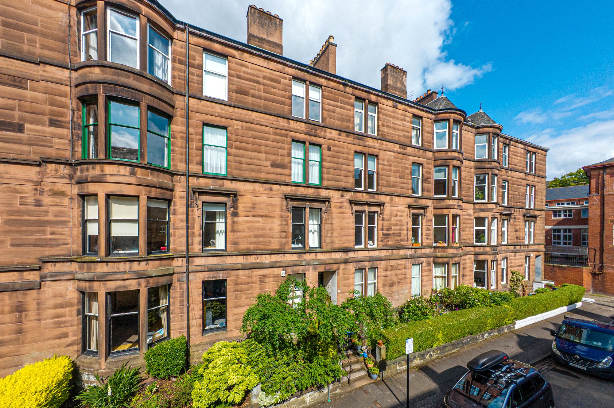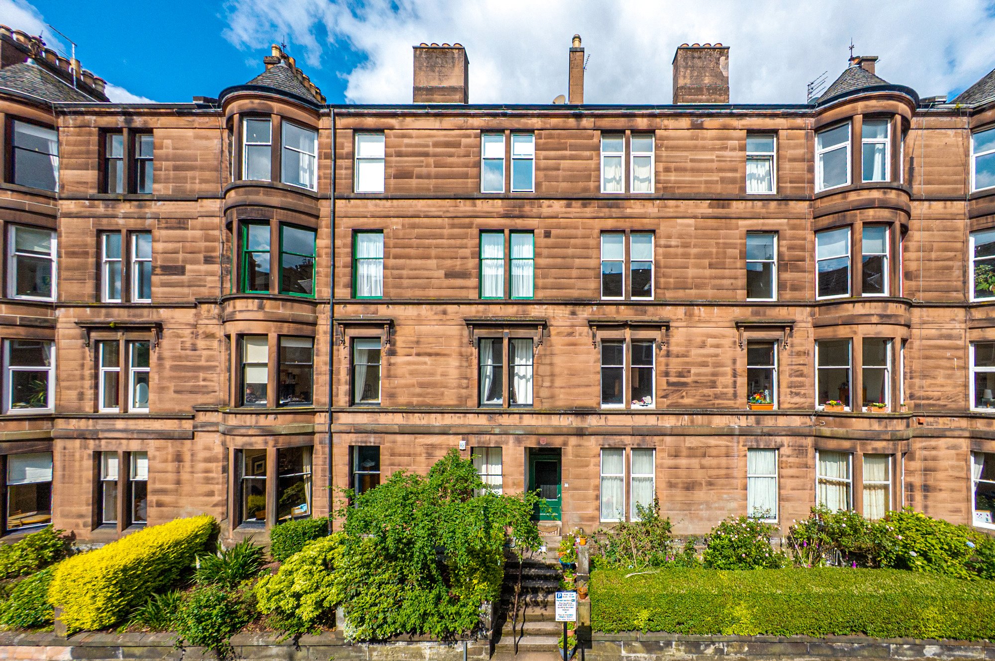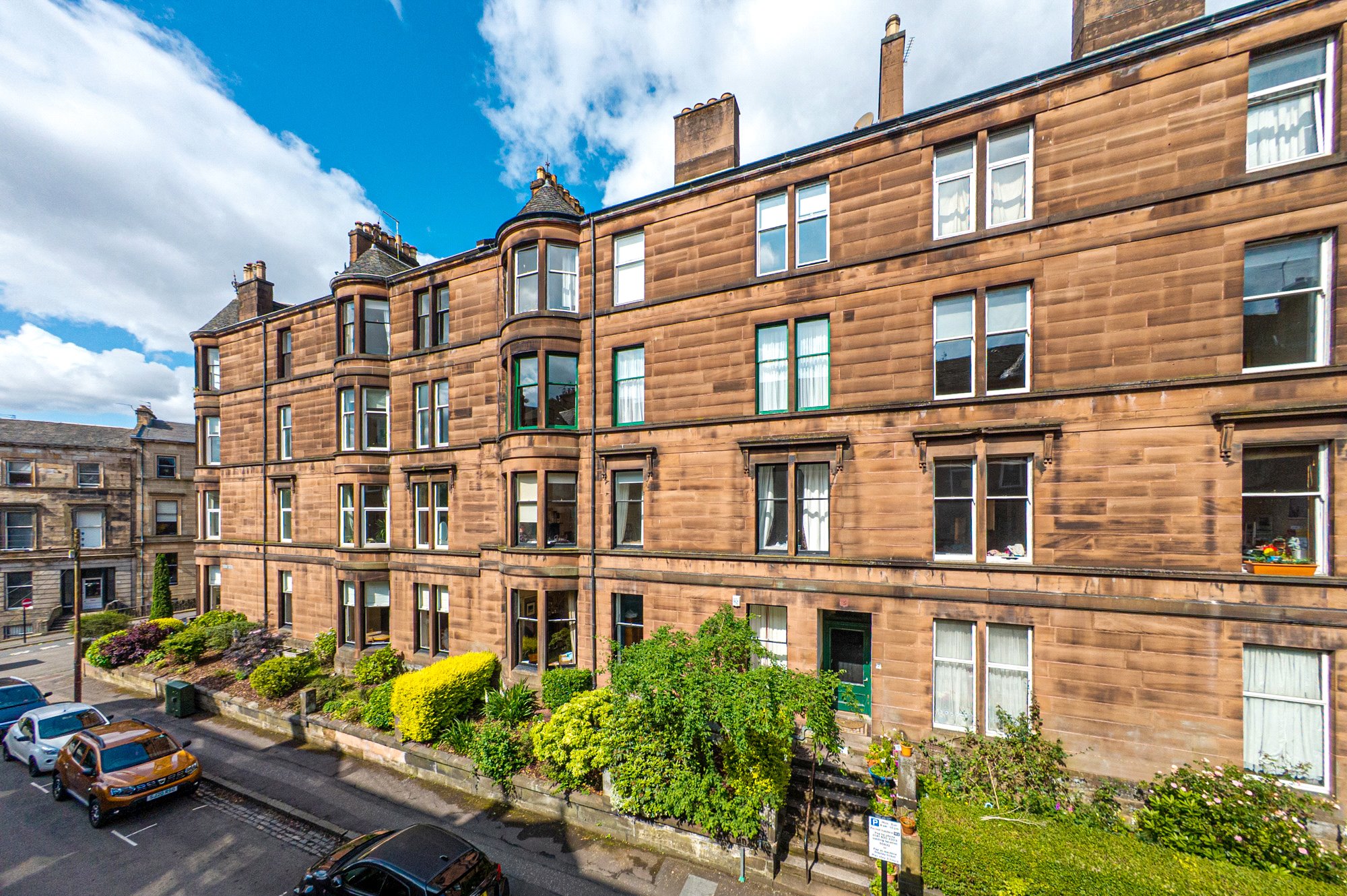 A well-presented three-bedroom second floor flat contained within an elegant red sandstone tenement building on Jedburgh Gardens. This quiet residential no through street is located just off Wilton Street in the highly popular and particularly convenient North Kelvinside district. The accommodation offers excellent flexibility and proportions together with an abundance of natural light. The interior includes a welcoming reception hall, a fabulous front facing bay windowed lounge, three spacious and versatile double bedrooms and a modern three-piece bathroom. We would also highlight the wonderful timber framed sash and case double glazed windows which have been installed throughout the property.