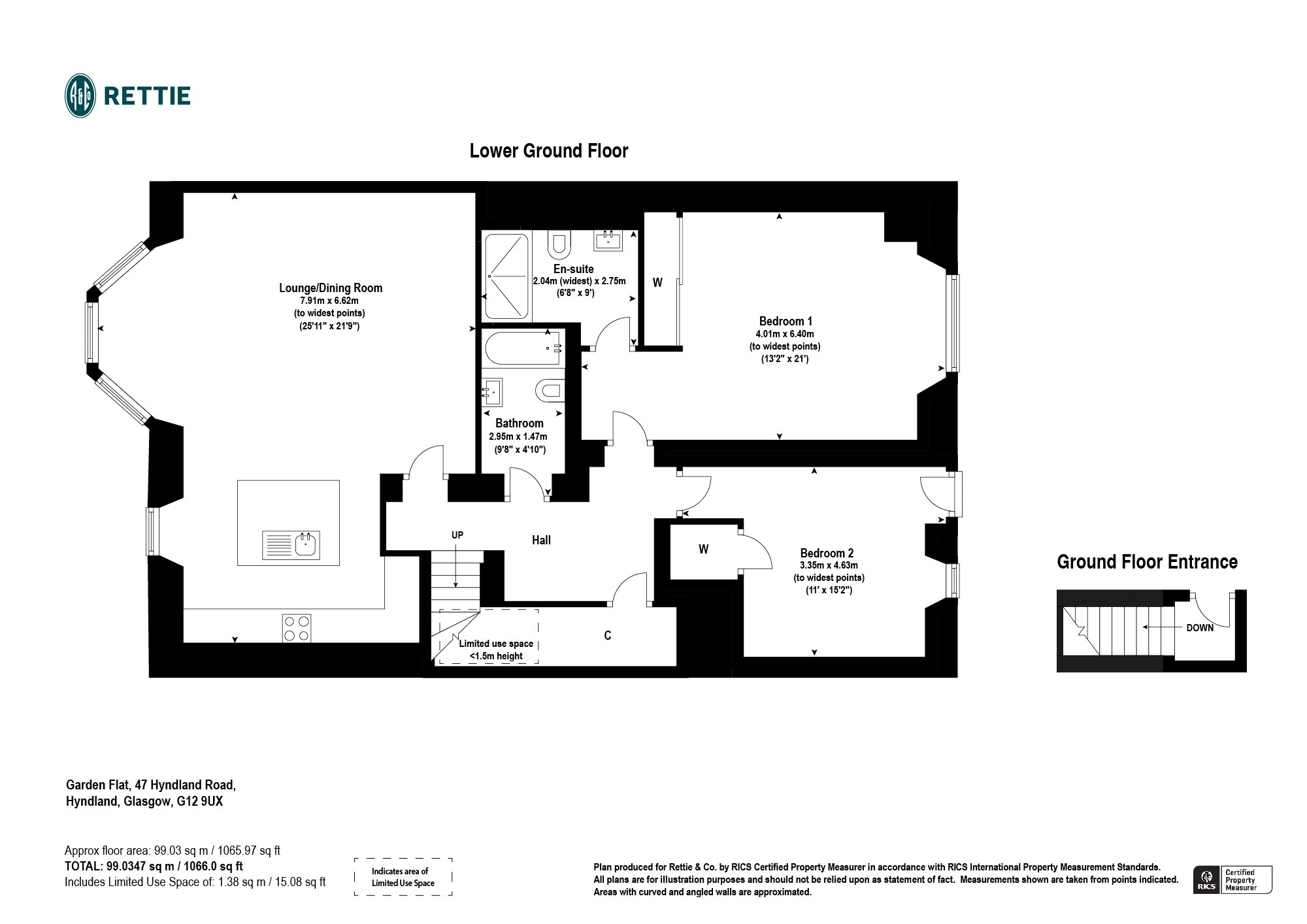 This is an immaculate two -bedroom Garden Level Flat forming part of an attractive blonde sandstone Terraced Townhouse in the popular and convenient District of Hyndland. Very tastefully upgraded throughout, the accommodation comprises a generous bay windowed living dining room to with open plan kitchen, two double bedrooms, (bedroom one with ensuite shower room, bedroom two with door to the back garden), and there is a stylish three-piece bathroom. There is also excellent storage provision within the property.
