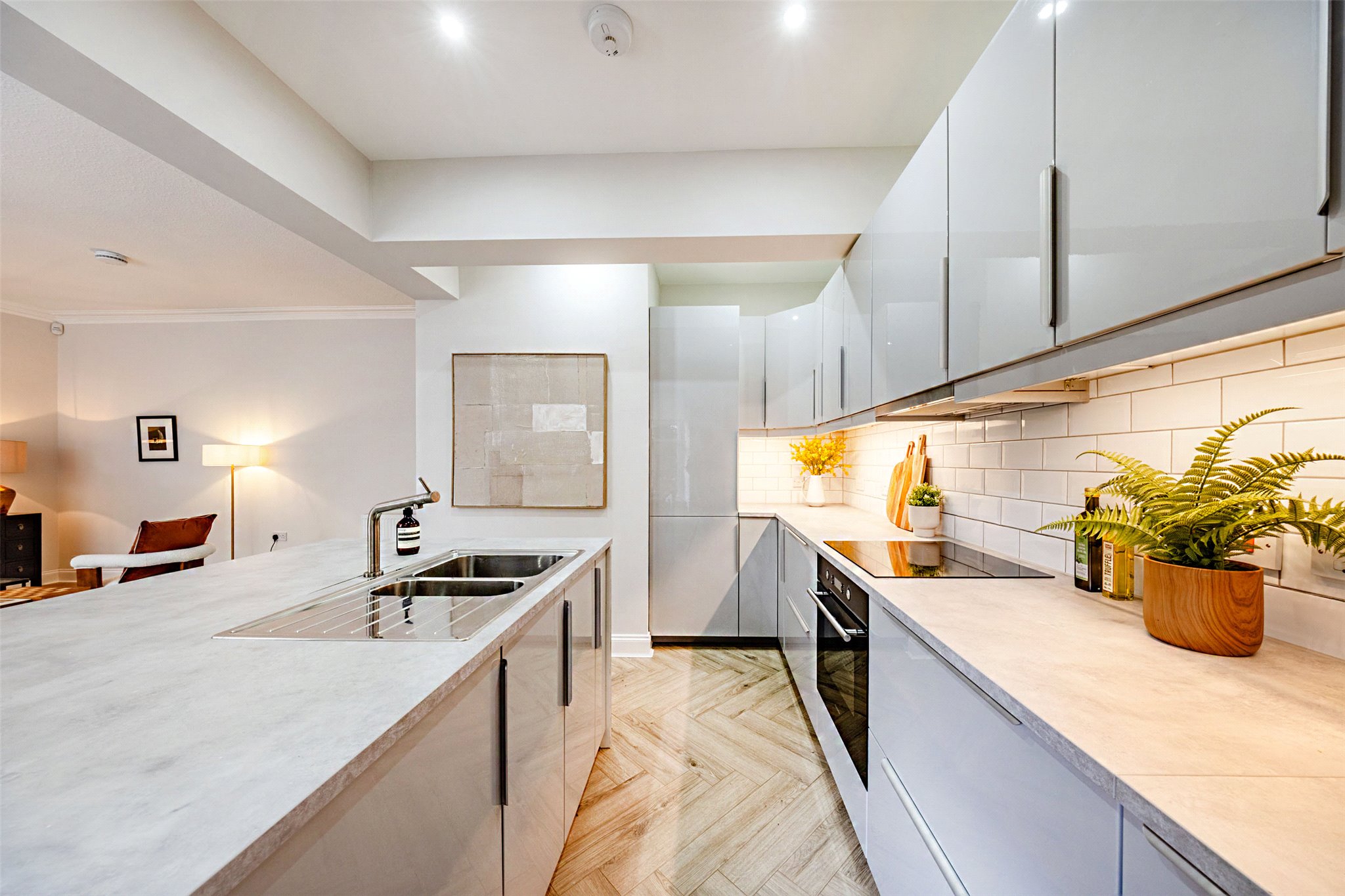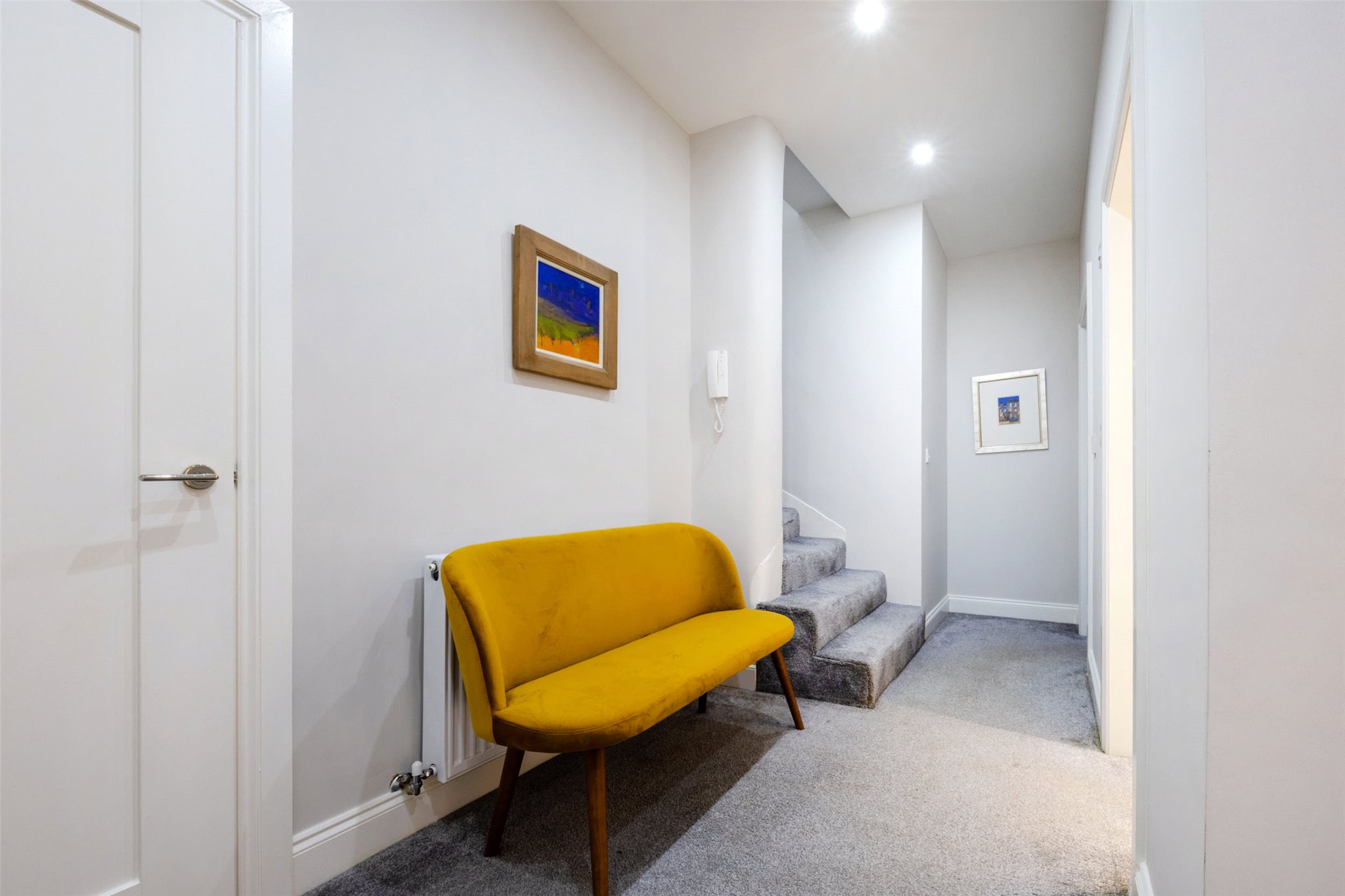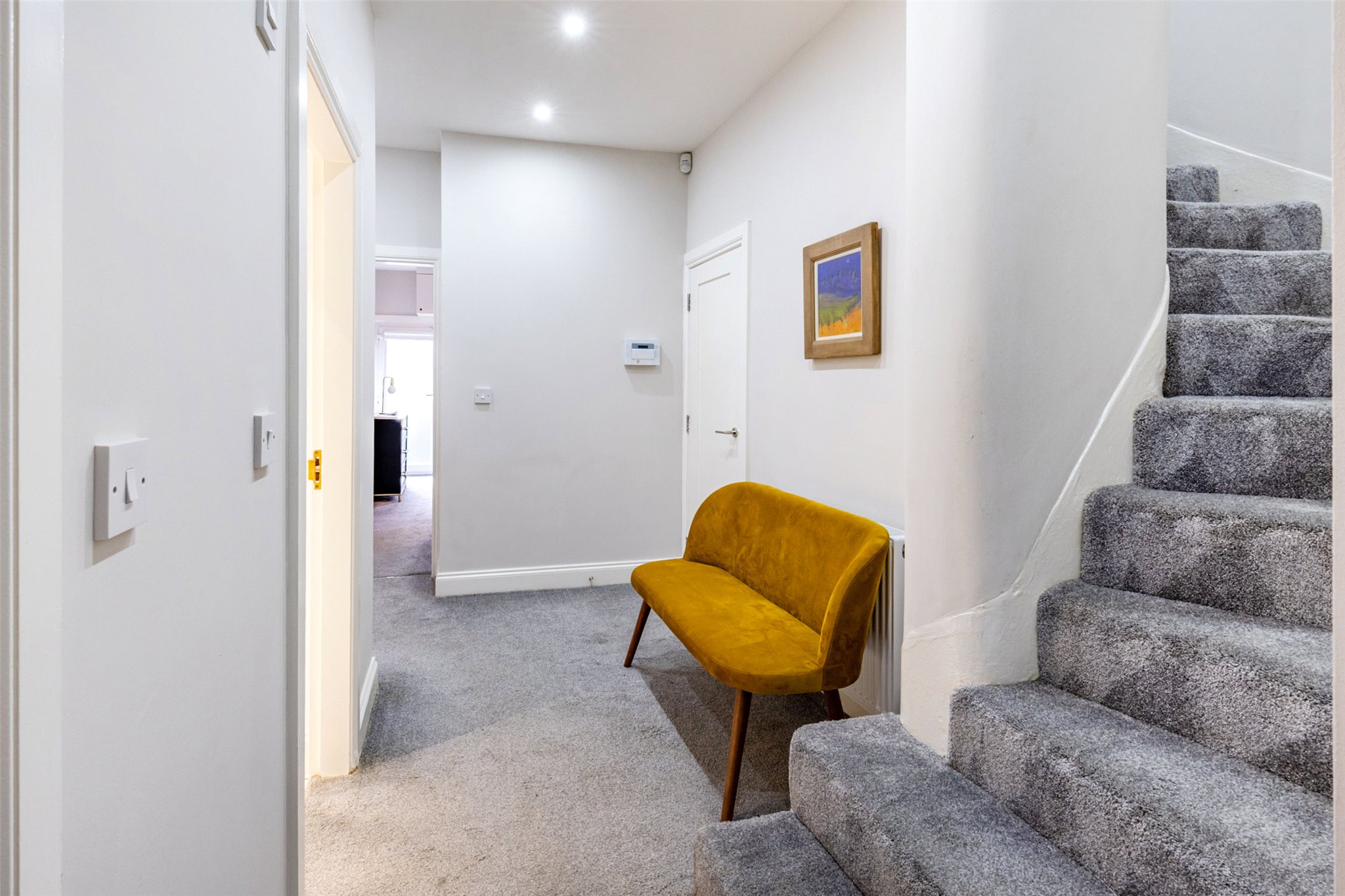 - Entering from the ground floor, a private stair leads down to a welcoming reception hallway complete with fresh neutral decoration and includes a large under stair cupboard